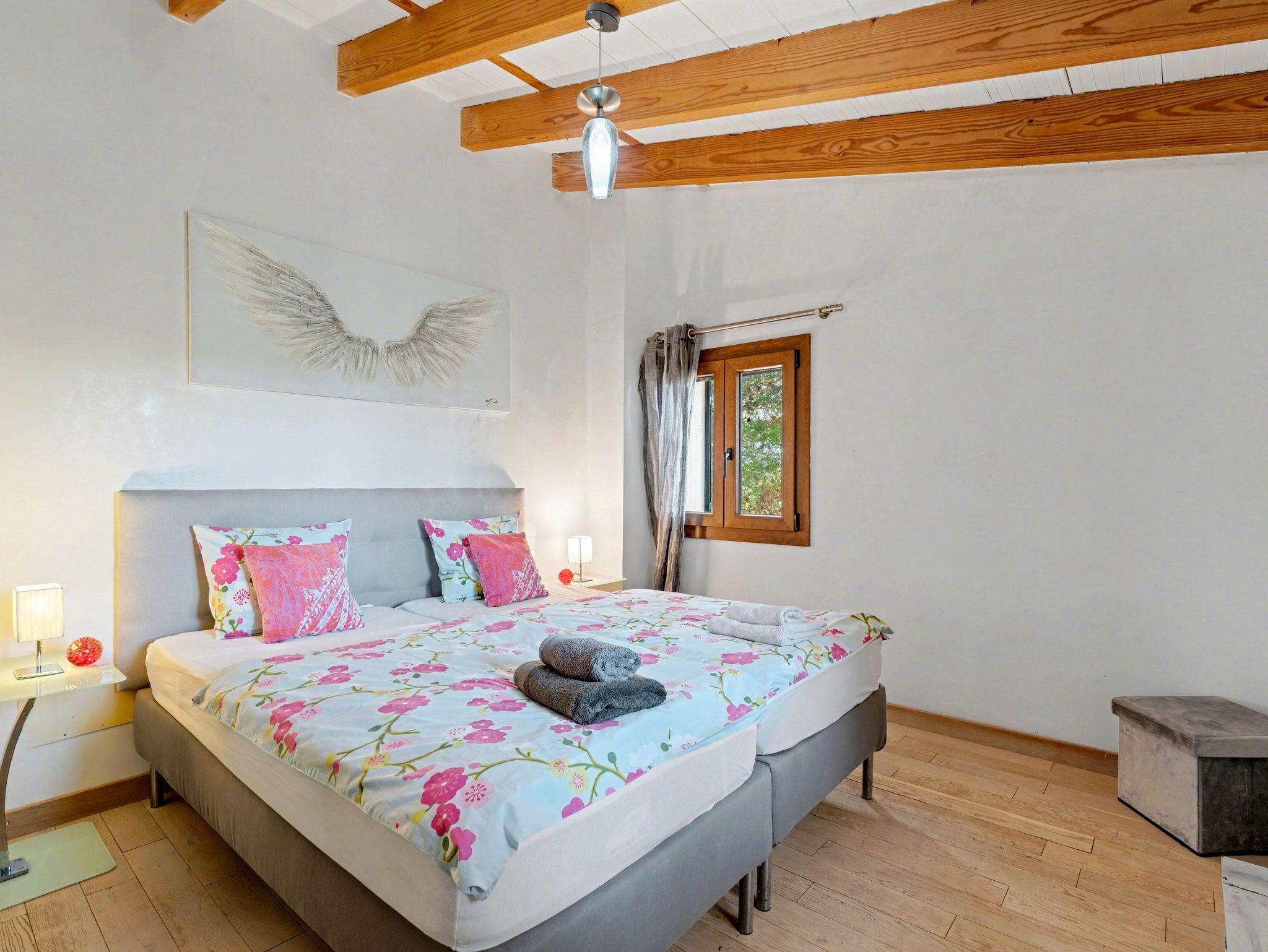 Im Obergeschoss befinden sich zwei weitere Schlafzimmer und ein Bad alle mit herrlichem Blick auf die Landschaft. Die Villa ist mit einem Sonos/B&W Innen- und Außen-Soundsystem ausgestattet, sodass Sie Ihre Musik bequem über das Smartphone steuern können.