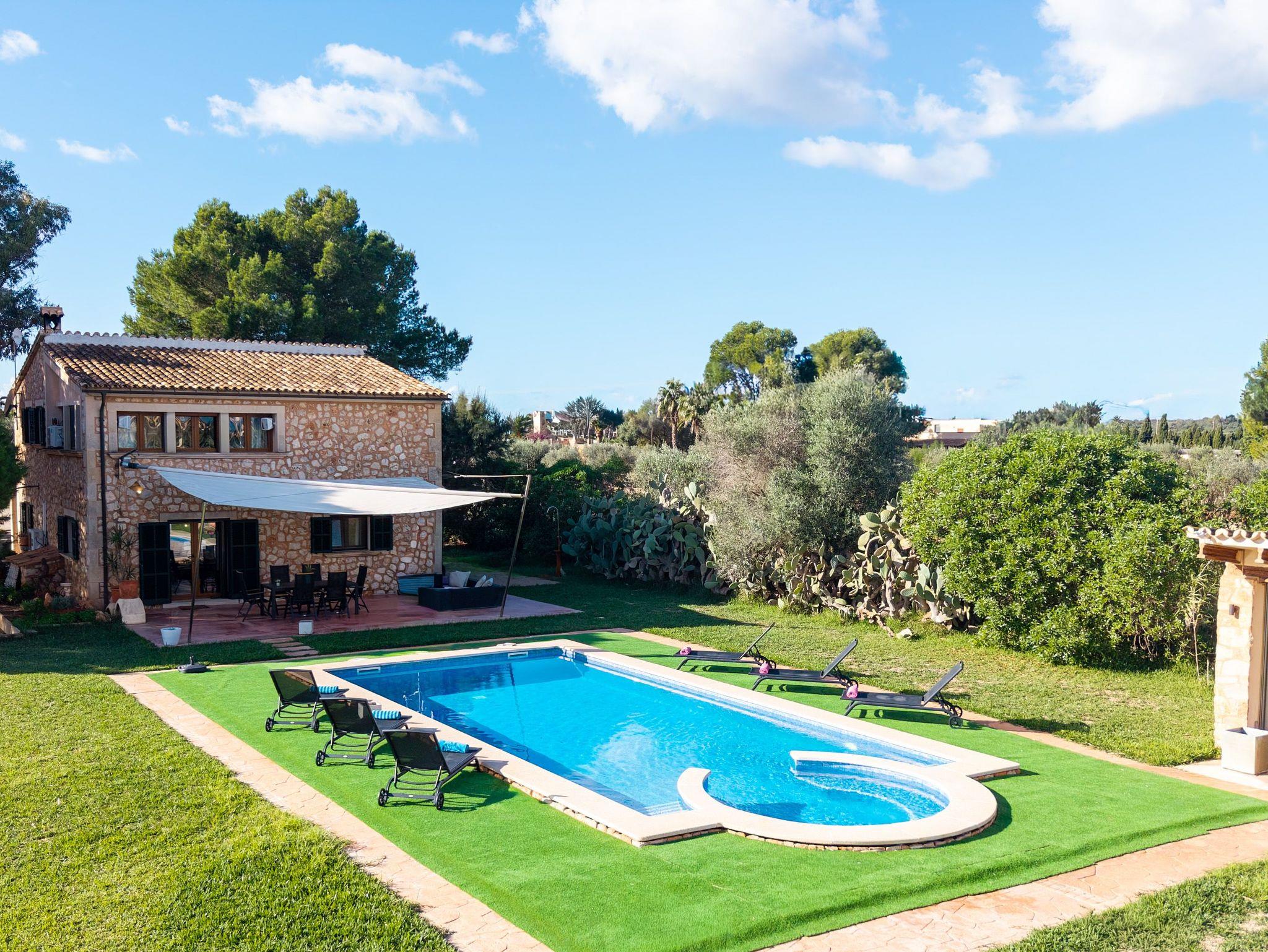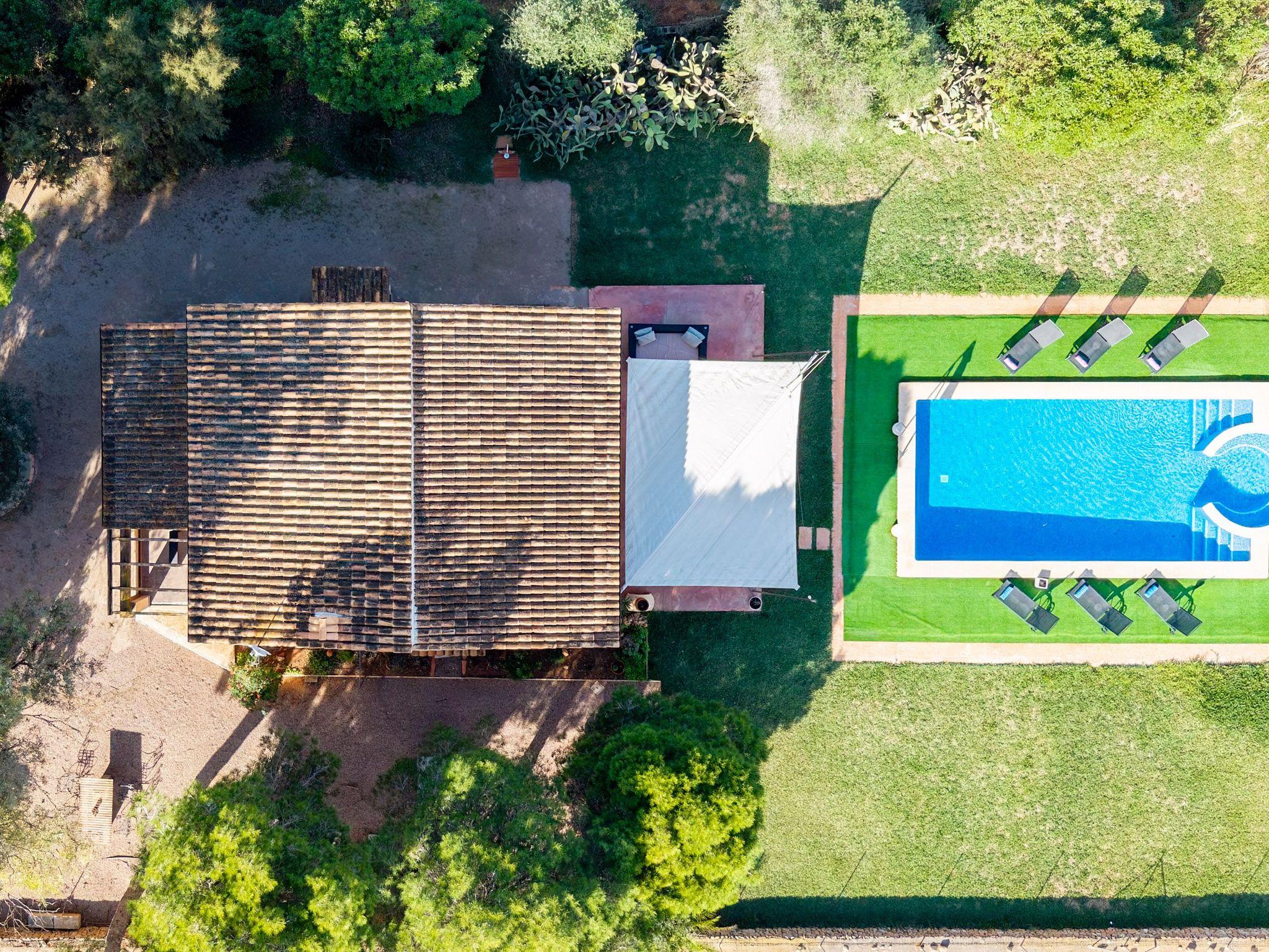 Ein mediterraner Rückzugsort, nur 1,4 km vom Naturstrand Es Trenc entfernt, umgeben von Ruhe und Natur. Die Villa verfügt über eine große Terrasse mit elektrischem Segel, eine Lounge unter den Pinien und einen großzügigen 5x11 m Pool mit stimmungsvoller Beleuchtung. Zudem können Sie sich im Innen-Whirlpool (münzbetrieben) entspannen oder den Grillbereich im Freien nutzen.