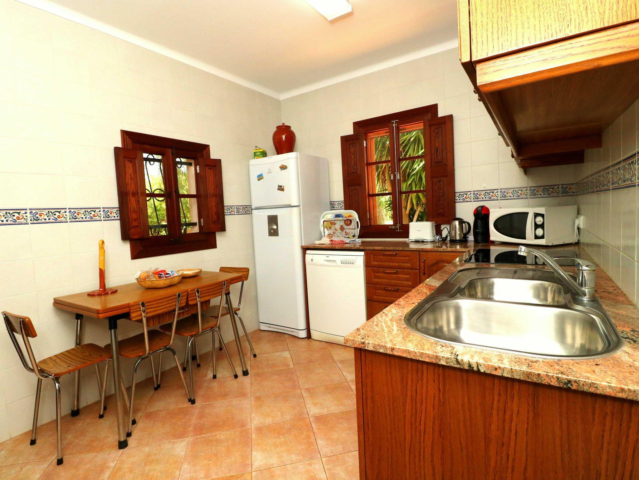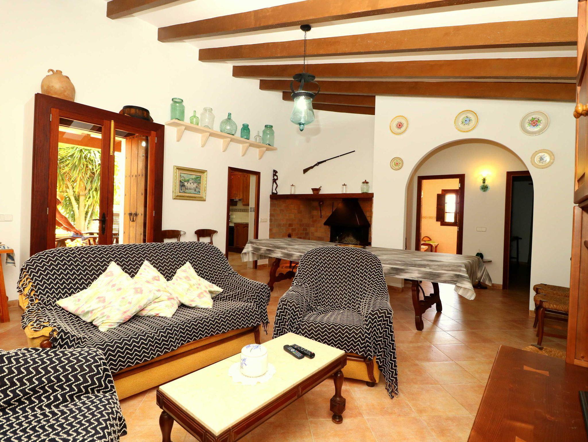 Der Wohnbereicht ist mit SAT-TV und WLAN ausgestattet. Die Finca verfügt über 3 Schlafzimmer. Zwei dieser haben jeweils zwei Einzelbetten, das andere hat ein Doppelbett. Es gibt 2 Badezimmer, eines mit Badewanne und das andere mit Dusche, beide haben Bidet. Die Küche ist funktional ausgestattet mit dem notwendigstem in Ihrem Urlaub wie, Spühlmaschine, Toaster, Mikrowelle, Geschirr, Herd, etc. hier gibt es auch einen kleinen Esstisch, der grosse Essbereich befindet sich aber mit im Wohnzimmer.