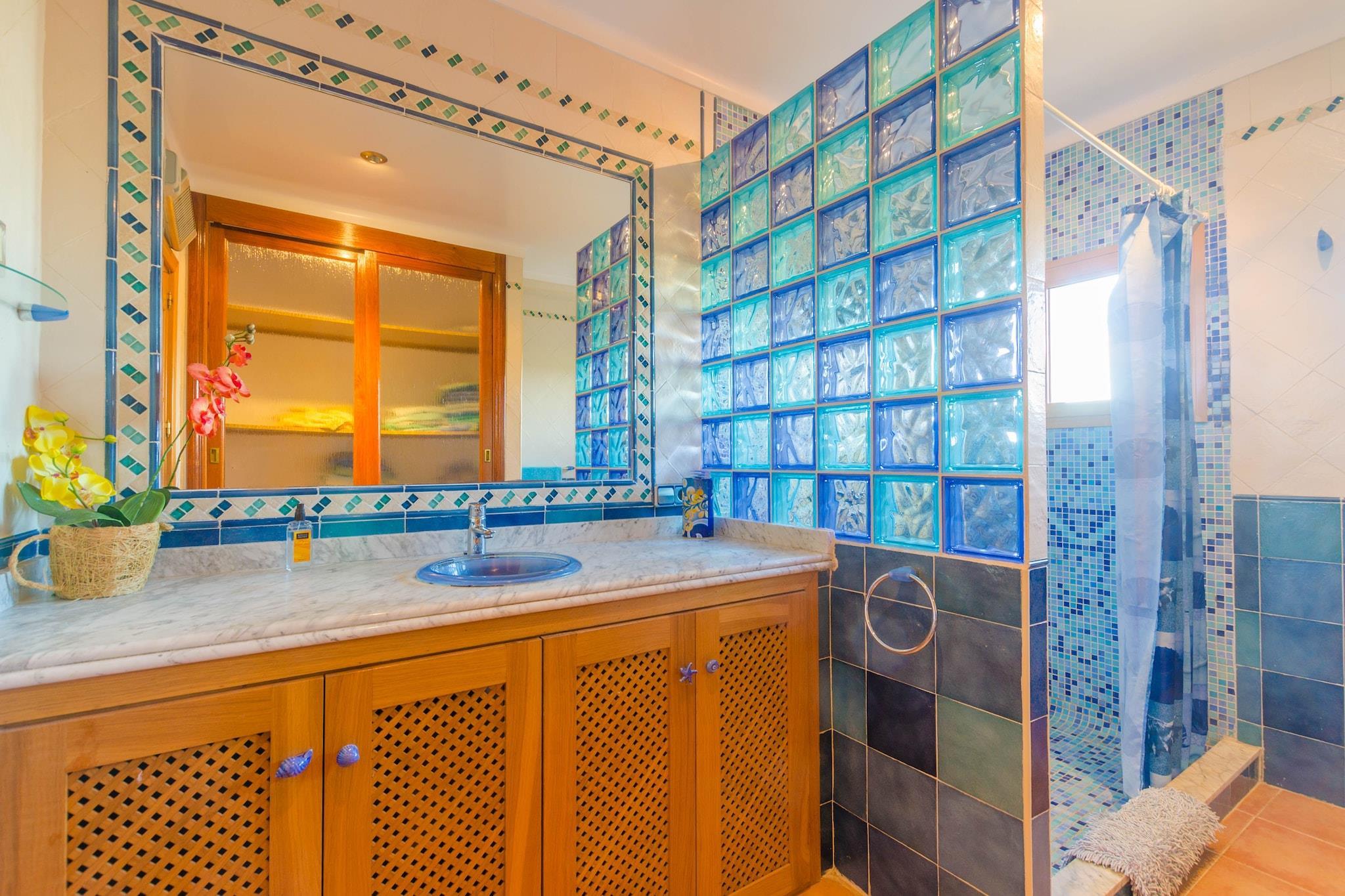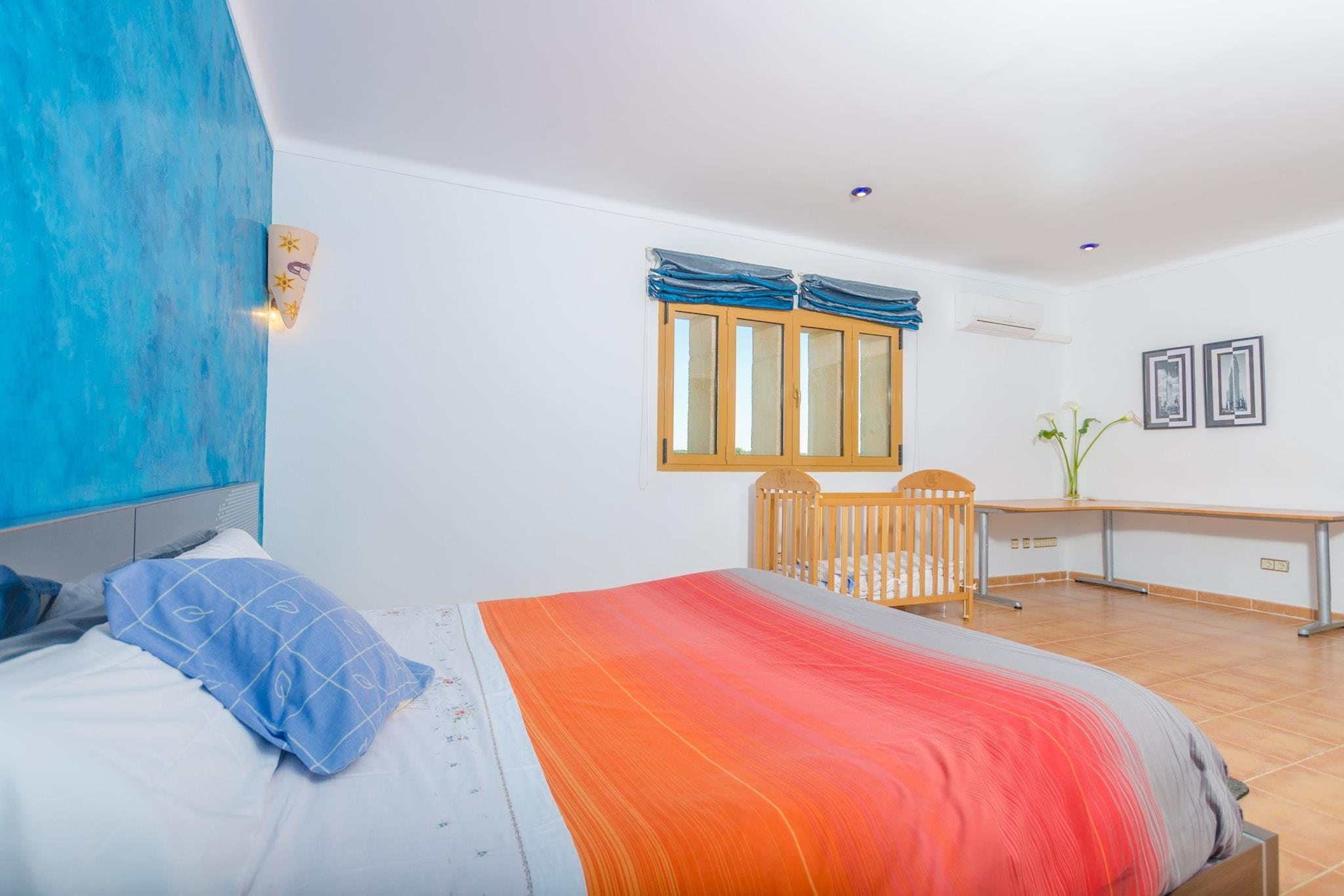 Der wunderbare Garten hat alles zu bieten, was Sie sich für den Urlaub wünschen. Erfrischen Sie sich im privaten Süßwasserpool mit einer Größe von 20 x 10m und einer Wassertiefe von 0,5 bis 3m. Er wird mit Chlor gereinigt. Auf der umliegenden Terrasse entspannen Sie, nach dem Baden, auf einer der bis zu 11 Liegen oder Sie lesen ein gutes Buch auf der möblierten Veranda. Verschiedene Sitzbereiche auf den diversen Terrassen bieten sich an, sich zusammen zu setzen und etwas zu trinken oder einen Grillabend zu veranstalten, ein fest installierter Grill ist vorhanden. Das Grundstück ist umzäunt und es gibt keine direkten Nachbarn. Die Wohnräume verteilen sich über 3 Etagen. Im Erdgeschoss empfängt Sie ein geräumiger Wohnbereich mit gemütlichen Sofas, Sat TV, CD und DVD Player. Anschließend kommen Sie in das Esszimmer und in die Küche, in der Sie auf einem Cerankochfeld kochen und dafür alle nötigen Geräte und Utensilien zur Verfügung haben. In der Waschküche stehen 2 Waschmaschinen, 2 Trockner, ein Bügelbrett und ein Bügeleisen bereit. Auf dieser Etage befinden sich 2 Schlafzimmer, eins mit Doppelbett, das andere mit 2 Einzelbetten und 2 Bäder mit je einer Wanne. Ein 2ter Wohnbereich führt zur Treppe in die erste Etage. Hier liegen 3 weitere Schlafzimmer mit je einem Doppelbett und en-Suite Bad - 2 mit je einer Dusche, eins mit Wanne. In der oberen Etage finden Sie den Fitnessraum, 1 Duschbad und 2 Schlafzimmer, von denen 1 mit einem Doppelbett und 2 Einzelbetten, das andere mit 2 Einzelbetten und einem Ausziehbett (2 Personen) eingerichtet sind. Auf Anfrage können biz zu 2 Babybetten und Hochstühle bereitgestellt werden. Der Wohnraum, Essraum und 6 der Schlafzimmer sind klimatisiert. Die fantastische Finca liegt ca. 4,7km von Capos entfernt. Im Ort finden Sie alle Dienstleistungen die Sie für Ihren Urlaub in Eigenregie brauchen, Supermärkte, Bars, Restaurants, Geschäft etc. Jeden Donnerstag findet der Wochenmarkt statt und neben Obst und Gemüse werden auch Kleidung, Schuhe und andere Produkte angeboten. Der paradiesische Strand von Es Trenc ist mit 13,5km der nächstgelegene und lockt mit feinem weißen Sand und kristallklaren¡m Wasser zu einem vergnüglichen Tag am Meer. Bitte beachten Sie, dass der Check-in zwischen 16:00 und 22:00 Uhr erfolgen muss. Ankünfte nach dieser Zeit sind mit einem Aufpreis von 50 Euro verbunden, der in der Unterkunft zu zahlen ist. Eventuelle Nebenkosten müssen beim Anbieter nachgefragt werden. Haustiere sind willkommen. Partys oder ähnliche Veranstaltungen sind nicht gestattet. Es gibt Freiluftparkplätze für 8 Autos. Entfernungen Strand: 13.5 km - Es Trenc Flughafen: 38 km - Son Sant Joan Golfplatz: 25.2 km - Vall d'Or Ortsmitte: 4.7 km - Campos Bahnhof: 45 km - Manacor Bushaltestelle: 4 km - Avinguda Nicolau Oliver Fullana Fähre: 44.8 km - Palma Krankenhaus: 30.1 km - Manacor Touristen Lizenz: VT/1567Einheitsregister: ESFCTU000007008000873221000000000000000000000VT/15678Bei der Anreise muss die Ecotasa (Touristensteuer der Balearen) bar bezahlt werden. Der zu zahlende Betrag beträgt zwischen 0.55EURO pro Nacht und Gast in der Nebensaison und 2.2EURO pro Nacht und Gast in der Hochsaison. Ab dem 9. Tag reduziert sich die Steuer um die Hälfte. Personen unter 16 Jahren sind davon ausgenommen.Die Kaution ist bei Ankuuft direkt an den Eigentümer zu übergeben. Stromverbrauch (Jan - Dezember): 0.40 EUR/Kw (obligatorisch)