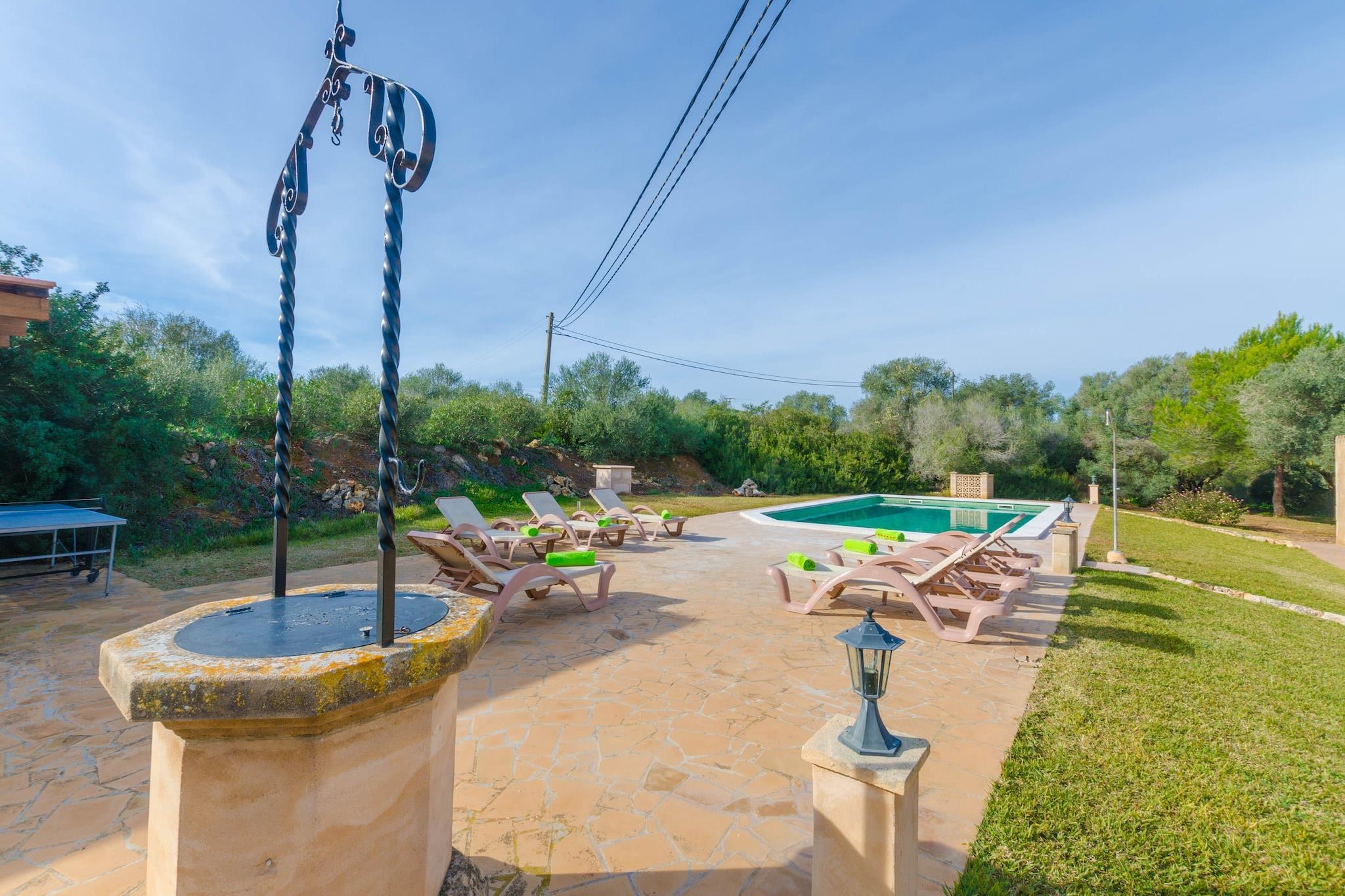 Umgeben von Terrassen und Garten ist der 6 x 10m große Süsswasserpool (Wassertiefe von 0,80 - 2,10m) ohne Zweifel der Mittelpunkt des Außenbereichs. Auf der Poolterrasse locken 8 Sonnenliegen zum süßen "Nichts tun". Die Kinder haben Spaß beim Toben auf dem Rasen und ein Tischtennis - Tunier wird ein Spaß für die ganze Familie. Für die Mahlzeiten im Freien gibt es eine möblierte Veranda und einen fest installierten Grill. Das Grundstück ist eingezäunt und es gibt einige Nachbarn. Das Innere des Hauses überzeugt mit schlichter, funktionaler Dekoration und allen Annehmlichkeiten die Sie im Urlaub erwarten. Der klimatisierte Wohnbereich hat einen Kaminofen für kühlere Tage, ist mit Satelliten Empfang ausgestattet und es gibt einen DVD Player, ideal für einen gemütlichen Familienabend. Die große Wohnküche hat u.a einen Induktionsherd, Backofen, Mikrowelle und alle wichtigen Utensilien, die Sie brauchen um während Ihres Urlaubs zu kochen. Der integrierte Essbereich ist für 8 Personen. Die separate Waschküche verfügt über eine Waschmaschine, Bügelbrett und Bügeleisen. 2 der insgesamt 4 Schlafzimmer sind im Erdgeschoss. 1 Schlafzimmer hat 1 Doppelbett, das andere 2 Einzelbetten. Es gibt 2 Bäder, mit Dusche oder Badewanne auf dieser Etage. Von den 2 Schlafzimmern der ersten Etagen hat 1 ein Doppelbett, das andere 2 Einzelbetten. Alle Schlafzimmer sind klimatisiert und haben je einen Kleiderschrank. Auf Anfrage kann ein Babybett und Hochstuhl bereit gestellt werden. Ein Bad mit Badewanne befindet sich in der ersten Etage. Die Finca liegt etwas versteckt, umgeben von einem Wald, in der Gemeinde von Santanyi. Naturliebhaber, Radfahrer und Wanderer kommen hier voll auf Ihre Kosten. Der malerische Ort Santanyi ist ca. 7km entfernt und alle wichtigen Dienstleistungen für einen unabhängigen Fincaurlaub sind hier zu finden. Ein Mietwagen ist empfehlenswert, so können Sie die idylischen Buchten von Cala Santanyi, Cala S'Almonia oder Cala Llombards entdecken. Hervorragenden, frischen Fisch können Sie in den Restaurants der Küstenorte Portoperto oder Colonia de Sant Jordi probieren. Der Holzbackofen ist nicht nutzbar, nur der Grill kann benutzt werden. Eventuelle Nebenkosten müssen beim Anbieter nachgefragt werden. Haustiere sind willkommen. Partys oder ähnliche Veranstaltungen sind nicht gestattet. Es gibt Freiluftparkplätze für 6 Autos. Entfernungen Strand: 11.3 km - Cala Santanyí Flughafen: 41.9 km - Son Sant Joan Golfplatz: 13.4 km - Vall d'Or Ortsmitte: 8.8 km - Santanyí Bahnhof: 28 km - Manacor Bushaltestelle: 12.3 km - Carrer de na Ravandella, Santanyí Fähre: 50 km - Palma de Mallorca Krankenhaus: 29 km - Manacor Touristen Lizenz: VT/455Einheitsregister: ESFCTU0000070080003535250000000000000000000000VT/4557Bei der Anreise muss die Ecotasa (Touristensteuer der Balearen) bar bezahlt werden. Der zu zahlende Betrag beträgt zwischen 0.55EURO pro Nacht und Gast in der Nebensaison und 2.2EURO pro Nacht und Gast in der Hochsaison. Ab dem 9. Tag reduziert sich die Steuer um die Hälfte. Personen unter 16 Jahren sind davon ausgenommen.