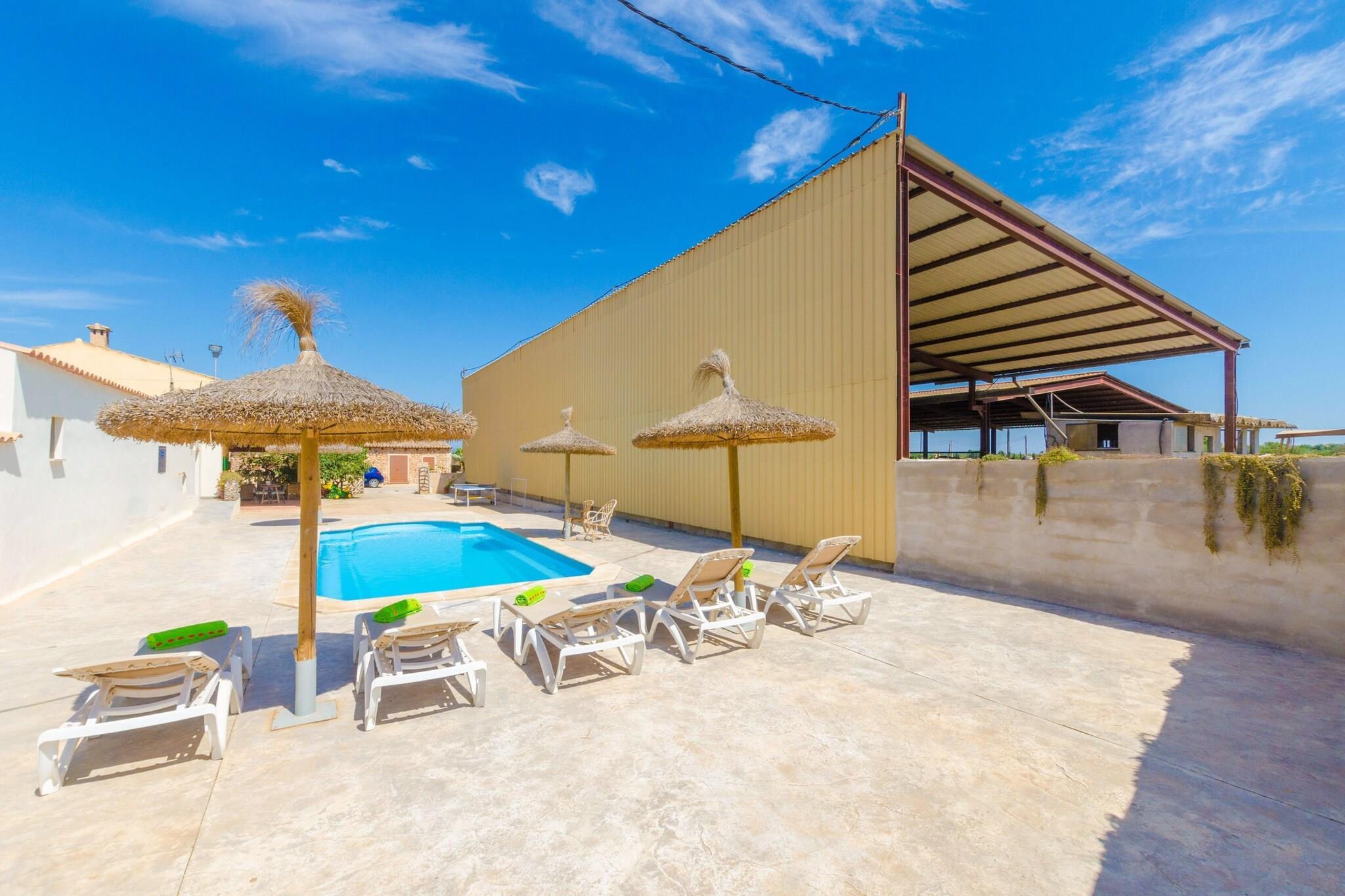 Dieses gemütliche Agroturismo ist der perfekte Ort, um die Ruhe der mallorquinischen Landschaft und die Authentizität des Landlebens zu genießen. Das Anwesen verfügt über einen Gemeinschaftspool mit Chlor, der 3 m x 8 m groß und zwischen 1,1 m und 1,9 m tief ist, ideal für eine Abkühlung an wärmeren Tagen. Rund um den Pool stehen sechs bequeme Liegestühle zur Verfügung, auf denen Sie sich in der Sonne entspannen können, während Sie die natürliche Umgebung genießen. Die private Veranda ist ideal, um Abendessen im Freien zu veranstalten und besondere Momente zu erleben. Das Haus liegt auf einem aktiven Bauernhof mit Kühen und offenen Flächen und bietet ein authentisches Erlebnis inmitten der Natur. Küche, Esszimmer und Wohnzimmer teilen sich einen hellen und gemütlichen Raum, der mit einer Klimaanlage ausgestattet ist, um das ganze Jahr über Komfort zu bieten. Das Wohnzimmer ist ideal, um sich nach einem Wandertag zu entspannen, Satellitenfernsehen zu schauen oder einfach einen Moment der Ruhe zu genießen. Die funktionelle Küche ist mit einem Elektroherd, einem Cerankochfeld und allen notwendigen Utensilien ausgestattet, um Ihre Lieblingsgerichte mit Leichtigkeit zuzubereiten. Das Haus ist einfach und gemütlich im mediterranen Stil eingerichtet und verfügt über zwei Schlafzimmer mit Doppelbetten und ein Badezimmer mit Dusche, das für das ganze Haus bestimmt ist, um Komfort und Entspannung in einer ruhigen Umgebung zu bieten. Das Haus ist nur wenige Kilometer vom Dorf Ses Salinas entfernt, wo Sie alles finden, was Sie während Ihres Urlaubs brauchen. Der weiße Sandstrand von Es Trenc, ein Naturjuwel der Balearen, ist in 10 Minuten mit dem Auto zu erreichen. In der näheren Umgebung finden Sie viele weitere Strände und Buchten mit kristallklarem Wasser, darunter Ses Covetes, Playa des Carbó und Colonia de Sant Jordi. Die Inselhauptstadt Palma de Mallorca ist 30 Autominuten entfernt, wo Sie die Kathedrale La Seu, das Schloss Bellver und das Baluard-Museum besuchen oder einkaufen können. Der Kamin kann nicht benutzt werden. In der Umgebung gibt es Kühe, da es eine Käserei gibt. Das Haus liegt an einer Straße; man kann die Straße hören. Eventuelle Nebenkosten müssen beim Anbieter nachgefragt werden. Haustiere sind verboten. Partys oder ähnliche Veranstaltungen sind nicht gestattet. Es gibt Freiluftparkplätze für 2 Autos. Bitte beachten Sie, dass die Öffnungs- und Schließzeiten des Gemeinschaftspools den jeweiligen Hausordnungen unterliegen und je nach Saison ohne vorherige Ankündigung variieren können. Aktuelle Informationen erhalten Sie bei Ihrer Ankunft. Entfernungen Strand: 5 km - Es Trenc, Campos Flughafen: 40.6 km - Son Sant Joan, Palma Golfplatz: 28.7 km - Son Antem, Llucmajor Ortsmitte: 4.5 km - Ses Salines Bahnhof: 34 km - Manacor Bushaltestelle: 4.5 km - Carrer Batle Andreu BurgueraSes Salines Fähre: 48.5 km - Port de Palma Krankenhaus: 35 km - Hospital de Manacor Touristen Lizenz: AG/276Bei der Anreise muss die Ecotasa (Touristensteuer der Balearen) bar bezahlt werden. Der zu zahlende Betrag beträgt zwischen 0.55EURO pro Nacht und Gast in der Nebensaison und 2.2EURO pro Nacht und Gast in der Hochsaison. Ab dem 9. Tag reduziert sich die Steuer um die Hälfte. Personen unter 16 Jahren sind davon ausgenommen.Die Kaution ist bei Ankuuft direkt an den Eigentümer zu übergeben.