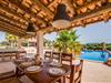 Die zweistöckige Natursteinvilla ist im typisch mediterranen Stil gehalten, und das Herzstück der Villa bildet das Wohnzimmer mit Essbereich mit einem rustikalen Ledersofa, Sesseln und einem auffälligen Baumstammtisch. Die moderne Küche, die mit dem Wohnzimmer verbunden ist, ist komplett für Selbstversorger ausgestattet, und ein wärmender Kamin sorgt für zusätzliche Gemütlichkeit. Die Villa verfügt über vier helle Schlafzimmer, zwei davon mit eigenem Bad.