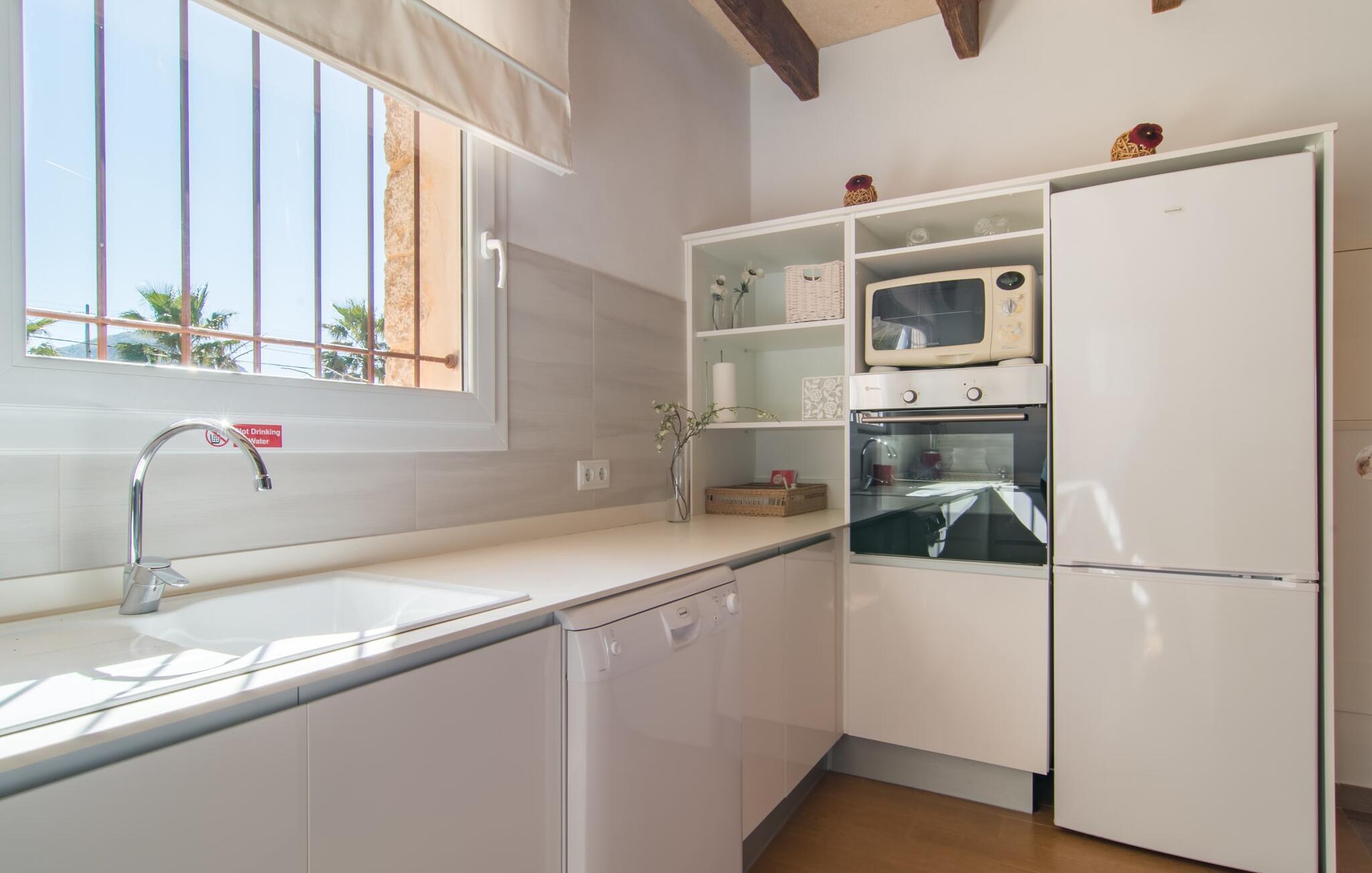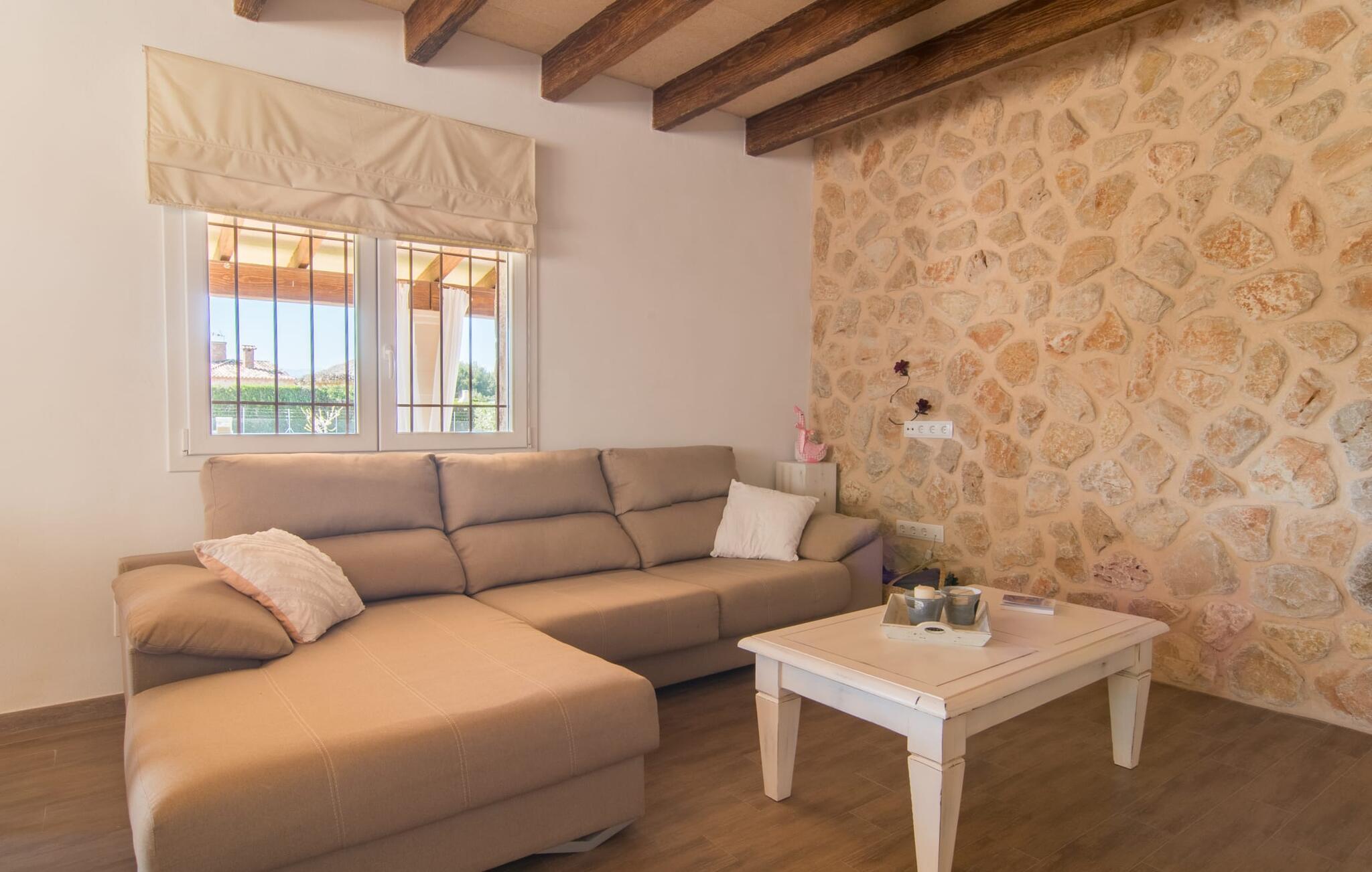 Im Inneren verbindet die Finca moderne und rustikale Elemente mit einer gemütlichen und harmonischen Einrichtung. Warme Erd- und Cremetöne schaffen eine gemütliche Atmosphäre. Die Küche mit ihren eleganten weißen Hochglanzoberflächen ist komplett ausgestattet, um köstliche Mahlzeiten zuzubereiten. Der geräumige Esstisch ist ideal für gemeinsame Mahlzeiten und das angrenzende Wohnzimmer bietet einen gemütlichen Ort zum Entspannen, vielleicht mit einem guten Film. Es gibt drei helle und einladende Schlafzimmer und zwei moderne Badezimmer, die alle mit hellen Farben und schönen Möbeln eingerichtet sind, um einen erfrischenden Start in den Tag zu gewährleisten.