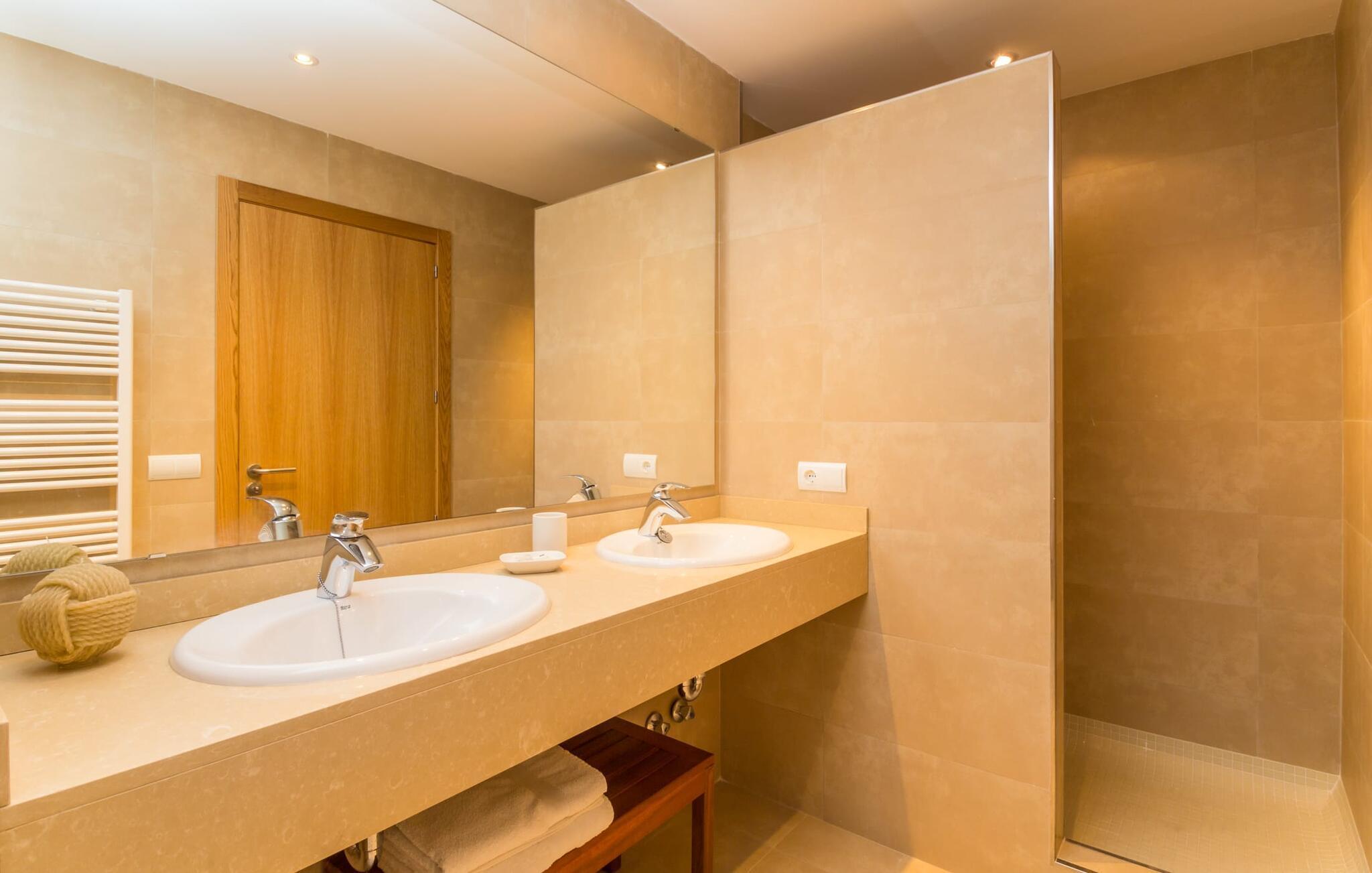 Im Inneren des Hauses erwartet Sie ein großzügiger Wohnraum, der mit hellen Farben und außergewöhnlichen, einzigartigen Elementen dekoriert ist. An den Wänden finden Sie allerlei bemerkenswerte Kunstdrucke und entdecken darüber hinaus noch viele weitere Details. Das kombinierte Wohn-/Esszimmer bietet eine riesige Sofaecke, in der Sie zu jeder Tageszeit auf den bequemen Sitzmöbeln gemütlich sitzen können. Auch der Flachbildfernseher ist hier bequem platziert. In der Mitte des Raumes steht ein großer Esstisch mit Stühlen im Originalstil, an dem acht Personen Platz finden. Die geräumige Küche wirkt stilvoll und ist mit einem großen Kühlschrank, Backofen, Cerankochfeld, Mikrowelle, Geschirrspüler, Wasserkocher, Nespresso-Kaffeemaschine und vielem mehr ausgestattet. Es gibt auch genügend Platz für einen zusätzlichen Esstisch, der von sechs Personen genutzt werden kann. Das klimatisierte Schlafzimmer lädt zu einer erholsamen Erholung ein. Ohne überflüssigen Schnickschnack überraschen diese Räume durch ihre Helligkeit und viele Weißtöne, kombiniert mit kontrastierenden künstlerischen Akzenten. Für eine gemütliche Erholung stehen den Gästen insgesamt ein Bett in der Größe 1,80 x 2,00 m sowie zehn Betten in der Größe 0,90 x 2,00 m zur Verfügung. Im Erdgeschoss befinden sich ein Schlafzimmer mit eigenem Bad sowie ein Gäste-WC, während sich im ersten Stock fünf Schlafzimmer, eines davon mit eigenem Bad und zwei weitere separate Badezimmer befinden. Das geschmackvolle Design des Schlafzimmers kommt auch in den Badezimmern voll zur Geltung. Diese zeichnen sich durch ihren sehr komfortablen, geräumigen und hochmodernen Stil aus. Bei Bedarf stehen zwei Babybetten und Hochstühle zur Verfügung.
