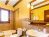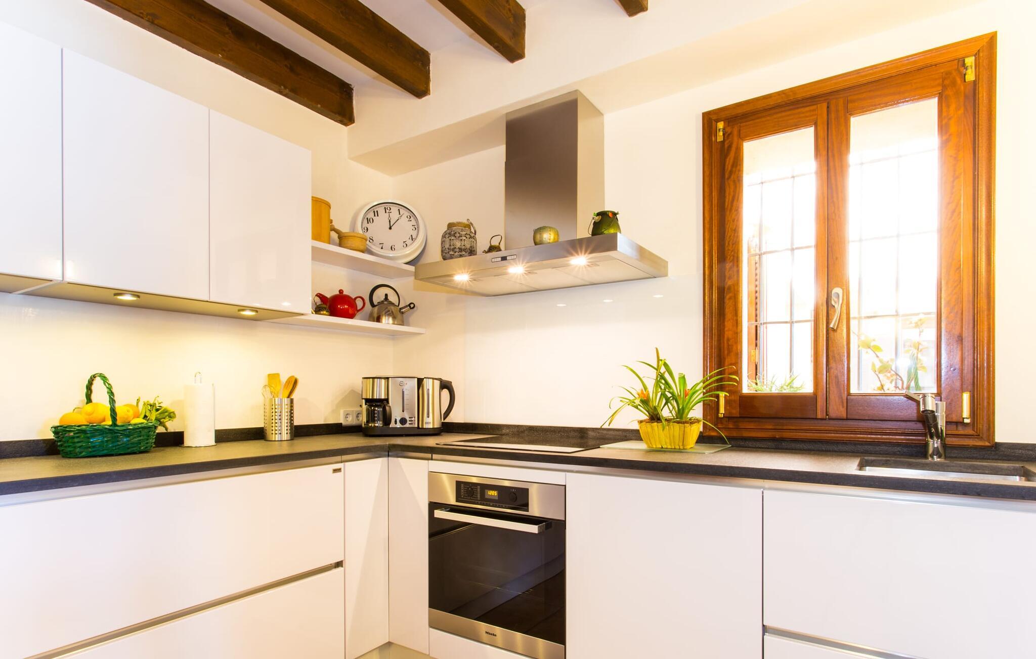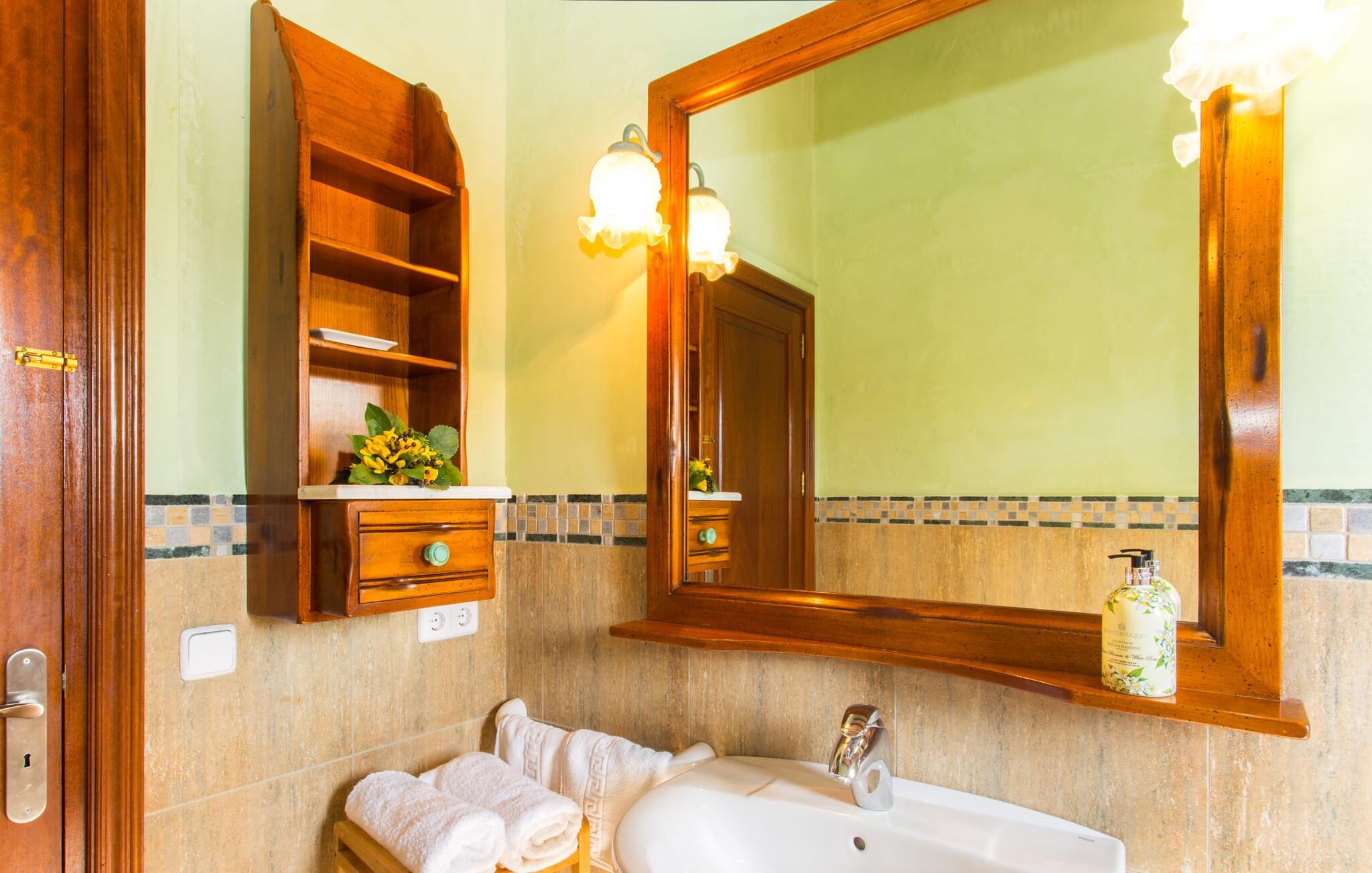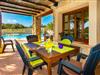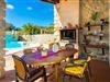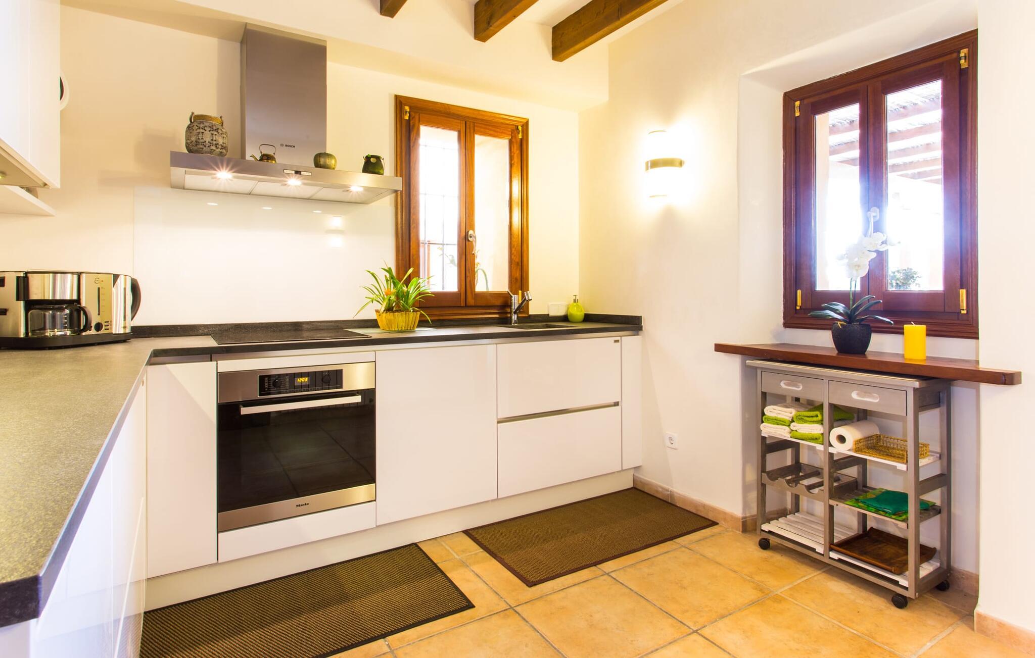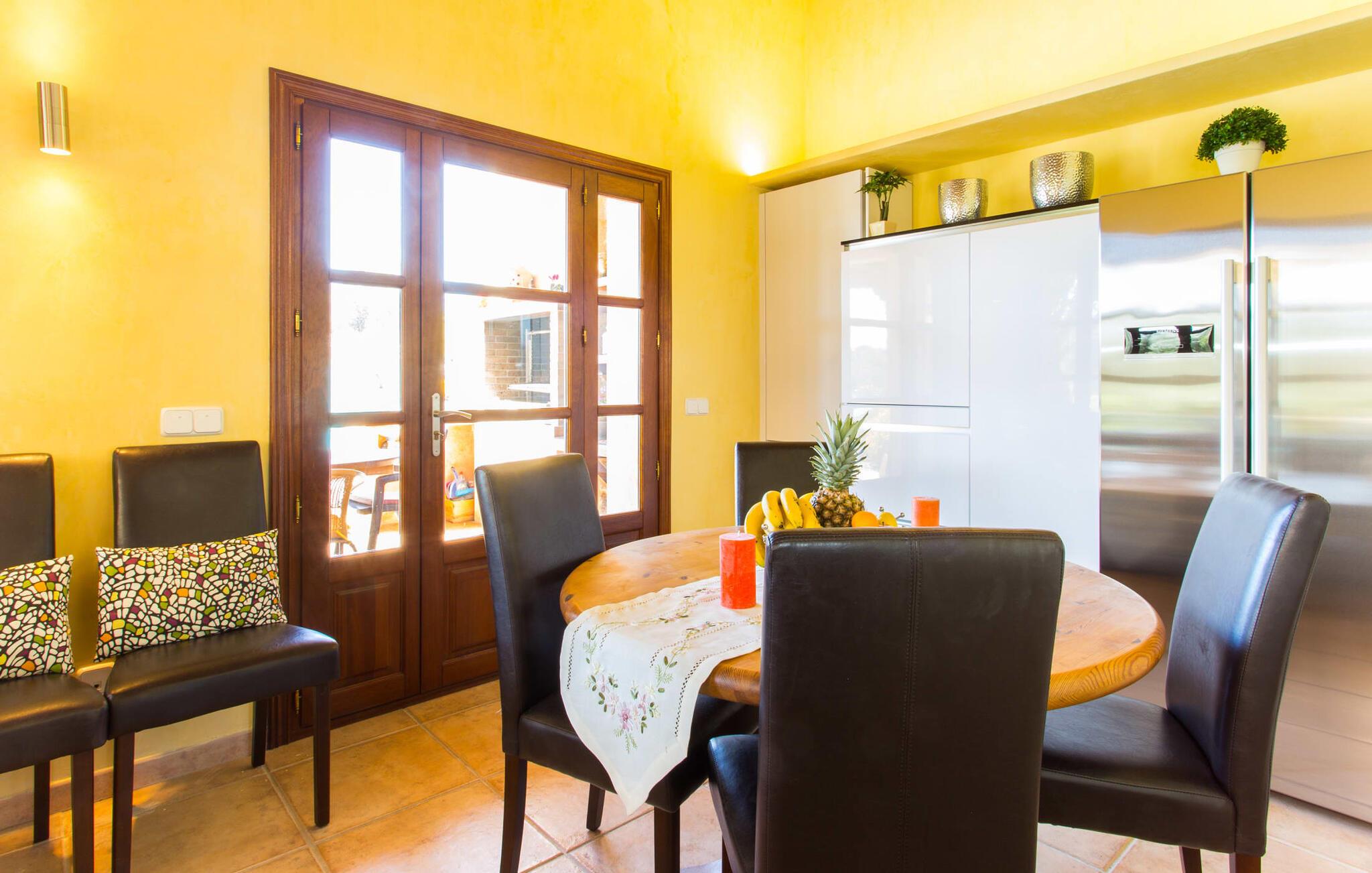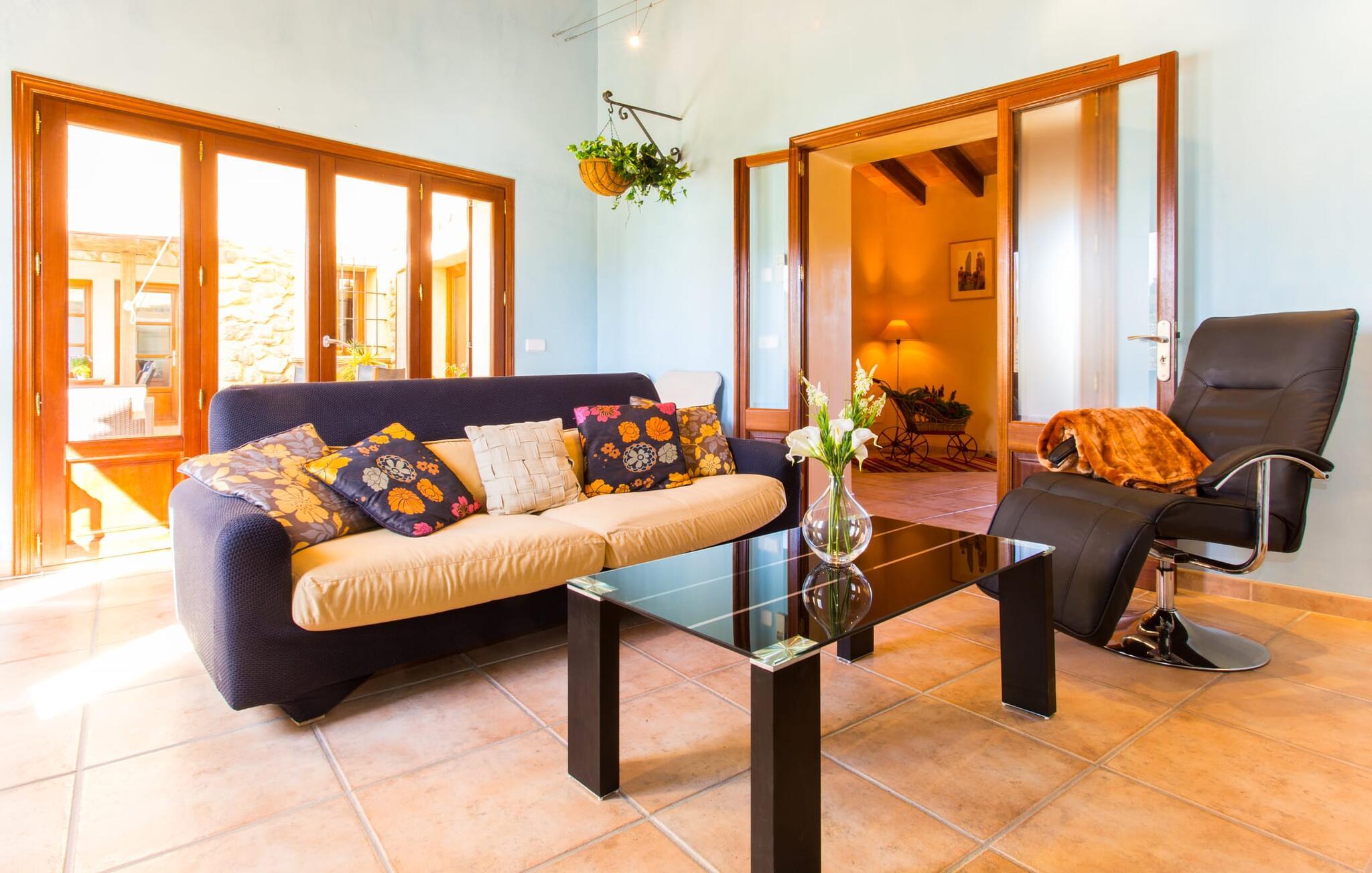 Im Inneren besticht die Villa durch einen modernen Landhausstil mit luftigen Räumen, sichtbaren Balken, Terrakottafliesen und fröhlichen Akzenten. Die voll ausgestattete Küche, die zum Essbereich hin offen ist, ist ideal für gemeinsame Mahlzeiten, während das gemütliche Wohnzimmer mit Kamin zum Entspannen einlädt. Es gibt vier klimatisierte Doppelzimmer, zwei mit einem großen 1,80 x 2,00 Doppelbett, und eines davon verfügt über ein eigenes Bad. Die anderen beiden Schlafzimmer verfügen jeweils über ein 1,60 x 2,00 m großes Bett. Die Villa bietet auch ein Billardzimmer, Sat-TV und schnelles Internet.