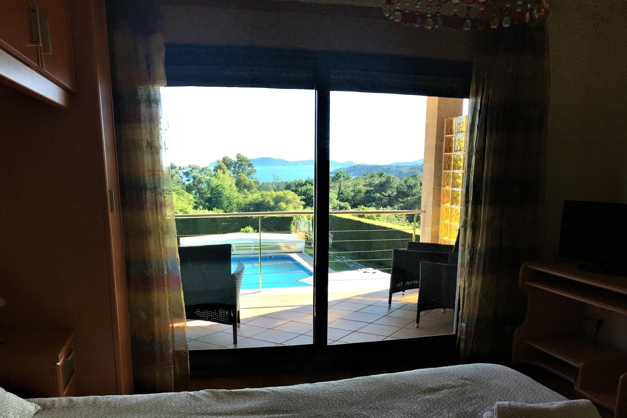 Küstenkomfort Zwischen der Ría de Vigo und der Ría de Pontevedra gelegen, bietet dieses einladende Maisonette-Apartment einen entspannten Ausgangspunkt, nur 400 Meter von den goldenen Sandstränden Playa de Viñó und Playa de Barra entfernt. Mit eigenem Eingang und privater Raumaufteilung über zwei Etagen eignet sich das Haus ideal für Familien, die Komfort und Bequemlichkeit suchen. Das Erdgeschoss öffnet sich zu einem hellen Wohnbereich und einer voll ausgestatteten Küche. Durch Glastüren gelangen Sie in den Garten und zum Gemeinschaftspool - ideal für ein erfrischendes Bad nach einem Tag am Strand. Entspannte Wohnbereiche Im Obergeschoss laden zwei gemütliche Schlafzimmer und ein modernes Badezimmer zum Entspannen ein. Das Haus ist durchdacht gestaltet und verfügt über WLAN, Heizung und einen privaten Parkplatz, sodass auch längere Aufenthalte problemlos möglich sind. Eine Terrasse mit Gartenmöbeln und Grill lädt zu Mahlzeiten im Freien ein, während der Gemeinschaftspool und die Außenbereiche einen ruhigen Rückzugsort schaffen. Ob Sie nach einem aktiven Tag neue Energie tanken oder einen ruhigen Morgen bei einem Kaffee genießen möchten - das Apartment vereint Komfort und Einfachheit. Strände und kulinarische Genüsse Von sonnenverwöhnten Stränden in Gehweite bis hin zu Wassersportmöglichkeiten, Reitmöglichkeiten und Bootsverleih in der Nähe bietet die Gegend zahlreiche Möglichkeiten für Abenteuer und Entspannung. Das Dorf Hío ist nur 2 km entfernt und das 6 km entfernte Cangas de Morrazo bietet Supermärkte, Geschäfte und lebhafte Märkte. Lokale Restaurants in Gehweite servieren frische galizische Meeresfrüchte und regionale Weine und machen das Essen zu einem Highlight Ihres Aufenthalts.