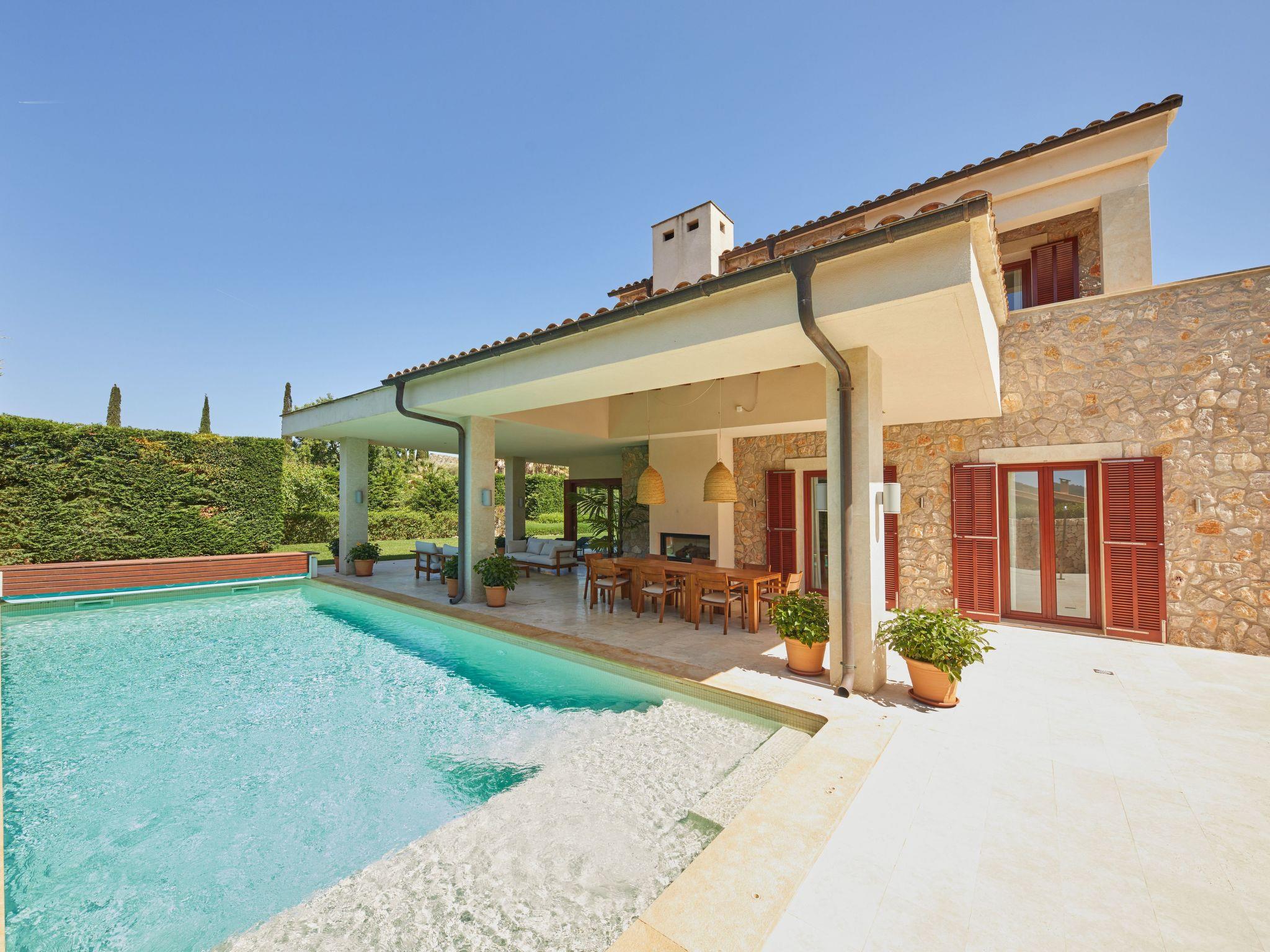 Im Außenbereich zeichnet sich das Anwesen durch einen außergewöhnlichen privaten Swimmingpool von ca. 43 m2 aus, der von großzügigen überdachten Terrassen und einem gepflegten Garten zur alleinigen Nutzung umgeben ist und zu Freizeit und Entspannung einlädt. Für Liebhaber von Mahlzeiten im Freien verfügt die Villa über einen Grill, der sich perfekt für Mahlzeiten und Abendessen unter dem mallorquinischen Himmel eignet. Darüber hinaus bietet die Dachterrasse zusätzlichen Raum für Erholung im Freien, während der Carport einen bequemen Parkplatz für die Fahrzeuge der Gäste bietet.