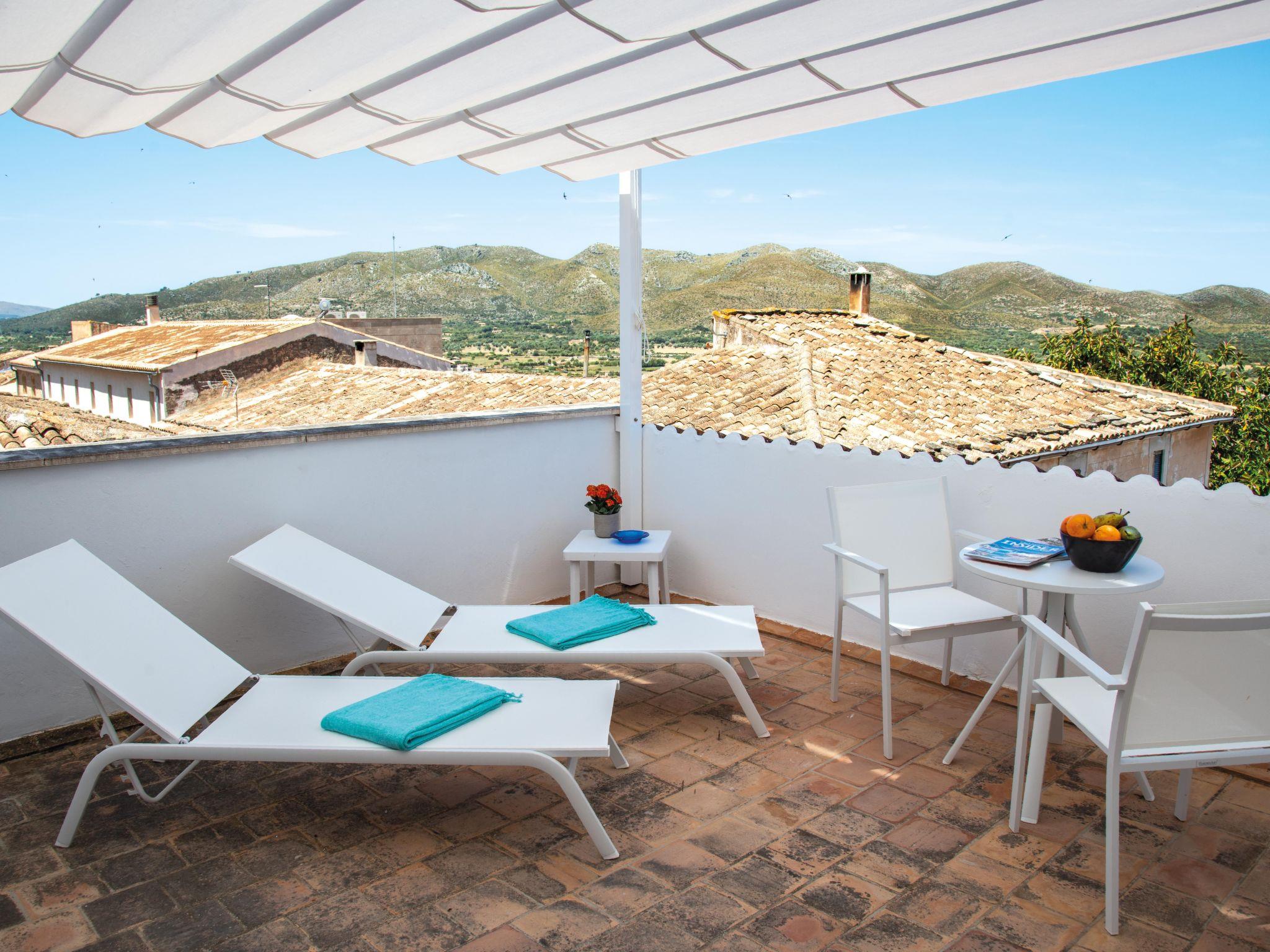 Die 16 m2 große Terrasse mit herrlichem Blick auf die Burg von Capdepera, den Glockenturm der Kirche und die Berge ist mit Gartenmöbeln, bestehend aus einem Tisch mit 4 Stühlen und zwei Liegestühlen, ausgestattet. Es gibt auch eine manuelle Markise, um die Terrasse zu bedecken.