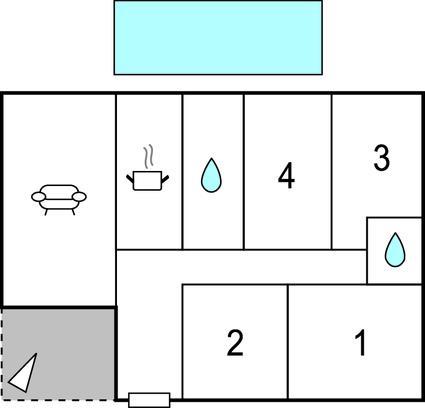 Badezimmer (nr. 1) - WC. Warmes und kaltes Wasser. Dusche