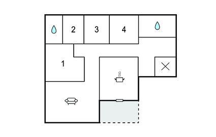 Badezimmer 5m2 (nr. 1) - WC. Warmes und kaltes Wasser. Dusche