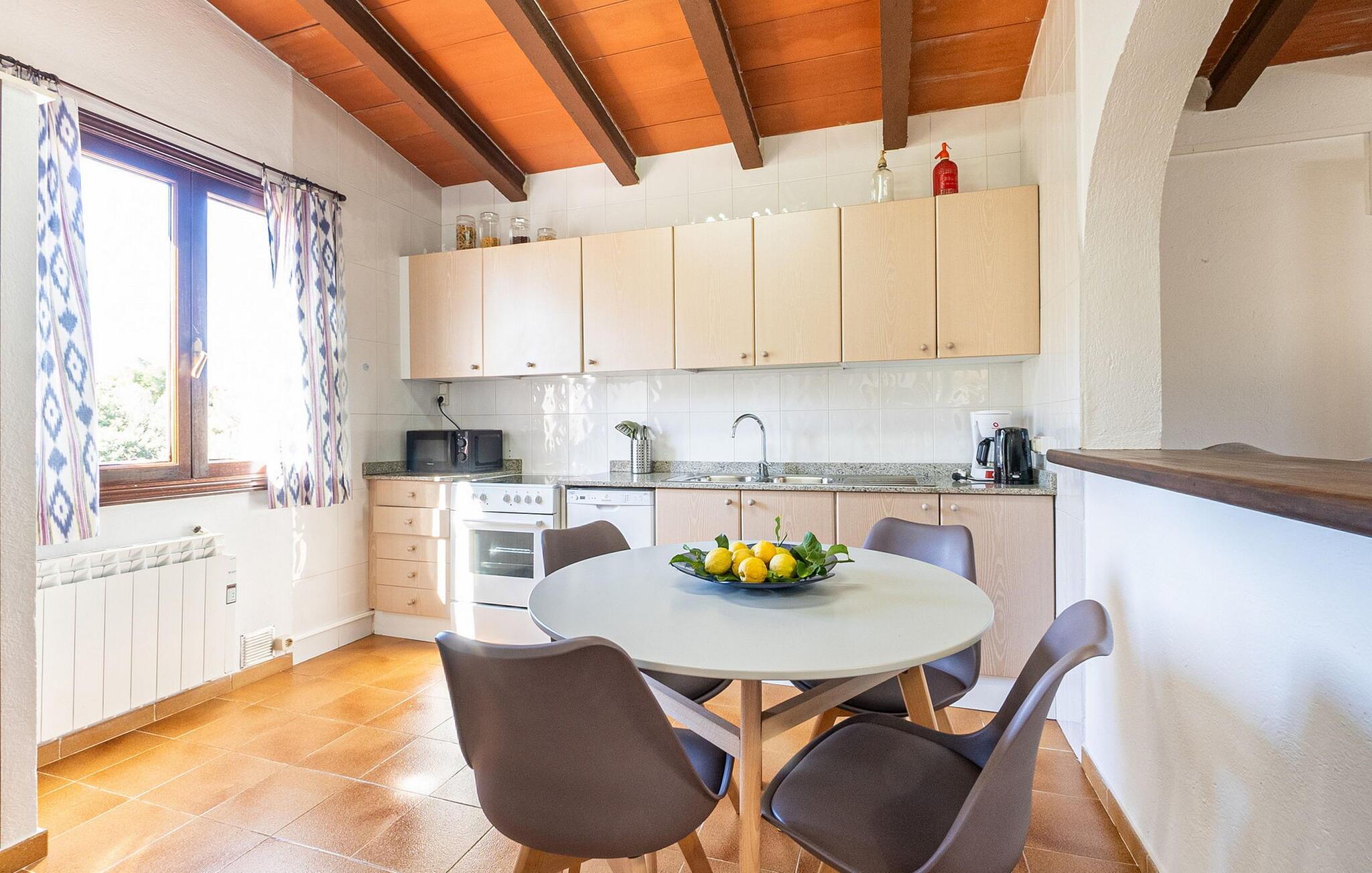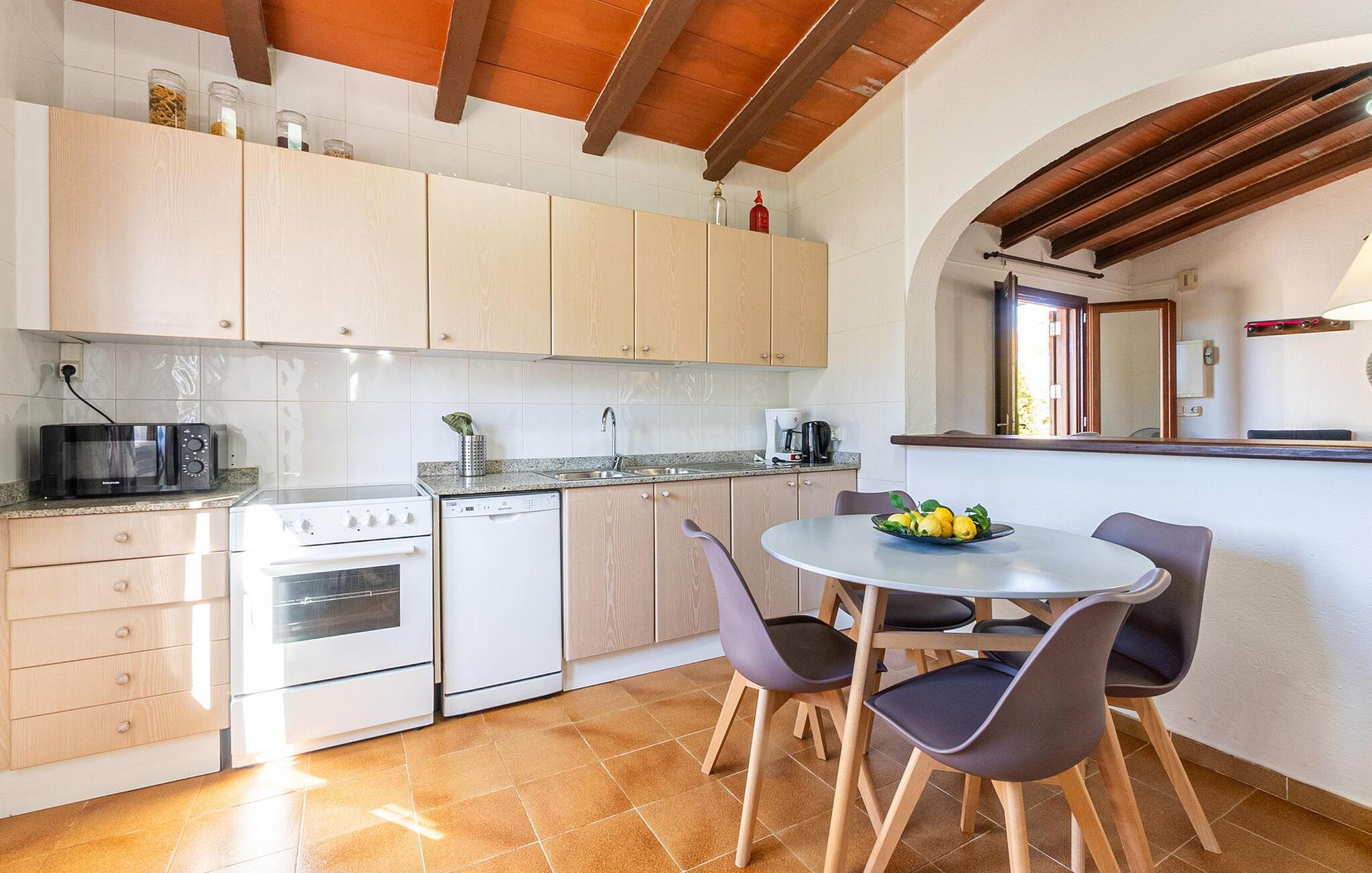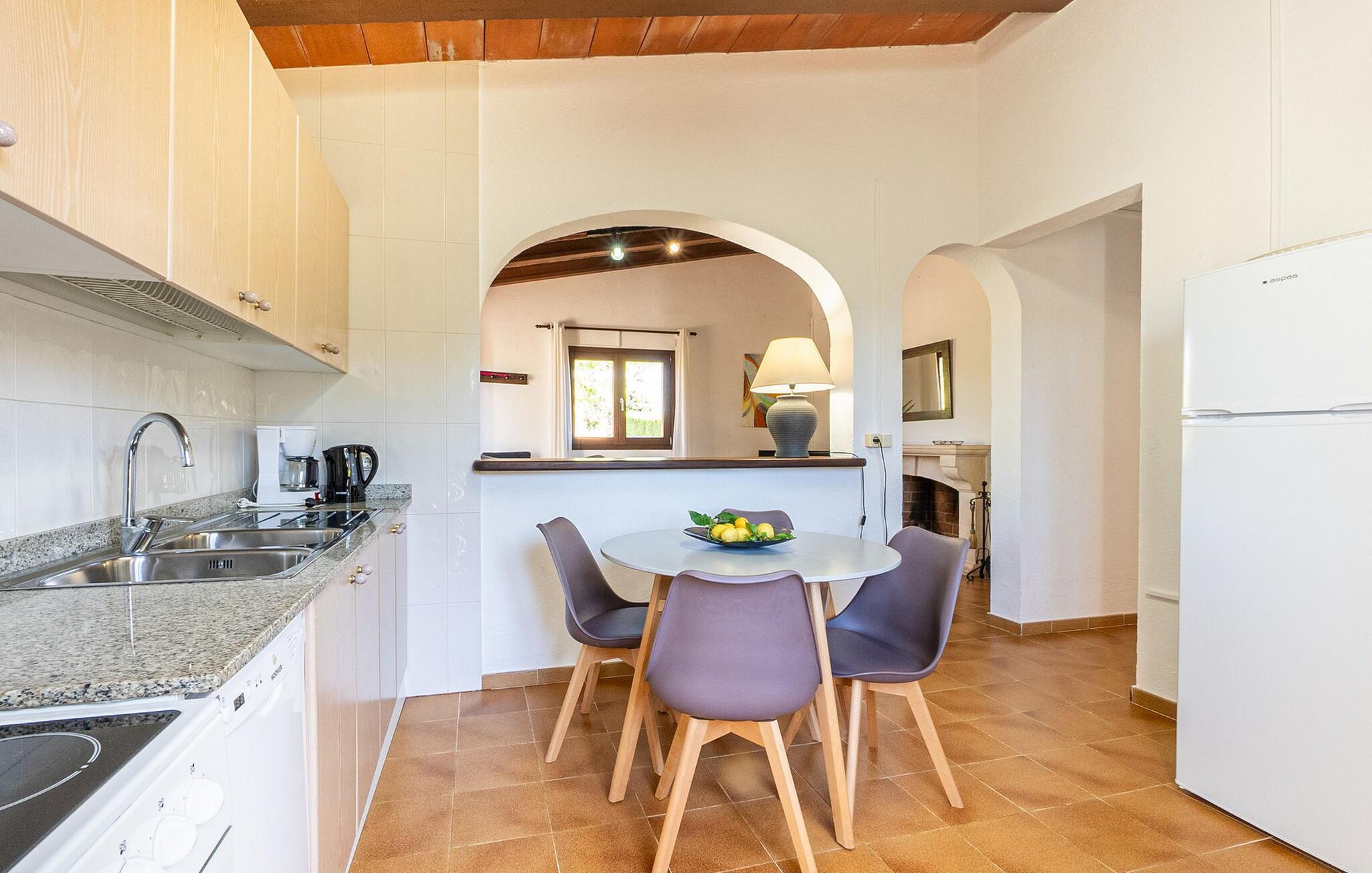 Klein und einfach bezaubernd: Wenn Sie im Urlaub nicht viel Luxus benötigen, sich aber in Ihrem privaten Bereich wohl und geschützt fühlen möchten, dann werden Sie sich in diesem Bungalow mit separatem Pool und schattenspendenden Bäumen auf jeden Fall wohlfühlen. Auch für Alleinreisende hat „Cas Boter“ die perfekte Größe – außerdem kann man durch die Nähe zu den anderen Villen ruhig wohnen und sich dennoch nicht völlig allein fühlen. Vom Flughafen aus erreichen Sie die beliebte Stadt Artà bequem mit dem Auto; Ankommen, Gepäck in die Ecke stellen und zunächst die vielen Sitzgelegenheiten im Garten entdecken. Besonders einladend ist die Steinbank im Sonnenlicht: Den müden Rücken an die warme Hauswand lehnen, tief durchatmen, einen Tee trinken – jeglicher Stress löst sich sofort auf. Reizvoll sind auch die bequemen Stühle unter dem Palmendach – wahrer Luxus ist doch, Freude an den kleinen Dingen im Leben finden zu können, oder? Dazu gehört auch der Pool, der von viel Grün umgeben und absolut privat ist. Sie können sogar ein paar Runden im Wasser schwimmen, ganz ohne Kleidung. Apropos Ausstattung: Der große, runde Steintisch eignet sich perfekt zum abendlichen Grillen – es ist kein Problem, wenn Ihnen die Spareribs aus der Hand rutschen. Es wird sowieso niemand sehen...