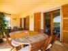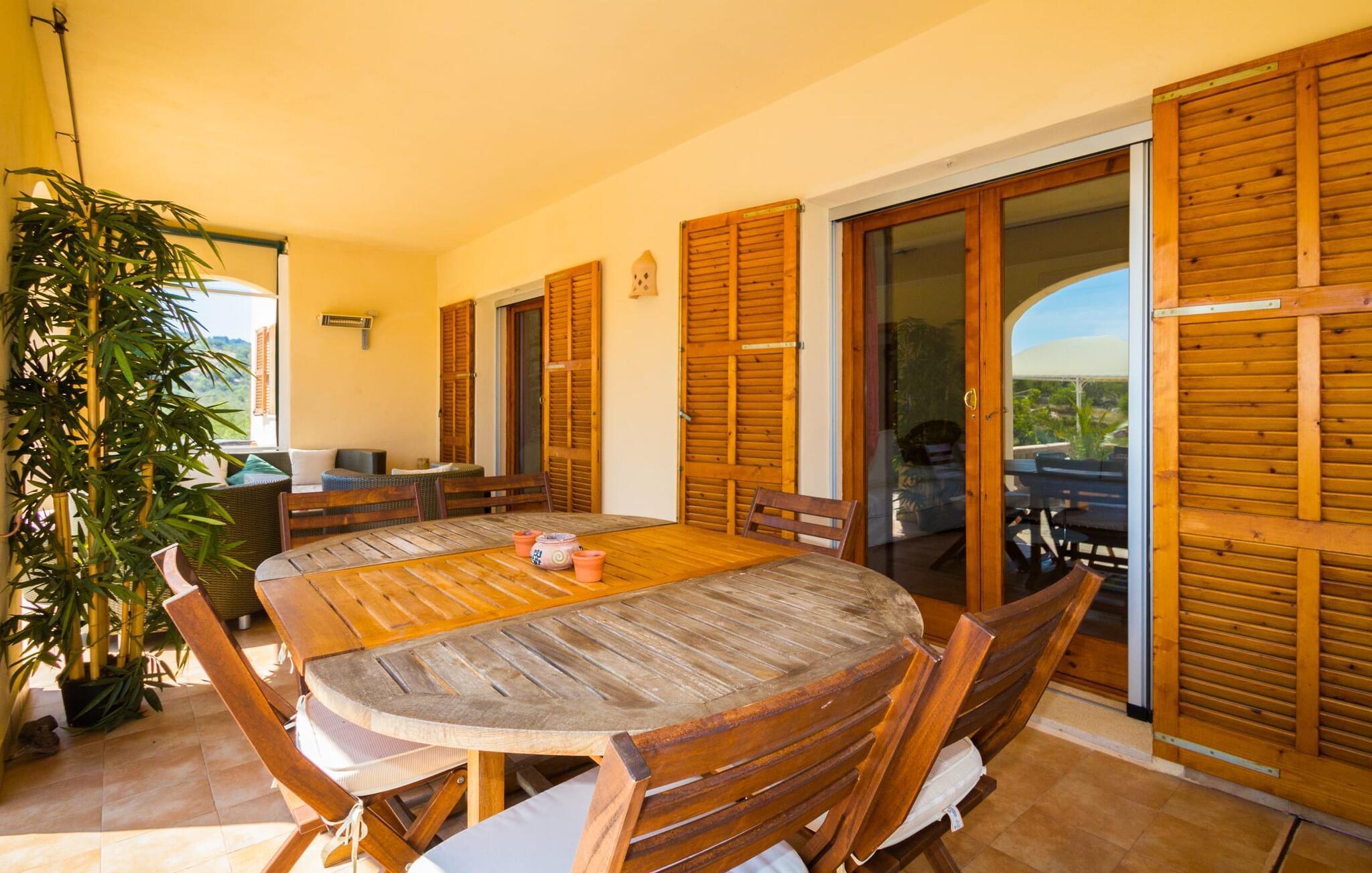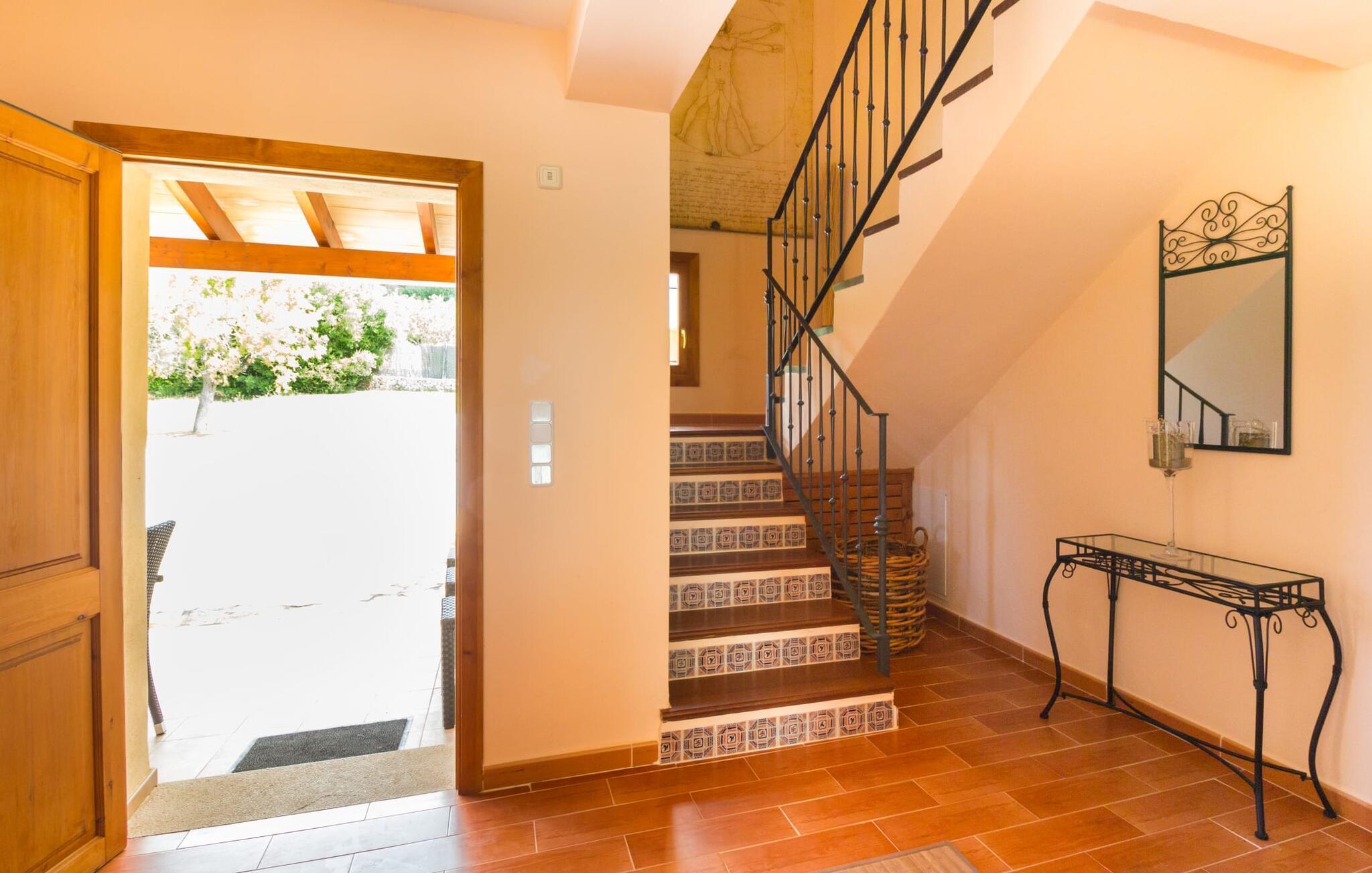 Auch das Innere der Villa ist bestens geeignet, unvergessliche Urlaubsstunden zu beherbergen. Das Herzstück von „Can Cans“ ist ein großer Wohnbereich mit integriertem Esszimmer und der angrenzenden, modern ausgestatteten Küche. Diese Räume mit modernen Möbeln und einem typisch mallorquinischen Ambiente, dominiert von hellen Sand- und Erdtönen sowie hölzernen Dachbalken, sind der perfekte Ort zum gemeinsamen Kochen, Essen und Plaudern – vielleicht begleitet vom Knistern des Kamins, während alle kochen fühlen sich auf den bequemen Sofas wie zu Hause. Sobald Sie ein wohliges Gefühl der Müdigkeit überkommt, können Sie sich einfach in eines der fünf Schlafzimmer zurückziehen, die alle hell wirken und bis ins kleinste Detail liebevoll gestaltet sind. Sie verfügen entweder über Einzel- oder Doppelbetten sowie direkten Zugang zu den Terrassenbereichen oder zum darüber liegenden Balkon. Dazu gehört eine weitere bequeme Sofagarnitur und ein herrlicher Aussichtspunkt, von dem aus man die Aussicht genießen kann. Bei der gehobenen Gestaltung der vier Badezimmer wurde offensichtlich auch auf Stil geachtet – die hübschen Fliesen in jedem Badezimmer sind ein besonderer Hingucker.