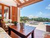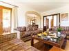 Jetzt sind wir wirklich gespannt, das Innere dieses Hauses zu sehen. Ist das Innere der Villa genauso schön wie das, was wir gerade hier gesehen haben? Das ist es auf jeden Fall! Das erste, was uns auffällt, ist, wie leicht und angenehm die Atmosphäre hier ist. Die strahlend weißen Wände in Kombination mit den überwiegend naturbelassenen Brauntönen der Möbel schaffen ein Ambiente der lässigen Behaglichkeit, das anzieht und zum Verweilen einlädt. Im Erdgeschoss befinden sich der Hauptwohn- und Essbereich, eine große Küche und drei geschmackvoll eingerichtete, klimatisierte Schlafzimmer sowie drei modern aussehende Badezimmer. Sofas mit Leopardenmuster schaffen eine Art Safari-Atmosphäre im Wohnzimmer, wo Sie sich entspannen und ein wenig lesen, Musik hören, einen guten Film im Fernsehen schauen oder im Internet surfen können – hier gibt es mehr als genug zu tun. Und an kühleren Abenden trägt ein Kaminofen zusätzlich zur gemütlichen Atmosphäre bei. Ein breiter steinerner Torbogen führt zu einem eher stattlichen Essbereich, wenn Sie mal eine köstliche Mahlzeit im Innenbereich einnehmen möchten. Von hier aus sind es nur wenige Schritte bis zur geräumigen Küche, die komplett mit Herd, Backofen, Mikrowelle, Kühlschrank, Geschirrspüler, Wasserkocher und Melitta-Kaffeemaschine ausgestattet ist. Es ist geräumig genug, dass mehrere Personen gemeinsam tolle Mahlzeiten zubereiten können. Es gibt sogar Platz für einen zusätzlichen Esstisch, an dem bis zu sechs Personen bequem Platz finden. Im Obergeschoss befindet sich ein weiteres einladendes, klimatisiertes Schlafzimmer mit eigenem Bad und einer kleinen Dachterrasse mit spektakulärer Aussicht.
