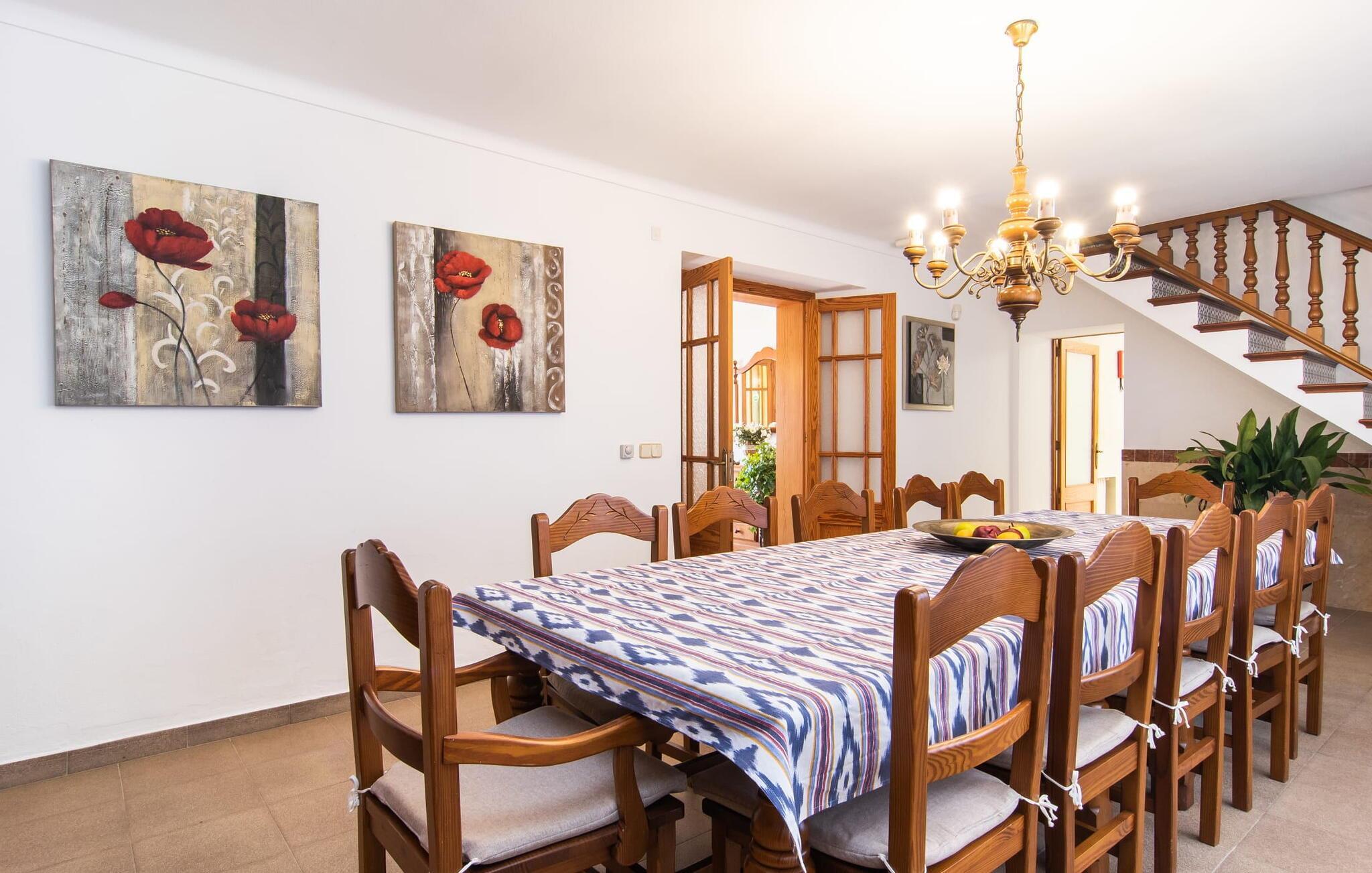 „Cas Munji ist ein Paradebeispiel für ein mallorquinisches Ferienhaus für Familienreisen. Es zeichnet sich durch ein großzügiges, zweistöckiges Landhaus aus, das über eine weitläufige Natursteinterrasse, einen riesigen Pool und einen wunderschön angelegten Gartenbereich verfügt. Bunte Bougainvilleen und majestätische Palmen Tätigen Sie sich mit anderen Palmen- und Kakteenarten. Auf den teilweise überdachten Terrassen finden Sie ausreichend Sitzgelegenheiten für alle zusammen oder als Rückzugsort für einen guten Plausch. Freundlich, da es einen bequemen Treppeneingang gibt und das Gelände durch einen Zaun gesichert ist, ist der Tischtennistisch ein weiterer Spaß für Groß und Klein, während einige in der Sonne auf einer der Liegen entspannen oder eine Partie Tischtennis spielen Beim Schwimmen im Pool können die anderen Gäste bereits gemeinsam den Grillabend und das Abendessen vorbereiten. So fühlen Sie sich im Urlaub wie zu Hause und können sich vollkommen der luxuriösen Entspannung hingeben.