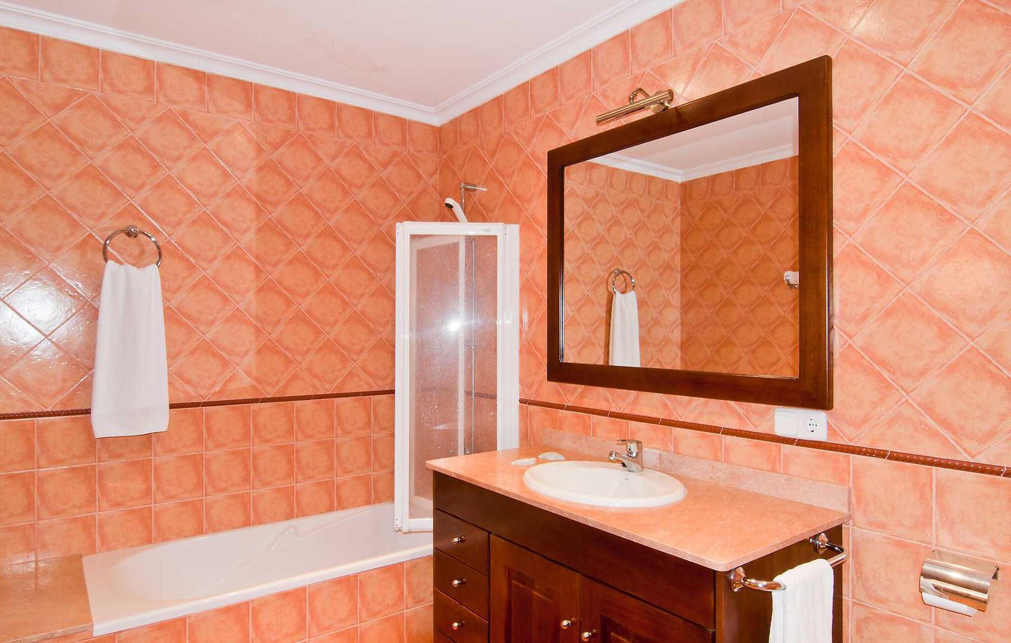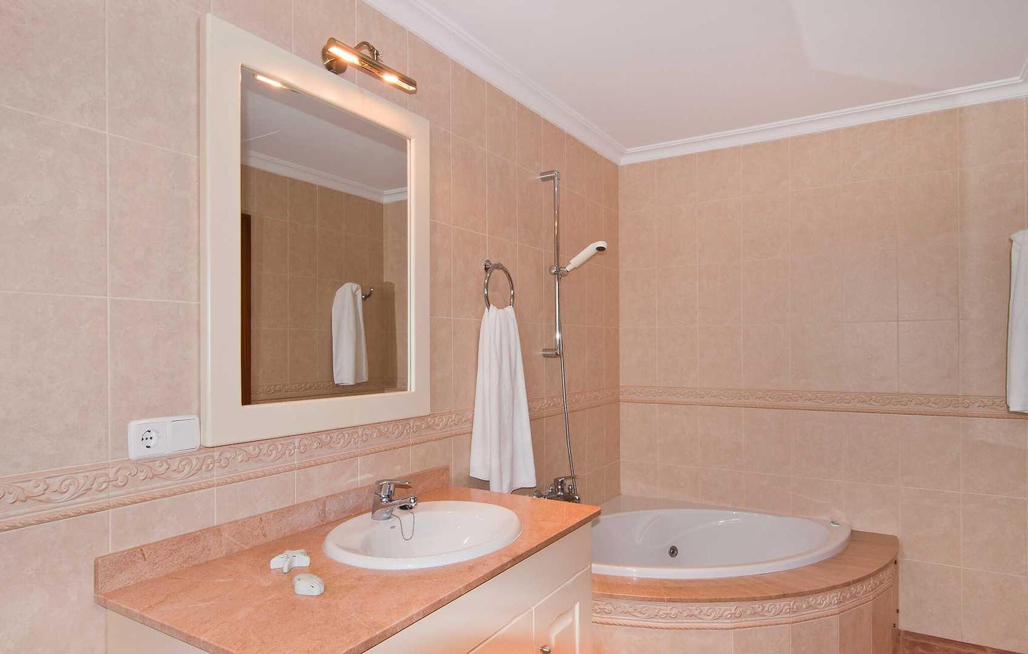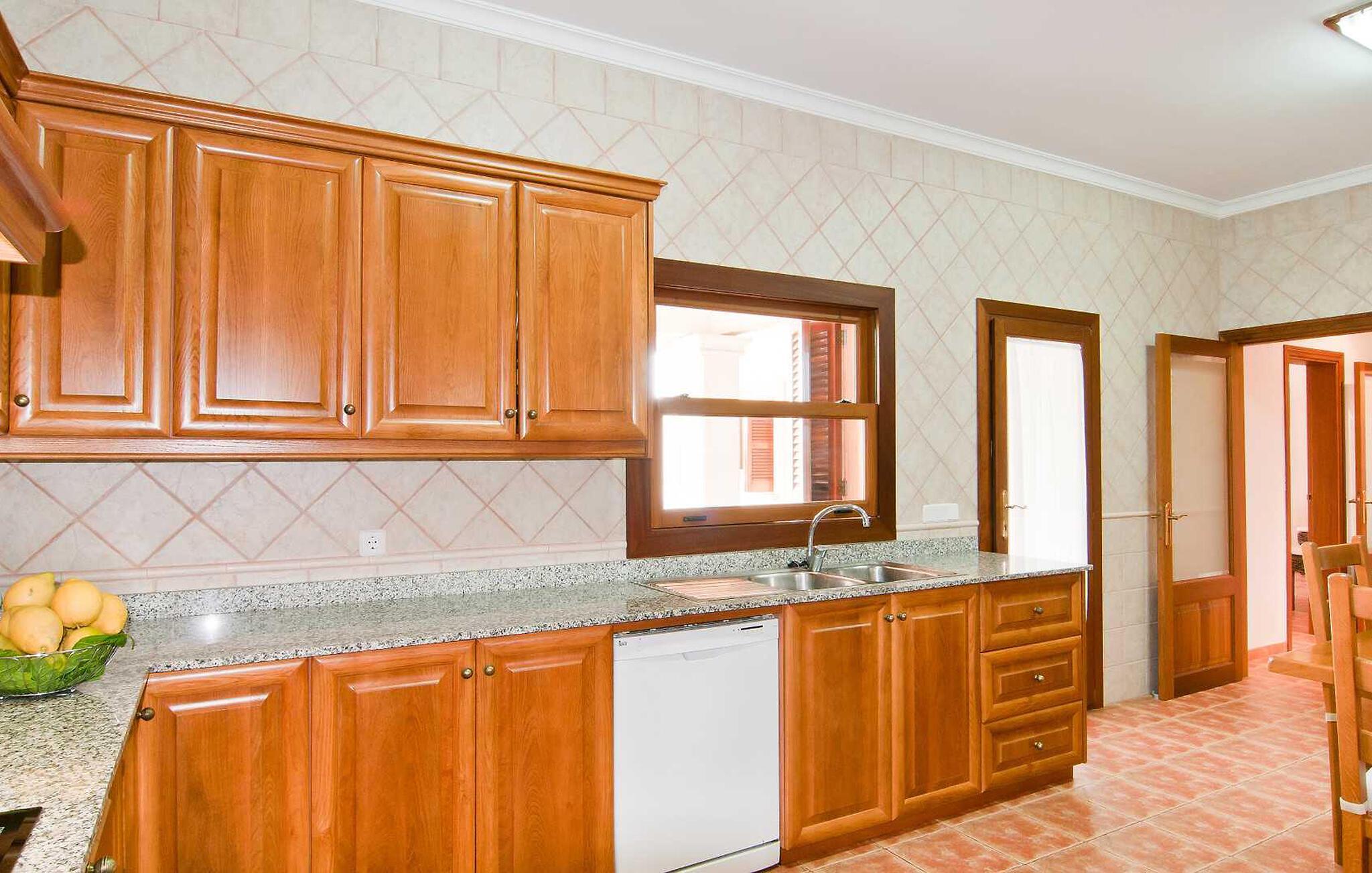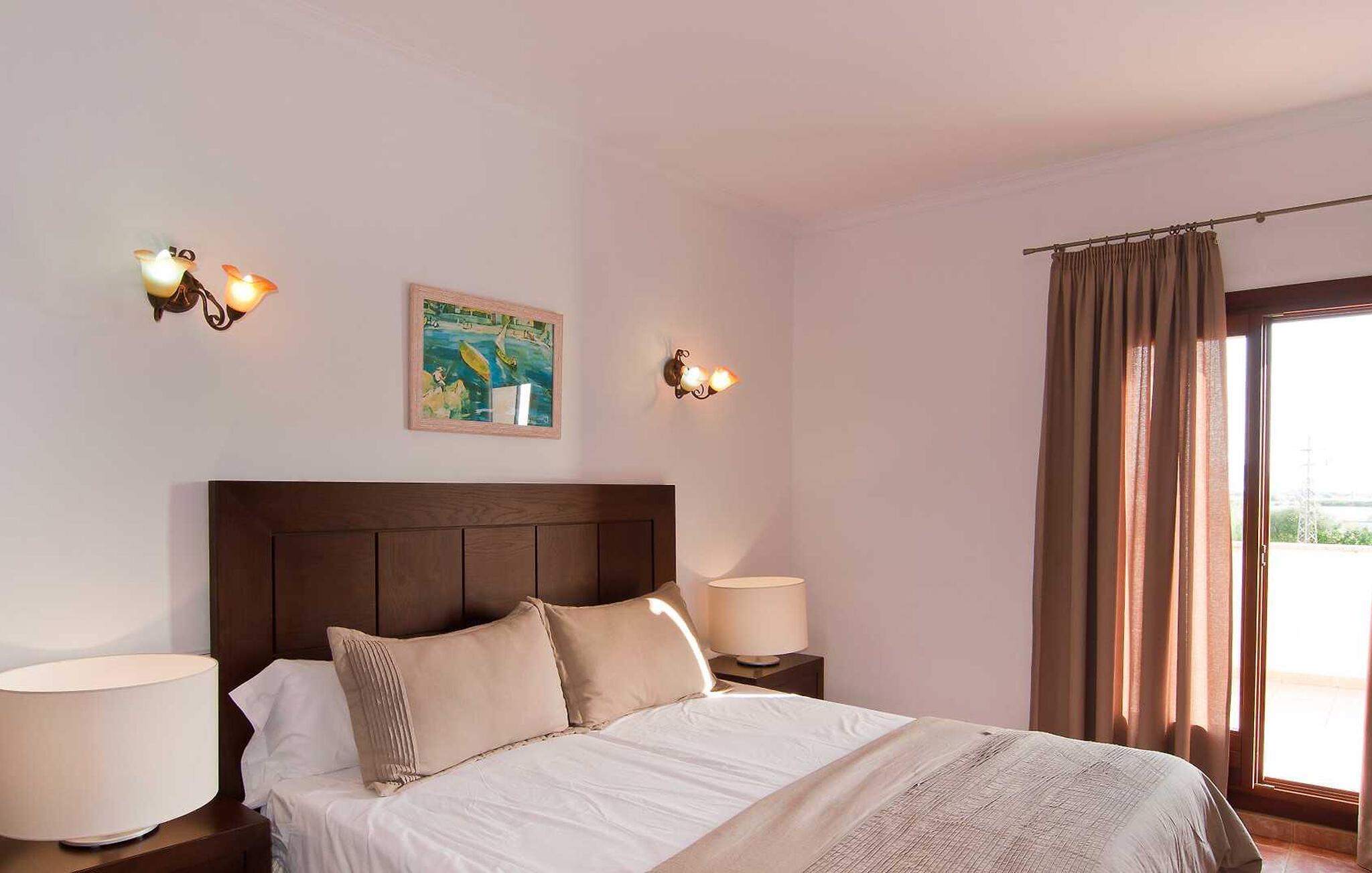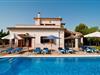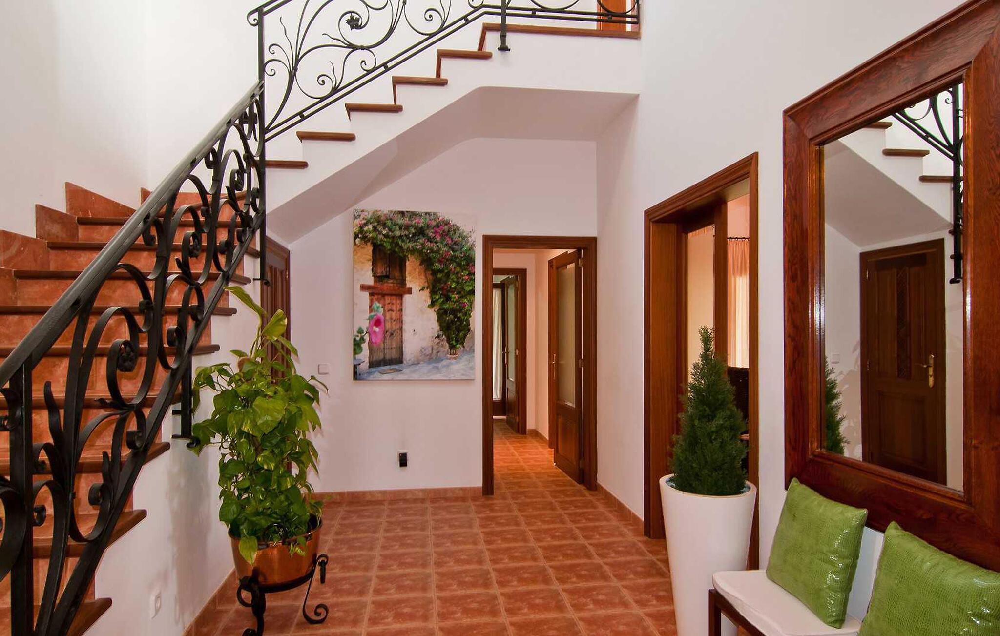 Die südliche Ausrichtung und die großen Fenster der Villa sorgen für freundliche Helligkeit im Inneren des Hauses. Zusammen mit der rustikalen Einrichtung und Ihren hochwertigen Möbeln ist dies sehr gemütlich. Bemerkenswert sind die freiliegenden Holzbalken unter der Decke, die den rustikalen Charme verstärken, sowie die typisch mallorquinischen Fliesen in Lehmfarbe, die im gesamten Haus zu finden sind. Vom freundlichen Eingangsbereich gelangen Sie direkt in das angrenzende Wohn- und Esszimmer, wo sich ein großer Esstisch aus Holz befindet. Die Rattanstühle laden mit ihren hellen Kissen zu langen gemeinsamen Abenden ein. So können Sie vom hellen Sofa aus einen gemütlichen Fernsehabend verbringen. In der voll ausgestatteten Küche gibt es einen weiteren großen Essbereich, der zu gemeinsamen Kochabenden einlädt. Die Küche bietet dem Gast alle Annehmlichkeiten, die Sie normalerweise von zu Hause kennen: Spülmaschine, Backofen, Herd, Kühl-/Gefrierkombination, Mikrowelle, Wasserkocher und Kaffeemaschine. Die vier freundlichen und ansprechenden Schlafzimmer sind geschmackvoll eingerichtet. Die 1,90 x 2,0 m großen Betten laden zum erholsamen Schlafen ein. Es gibt insgesamt vier geräumige Badezimmer, alle en-suite, eines mit Whirlpool und ein Gäste-WC. Drei Schlafzimmer befinden sich im Erdgeschoss und eines im Obergeschoss mit Zugang zur Dachterrasse, von der Sie einen schönen Blick auf den Pool haben.