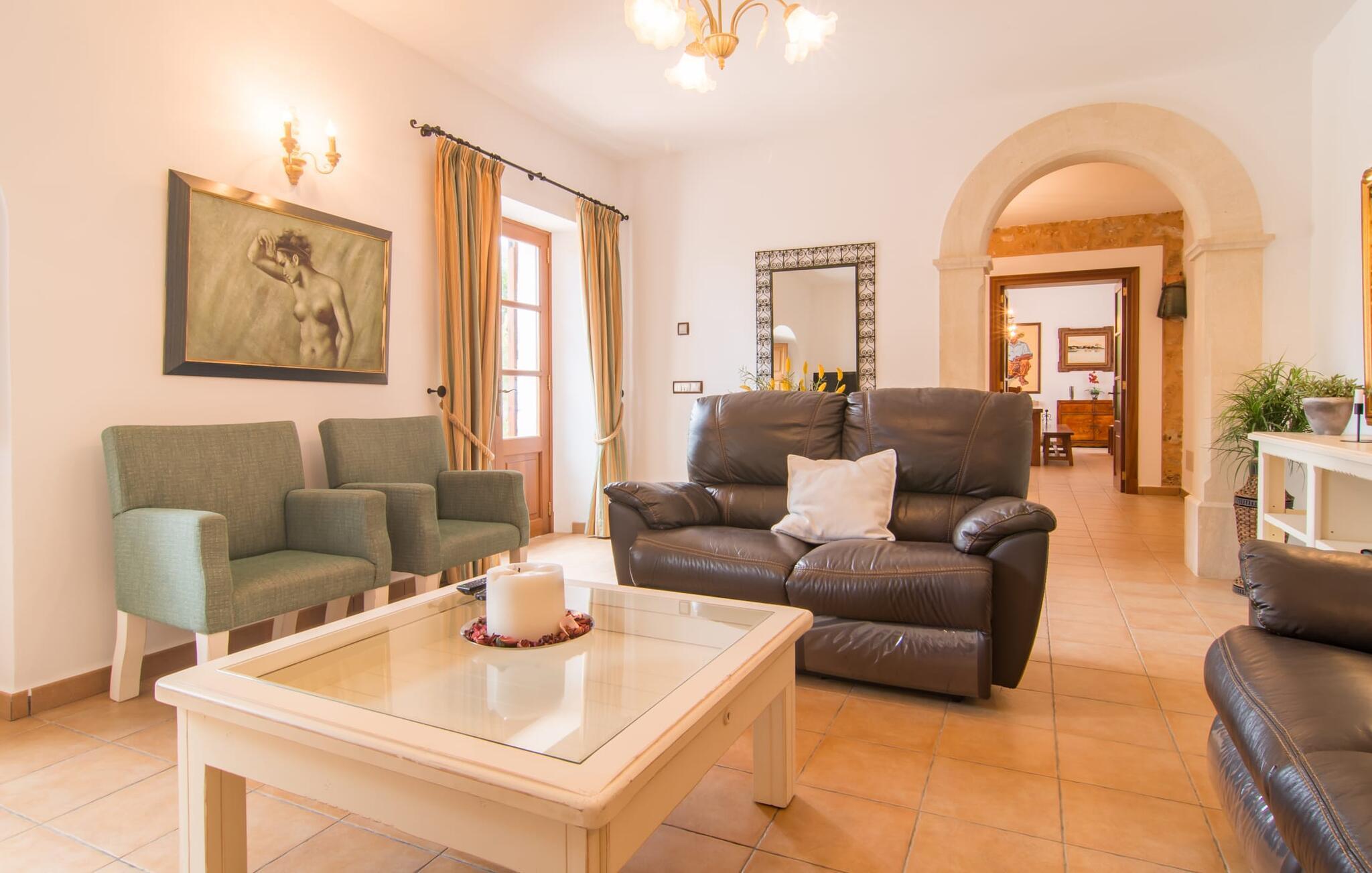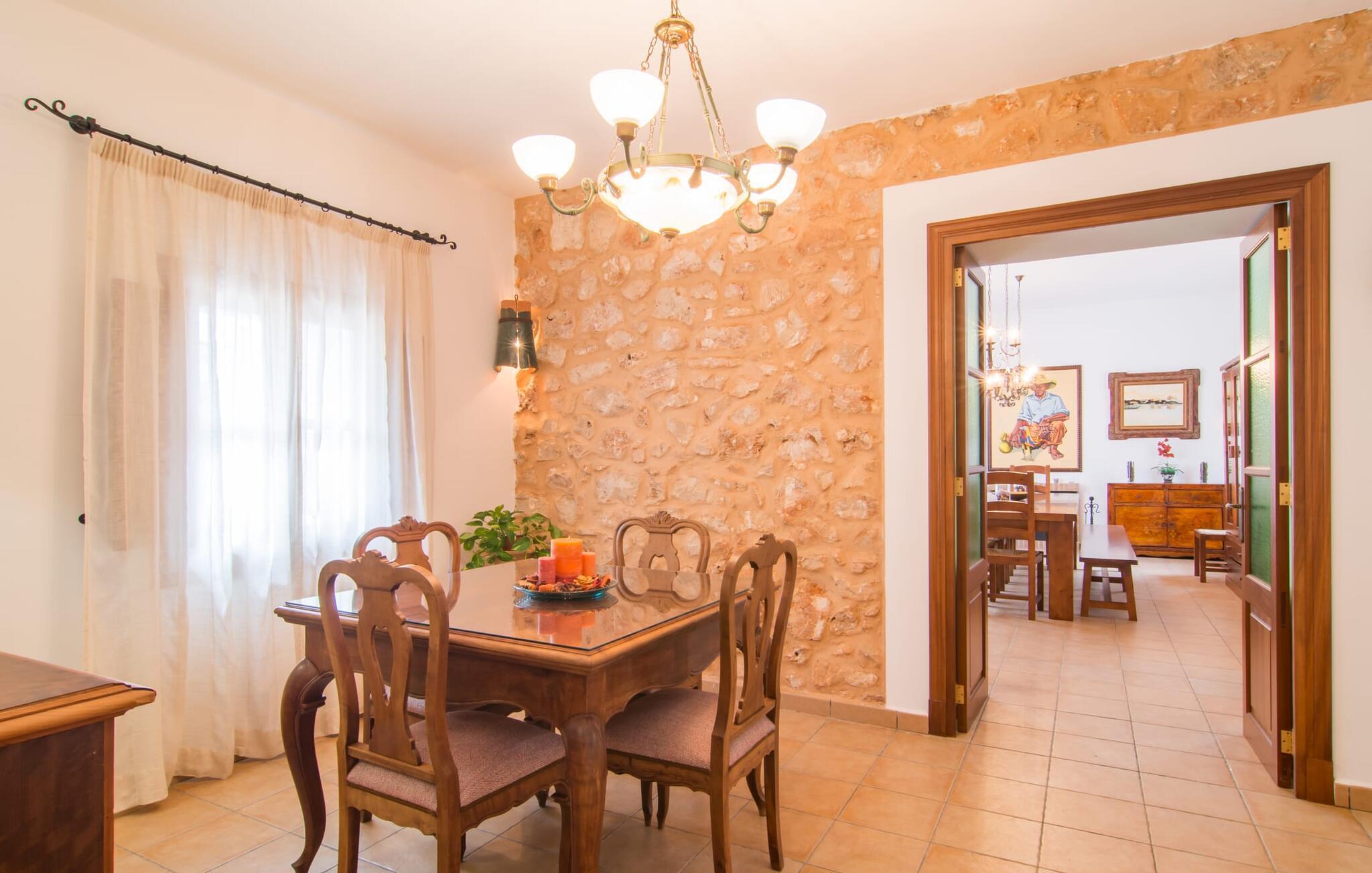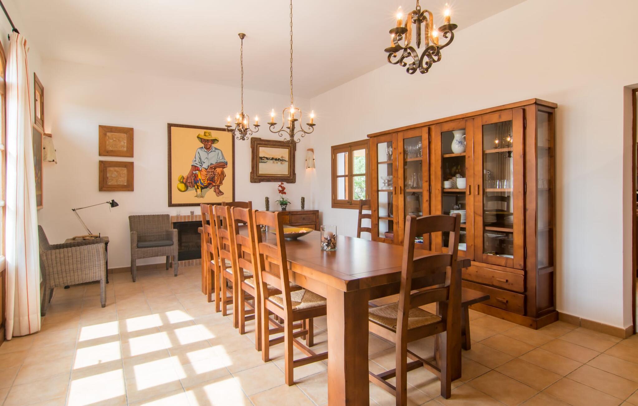 Betreten Sie die Villa durch eine große, massive Eingangstür aus Holz und gelangen Sie in das Foyer des Hauses. Weiter geht es in den Wohntrakt mit Essbereich und Küche – natürlich komplett ausgestattet mit Waschmaschine, Geschirrspüler, Kühlschrank, Wäschetrockner und vielem mehr – und zu den verschiedenen Schlafzimmern, alle mit Klimaanlage ausgestattet. Die Villa verfügt über vier Schlafzimmer und bietet ausreichend Platz für bis zu acht Gäste. Sollten Sie mit einem Baby anreisen, steht Ihnen ein Kinderbett sowie ein Hochstuhl zur Verfügung. Das Haus bietet außerdem vier Badezimmer, davon drei en-suite. Daher ist die Privatsphäre auch bei voller Auslastung uneingeschränkt gewährleistet. Die Villa ist durchweg geschmackvoll eingerichtet und erfüllt Ihre hohen Ansprüche an Luxus während eines Villenurlaubs auf Mallorca. Außerdem gibt es Klimaanlage, Heizung, Sat-TV und WLAN. Das Innere der Villa ist ebenso hochwertig und mit allen notwendigen Annehmlichkeiten ausgestattet wie der Außenbereich.