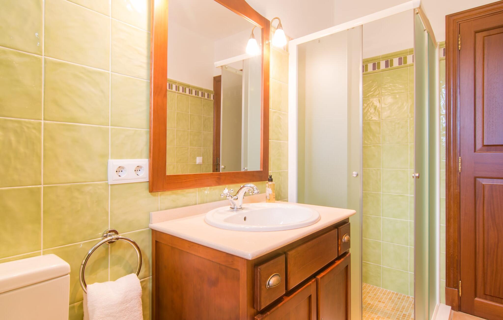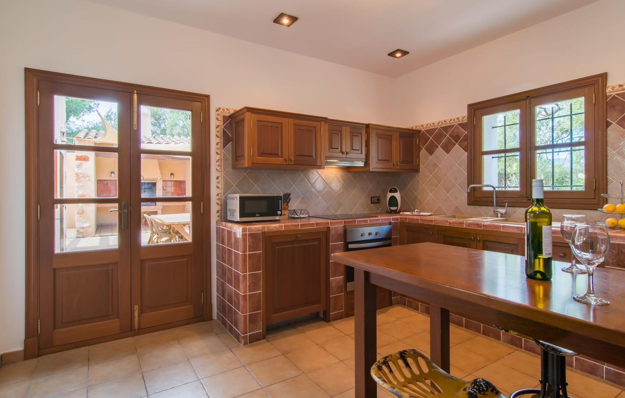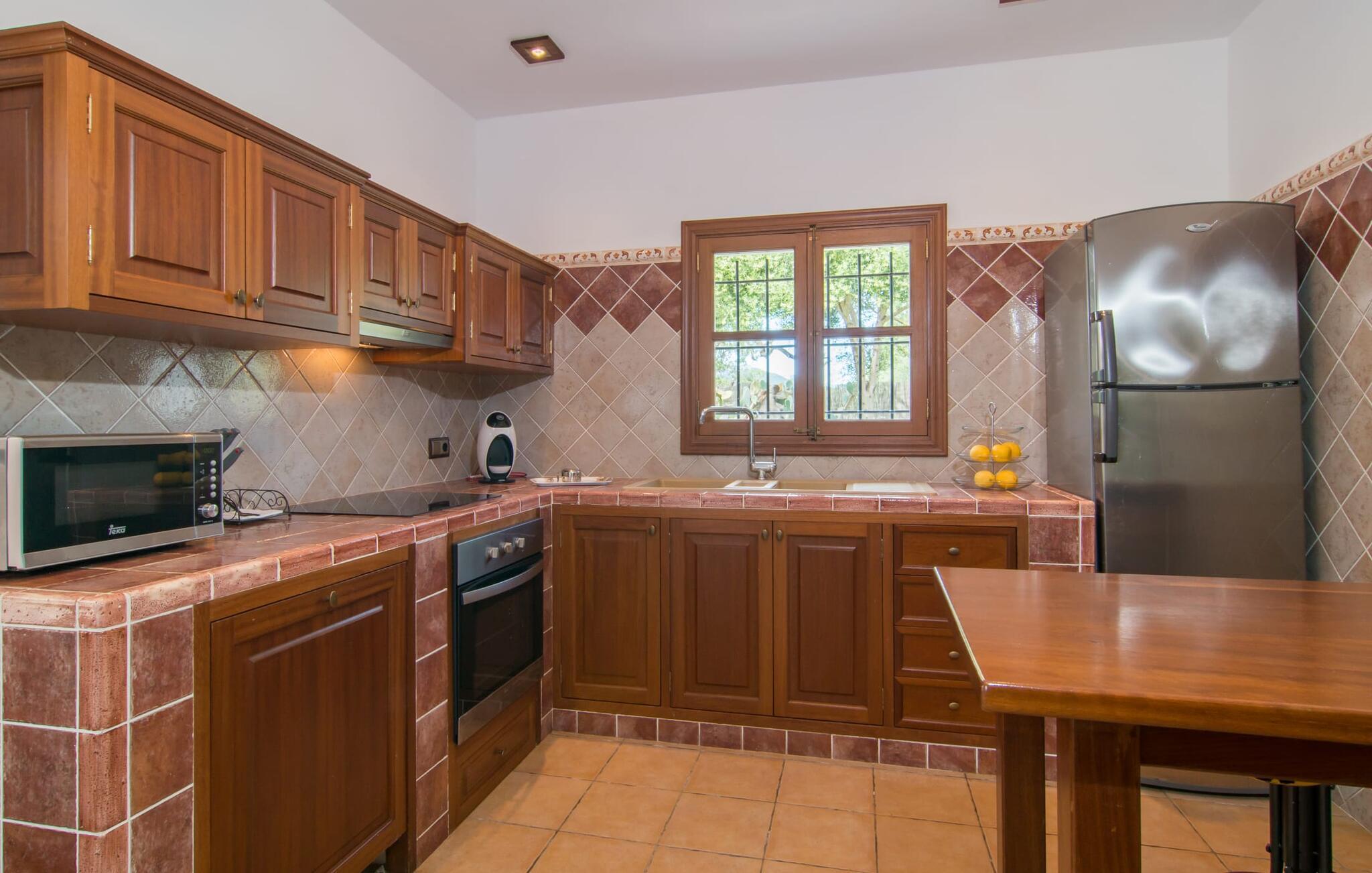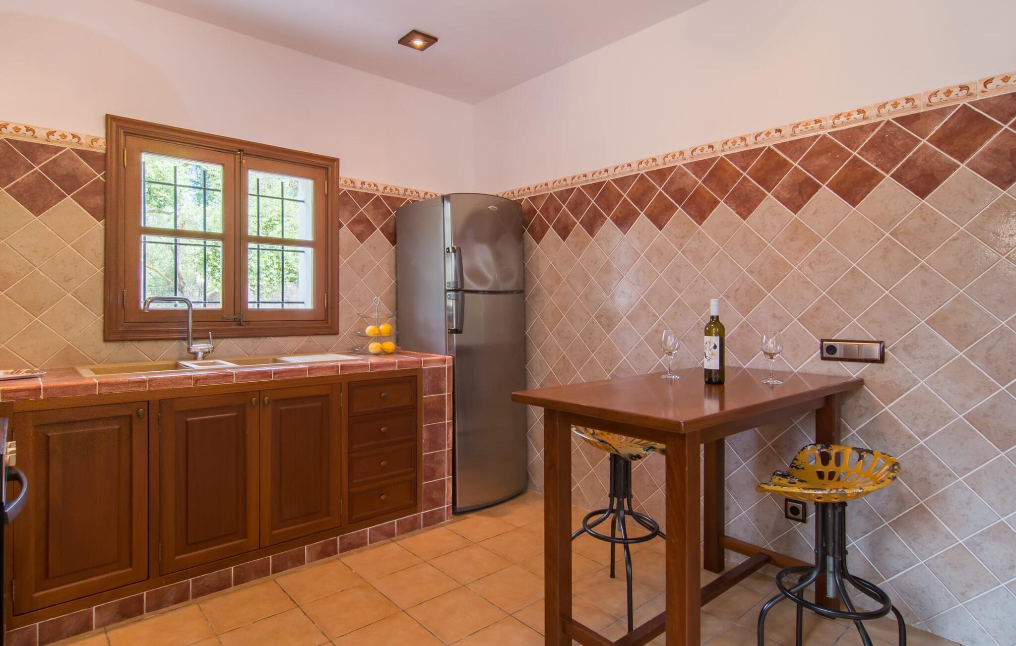 Betreten Sie die Villa durch eine große, massive Eingangstür aus Holz und gelangen Sie in das Foyer des Hauses. Weiter geht es in den Wohntrakt mit Essbereich und Küche – natürlich komplett ausgestattet mit Waschmaschine, Geschirrspüler, Kühlschrank, Wäschetrockner und vielem mehr – und zu den verschiedenen Schlafzimmern, alle mit Klimaanlage ausgestattet. Die Villa verfügt über vier Schlafzimmer und bietet ausreichend Platz für bis zu acht Gäste. Sollten Sie mit einem Baby anreisen, steht Ihnen ein Kinderbett sowie ein Hochstuhl zur Verfügung. Das Haus bietet außerdem vier Badezimmer, davon drei en-suite. Daher ist die Privatsphäre auch bei voller Auslastung uneingeschränkt gewährleistet. Die Villa ist durchweg geschmackvoll eingerichtet und erfüllt Ihre hohen Ansprüche an Luxus während eines Villenurlaubs auf Mallorca. Außerdem gibt es Klimaanlage, Heizung, Sat-TV und WLAN. Das Innere der Villa ist ebenso hochwertig und mit allen notwendigen Annehmlichkeiten ausgestattet wie der Außenbereich.