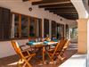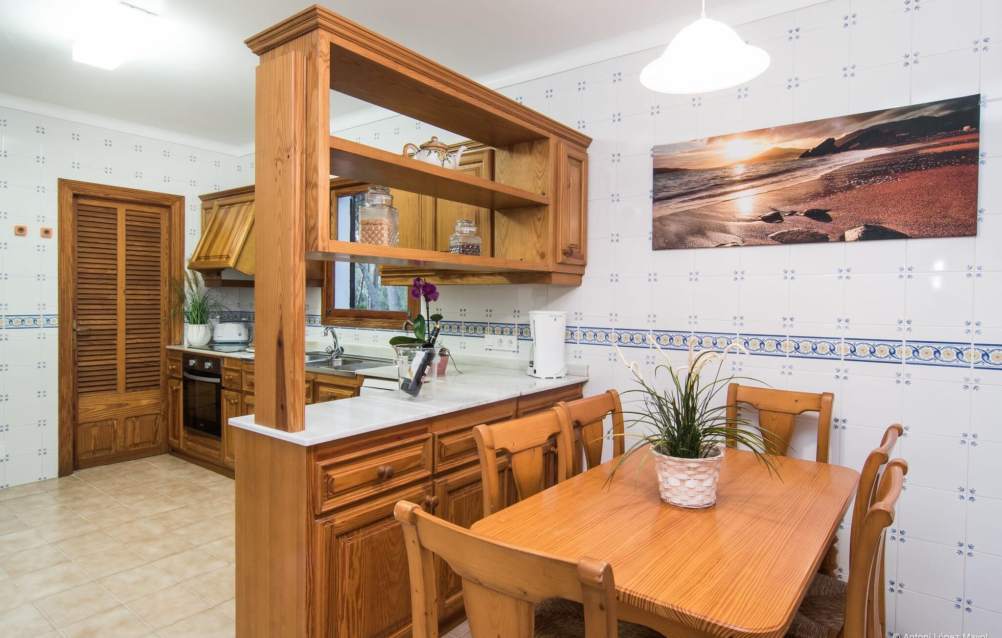 Zurück vom Meer, nachdem man im Außenbereich unter der Dusche den Sand abgewaschen hat, bietet die Villa an der „Cat Bay“ den perfekten Rückzugsort zum Chillen, Essen, Spielen, Lesen, Schlafen und mehr. Auf 210 m², verteilt auf zwei Ebenen, finden Urlauber eine komfortable Ausstattung, die den Ansprüchen eines angenehmen Villenurlaubs gerecht wird. Im Erdgeschoss befinden sich eine Küche, ein großes Ess- und Wohnzimmer, sowie ein Badezimmer und drei Schlafzimmer. Der Wohn- und Essbereich mit TV-Ecke und Esstisch bietet durch große Fensterfronten eine Verbindung zur vorderen Veranda und somit auch zum Meer. Die Wände der gemütlichen Küche sind mit traditionellen mallorquinischen Fliesen gefliest. Für Mahlzeiten in kleineren Gruppen steht ein zusätzlicher Esstisch zur Verfügung. Von hier aus gelangt man über eine Terrassentür auf die hintere Veranda. Die drei Doppelschlafzimmer bieten ebenso wie ihre Pendants im Obergeschoss viel Platz und Stauraum für Ihre Urlaubsgarderobe. Darüber hinaus sind alle Schlafzimmer mit einem Flachbild-TV ausgestattet, sodass auch bei Langeweile etwas Unterhaltung geboten wird. Ein zweites, blitzsauberes Badezimmer im Obergeschoss rundet das Innere der Villa ab.