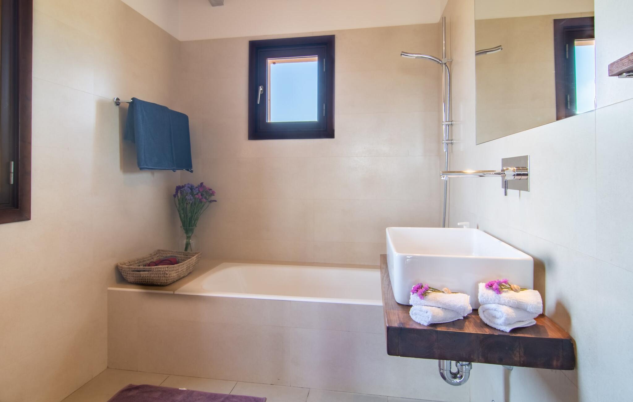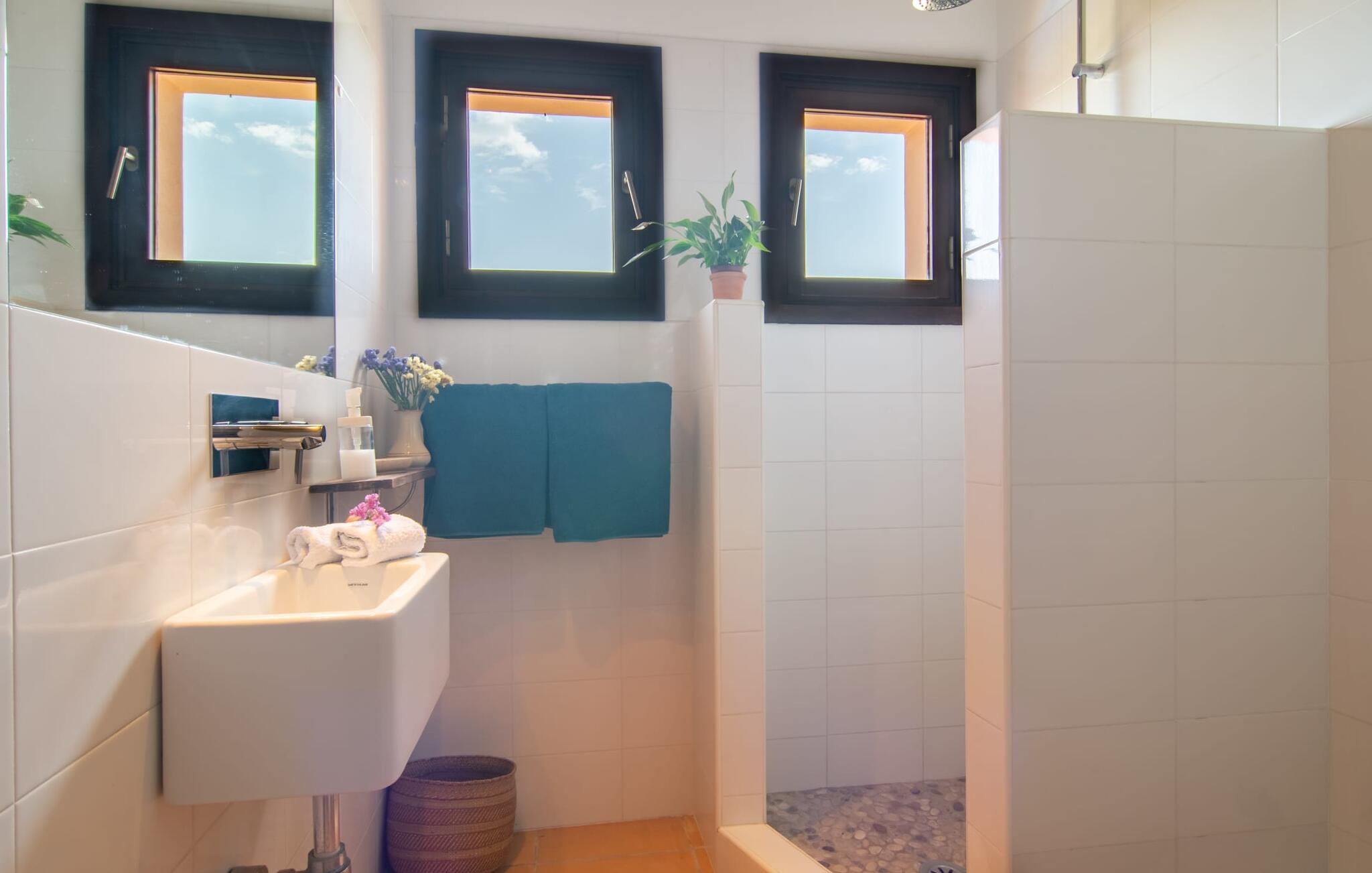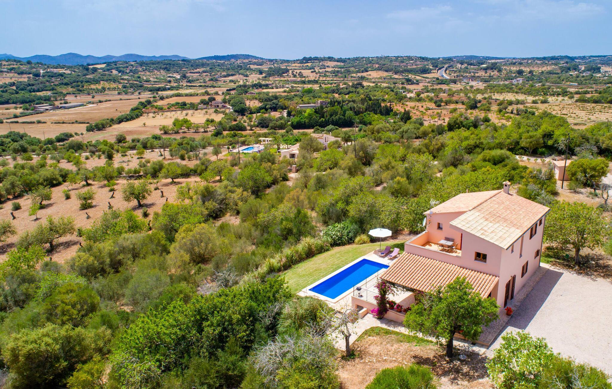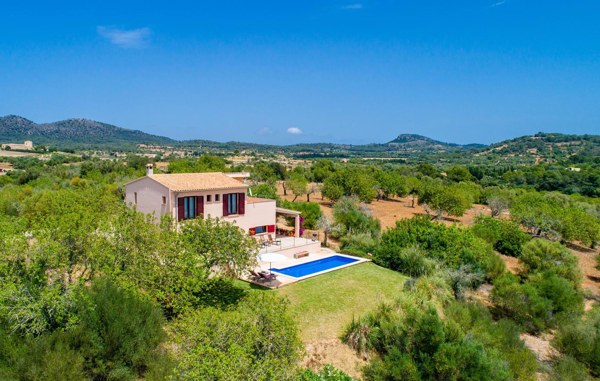 Von Zeit zu Zeit werden Sie den sanften Klang der Glocken hören, die die Schafe tragen, wenn sie friedlich auf dem Grundstück grasen – aber um andere Nachbarn müssen Sie sich keine Sorgen machen: Villa „Casa Sangura“ liegt an einem Hang und im Süden -orientierte Lage in einem ruhigen Tal im Osten Mallorcas. Das hübsche Haus verfügt über sonnige und überdachte Terrassen, jeweils liebevoll mit Pflanzen geschmückt und mit einladenden Gartenmöbeln ausgestattet, im Erdgeschoss sowie eine Dachterrasse mit Meerblick und liegt als einziges Gebäude auf einem riesigen Anwesen mitten in einer wahrlich beschaulichen Landschaft traumhafte Landschaft. Ein paar Stufen führen vom Haus zum abfallenden Pool. Nachdem Sie die erfrischende Kühle genossen haben, können Sie es sich auf einer der bequemen Sonnenliegen gemütlich machen und den Blick schweifen lassen: Natur pur soweit das Auge reicht. Allerdings ist das Faulenzen für aktive Kinder erfahrungsgemäß etwas langweilig – stattdessen können sie sich wunderbar auf der Liegewiese rund um den Pool austoben.