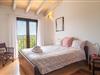 Große Fenster lassen überall Licht herein: Dies verleiht „Casa Sangura“ seinen hellen, offenen und einladenden Innenraum. Für eine besondere Atmosphäre sorgen die vielen schönen Einrichtungsgegenstände aus dunklem afrikanischen Holz, die die Eigentümer der Villa von ihren Aufenthalten in Ostafrika mitgebracht haben. Sie ergänzen perfekt das entspannte, moderne Wohnambiente, das Sie beim Betreten des Hauses umgibt. Im Erdgeschoss finden Sie ein Gäste-WC sowie einen einzigen großzügigen Wohnbereich, der sich in eine mit hochwertigen Geräten ausgestattete Küche – beim Abwaschen genießen Sie einen beeindruckenden Blick auf die Landschaft – und den Esstisch gliedert mit Stühlen und dezenter Beleuchtung sowie das Wohnzimmer mit einer eleganten Säule, einem gemütlichen Sofa und einem gemauerten Kamin. Alle drei Schlafzimmer, jeweils ausgestattet mit sehr schönen, originalen Holzbetten, liegen im Dachgeschoss und sind über eine moderne Treppe zu erreichen. Die beiden luxuriösen Badezimmer, eines davon en-suite, befinden sich ebenfalls im Obergeschoss.