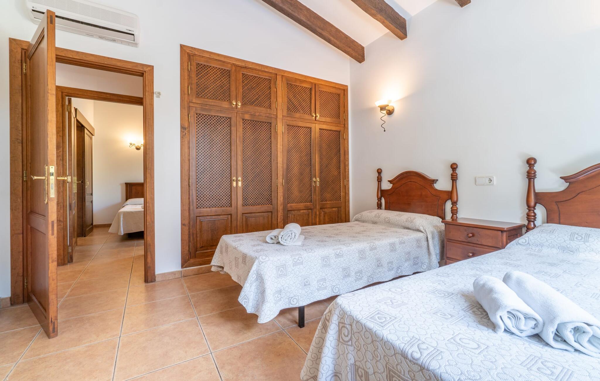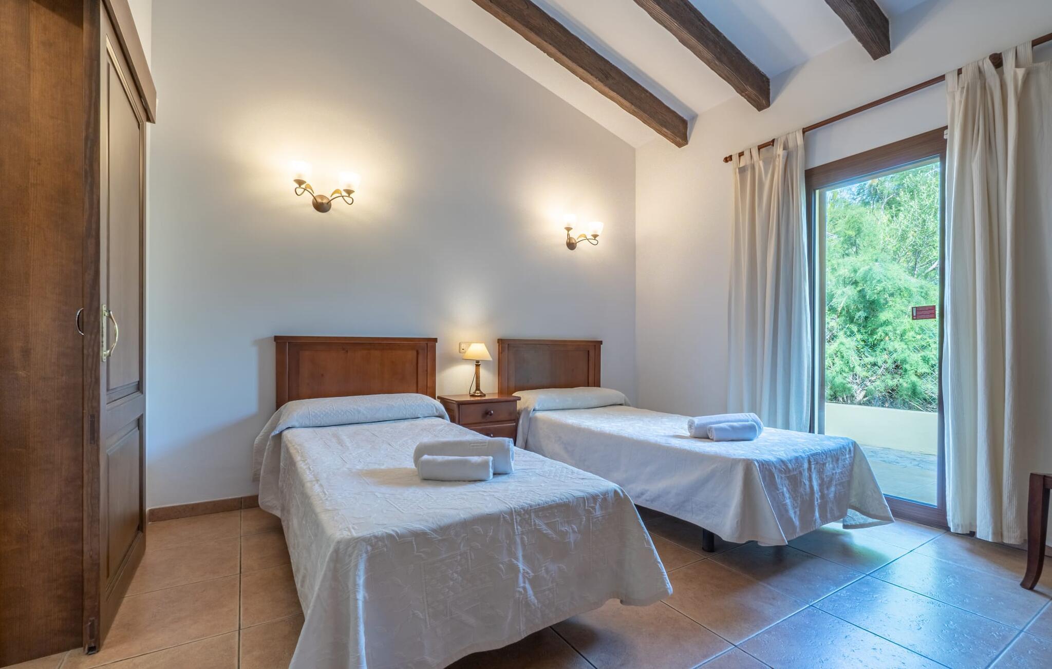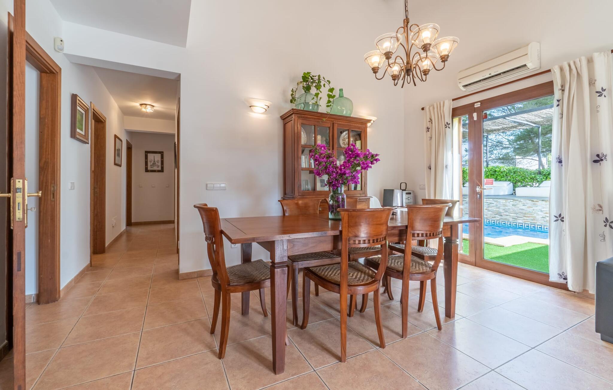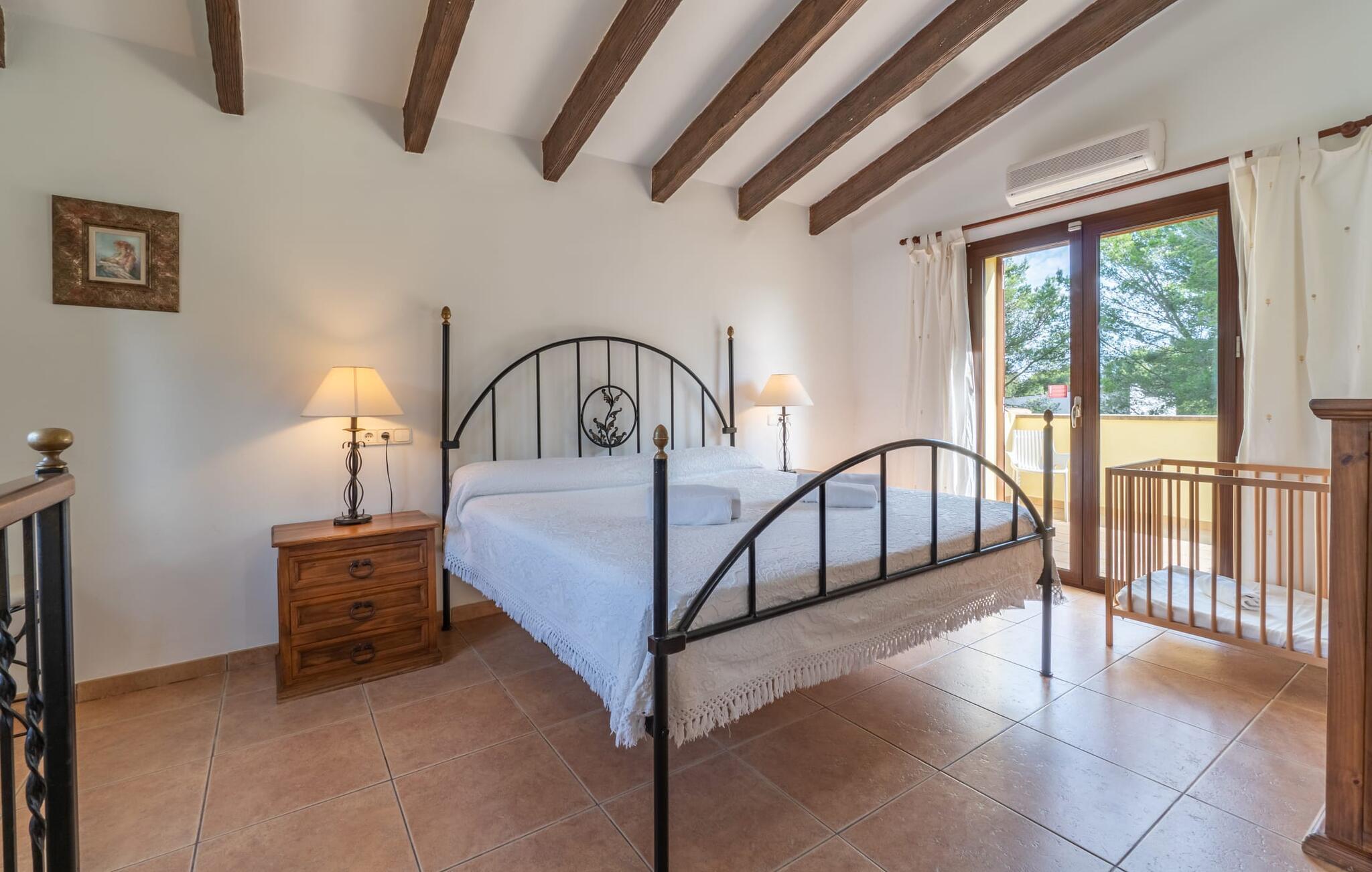 Im Erdgeschoss befinden sich zwei weitere Doppelschlafzimmer, während eine Treppe in die obere Etage führt, die einem prächtigen Hauptschlafzimmer mit eigenem Bad und viel Stauraum gewidmet ist. Von hier aus haben Sie Zugang zu einer Terrasse mit Blick auf den Poolbereich.
