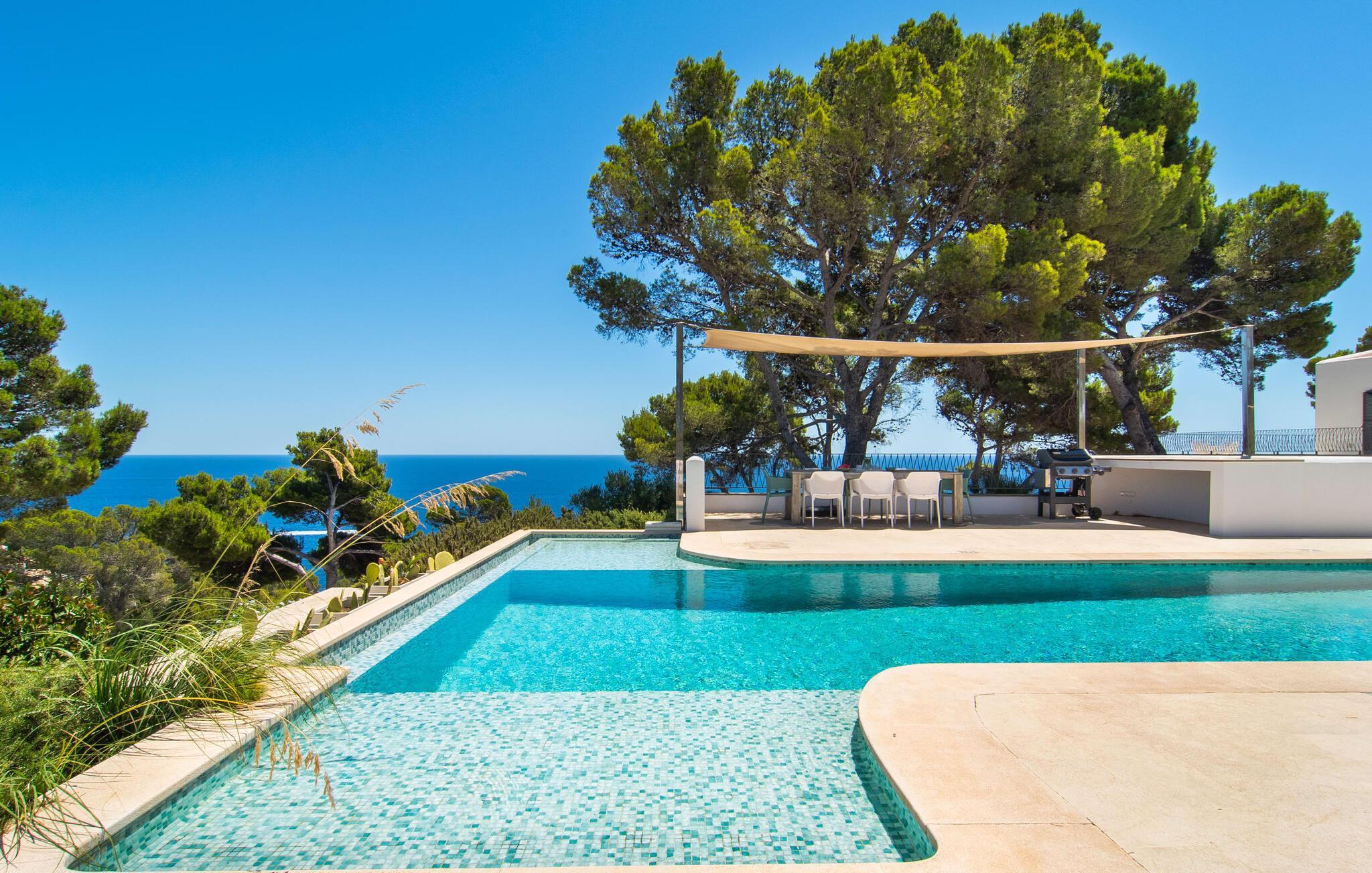 Die Meerblickvilla „Casablanca“ macht ihrem Namen alle Ehre, denn das architektonisch individuelle Ferienhaus ist eine strahlend weiße Erscheinung in unmittelbarer Nähe zum Meer. Aufgrund des Hanggrundstücks erwarten Sie viele attraktive Außenbereiche mit tollen Panoramen. Das Grün rund um die stilvolle Villa in seiner üppigen mediterranen Pracht sorgt für einen angenehmen Farbkontrast. Es erwartet Sie ein langer Infinity-Pool inklusive kinderfreundlichem Bereich. Die Poolterrasse verfügt über Sonnenliegen und Sonnenliegen. Es gibt auch einen tollen Essbereich mit einem Gasgrill. Doch auf anderen Terrassenebenen gibt es noch mehr zu entdecken: eine lässige Lounge im Halbschatten der Bäume, eine lauschige Sitzecke auf der runden Aussichtsplattform nebst Chill-Out-Strandkörben oder einer Hängematte mit Panoramablick und ein Dach der Extraklasse Terrasse mit Außenküche und zweitem Grill. Den Rest dieses luxuriösen Ferienhauses, das auch zur Langzeitmiete mit Home-Office-Option geeignet ist, entdecken Sie am besten selbst.