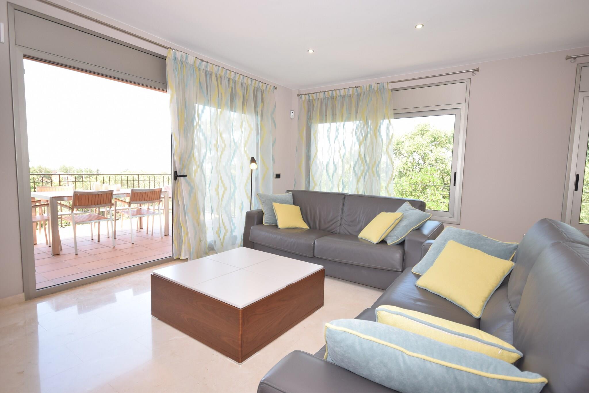 Entspannter Rückzugsort am Hang In den ruhigen Hügeln von Mas Nou gelegen, bietet dieses Apartment mit drei Schlafzimmern einen erholsamen Rückzugsort mit herrlichem Blick auf die grüne Landschaft der Costa Brava. Es ist für Familien oder kleine Gruppen konzipiert und verfügt über eine private Terrasse für Mahlzeiten im Freien, einen Gemeinschaftspool für gemütliche Nachmittage und Sonnenliegen, auf denen Sie unter der mediterranen Sonne entspannen können. Im Inneren finden Sie ein helles Wohnzimmer mit internationalem TV, eine voll ausgestattete Küche und zwei moderne Badezimmer für einen komfortablen Aufenthalt. Günstige Lage Von dieser erhöhten Lage aus sind Sie nur 4 km vom lebhaften Zentrum von Platja d'Aro entfernt, das für seine Boutiquen, Unterhaltungsmöglichkeiten und Sandstrände bekannt ist. Golfbegeisterte werden die nur 2,5 km entfernte Nähe zum Golfplatz d'Aro zu schätzen wissen. Die nahegelegenen Küstenstädte wie Sant Antoni de Calonge, S'Agaró und Sant Feliu de Guíxols mit ihren zahlreichen Strandpromenaden und kulturellen Sehenswürdigkeiten sind alle nur eine kurze Autofahrt entfernt. Supermärkte und andere wichtige Geschäfte sind nur 3,5 km entfernt. So haben Sie alles, was Sie brauchen, in unmittelbarer Nähe und können dennoch die Ruhe der Hügellandschaft genießen. Essen und lokale Spezialitäten Gourmetliebhaber können sich in nur wenigen Minuten Entfernung in einer großen Auswahl an Restaurants verwöhnen lassen - von frischen Meeresfrüchten am Meer bis hin zu traditioneller katalanischer Küche in den Dorfstraßen. Nach einem abendlichen Ausflug können Sie mit einem Glas Wein auf Ihre private Terrasse zurückkehren und den friedlichen Blick auf die Berge genießen.
