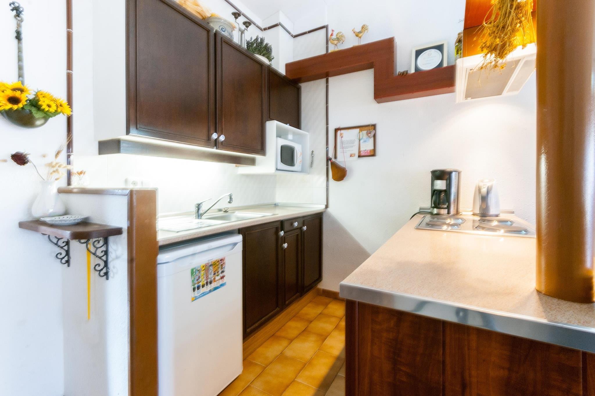 Parterre: (Wohnzimmer(TV(Flatscreen, Satellit, Deutsch Fernsehsender)), Wohnküche(Esstisch(4 Personen), Wasserkocher, Kochherd(elektrisch), Kaffeemaschine, Mikrowelle, Kühlschrank), Schlafzimmer(Französisches Bett(135 x 190 cm)), Schlafzimmer(Französisches Bett(150 x 190 cm)), Badezimmer(Dusche, Waschbecken, Toilette), Veranda(auf dem Gelände)(Esstisch(4 Personen))) Waschmaschine, Balkon oder Terrasse, Garten(alleinige Nutzung, umzäunt, nicht angelegt), Parkplatz, Pool(alleinige Nutzung, 8 x 4 m.)