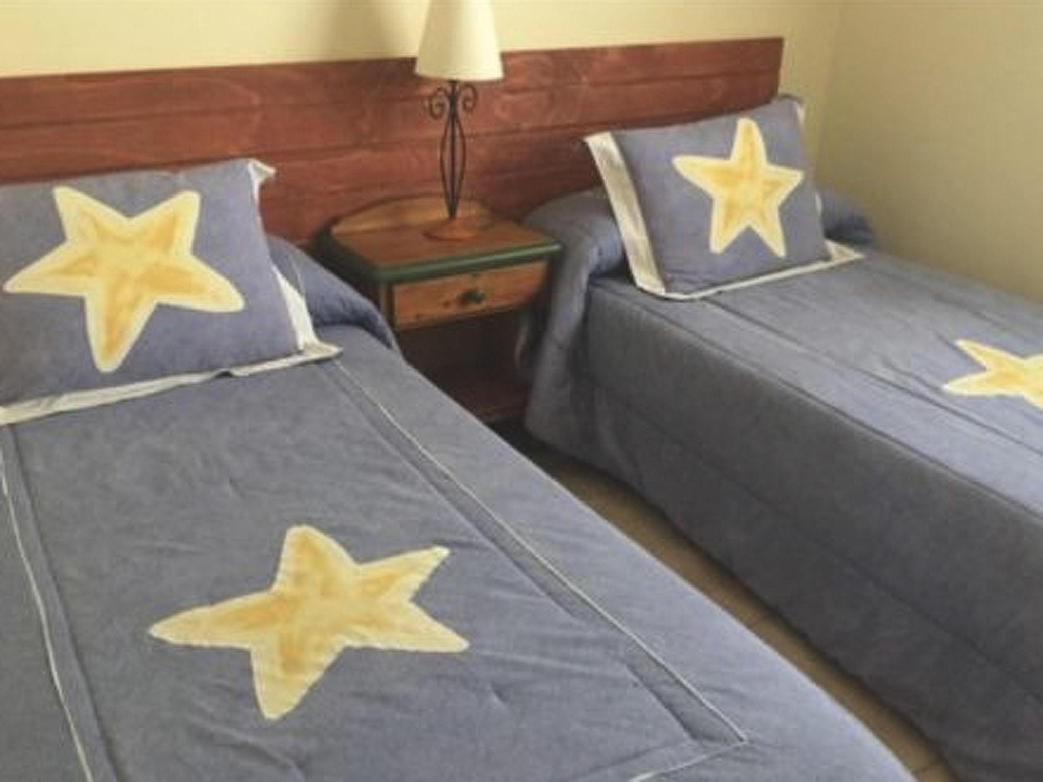 Die Villa verteilt sich über zwei Etagen und bietet bis zu sieben Personen bequem Platz. Im Erdgeschoss liegt das geräumige Wohn- und Esszimmer mit Zugang zur Terrasse, das mit einer großen Eckcouch, einem Couchtisch, einem Flachbildfernseher mit Sat.-TV und Kabel sowie einem Esstisch mit Stühlen eingerichtet ist. Die separate Küche ist mit Induktionsherd, Ofen, Kühl-Gefrierschrank, Mikrowelle, Toaster, Wasserkocher, Kaffeemachine und Spülmaschine ausgestattet. Angrenzend befindet sich ein weiterer Essbereich mit einem Esstisch und Stühlen. Das Badezimmer dieser Etage besteht aus einer Wanne, Bidet, Waschbecken und Toilette. Das Schlafzimmer verfügt über zwei Einzelbetten sowie einer Schlafcouch und einem Schreibtisch. Die anderen beiden Schlafzimmer, die ein Kingsize-Doppelbett bzw. zwei Einzelbetten und Kleiderschränke bieten, liegen auf der ersten Etage. Das Bad besteht aus einer Wanne, Waschbecken und Toilette. Außerdem ist WLAN-Internet verfügbar.