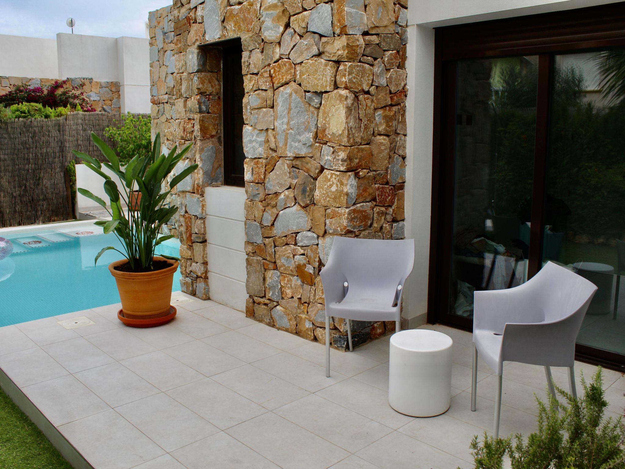 Neu gebaute Villa mit privatem Pool zur Miete in einem Wohngebiet. Das Ferienhaus befindet sich in einer ruhigen Wohngegend LA CUERDA CABO ROIG, in ORIHUELA COSTA 1,5 km vom Strand und 500m vom Einkaufszentrum, Einkaufszentrum LA ZENIA 3km entfernt, TORREVIEJA 8km entfernt, Golfclubs 2km entfernt, Flughafen 45km entfernt.