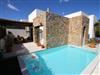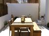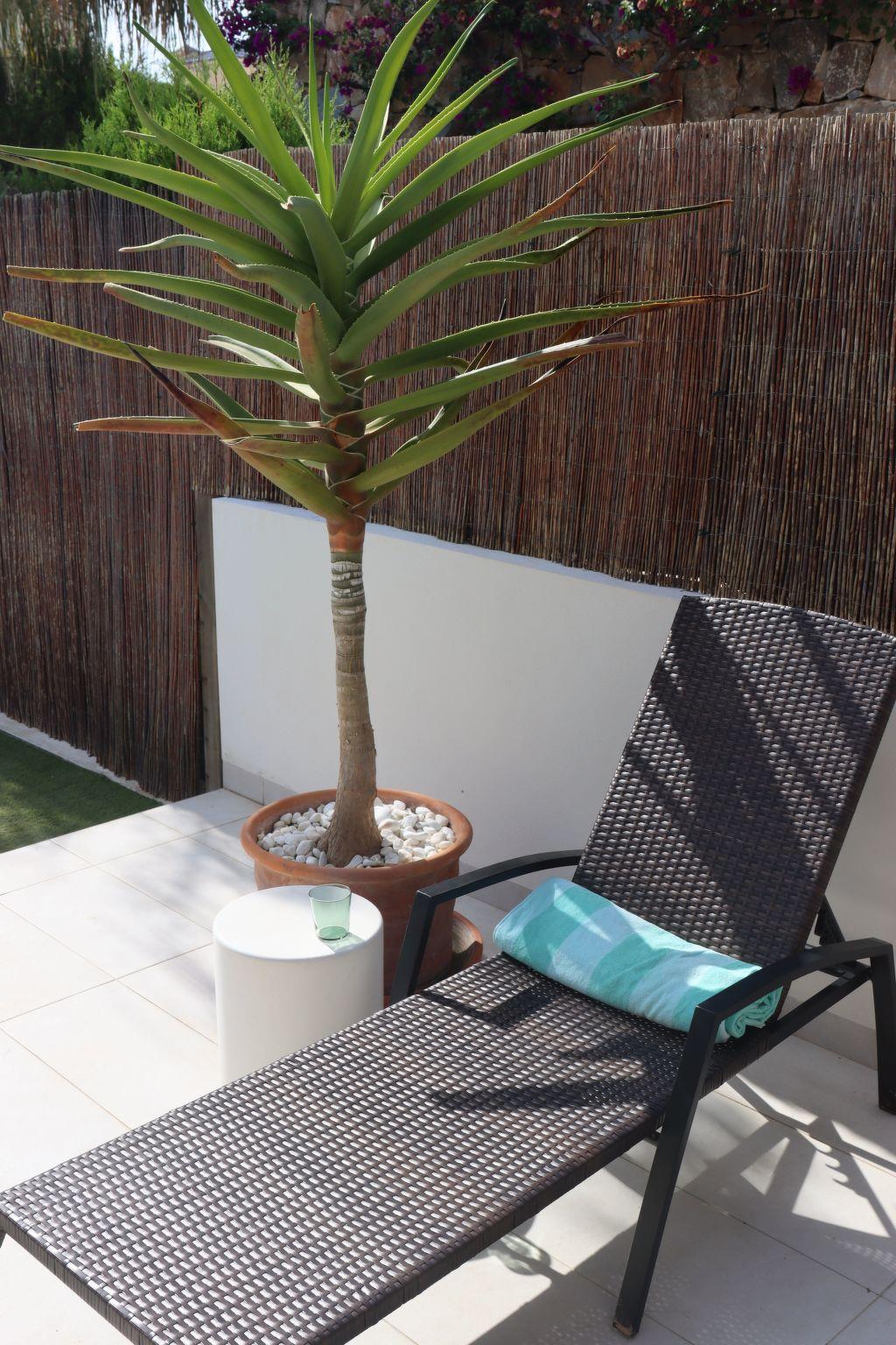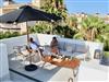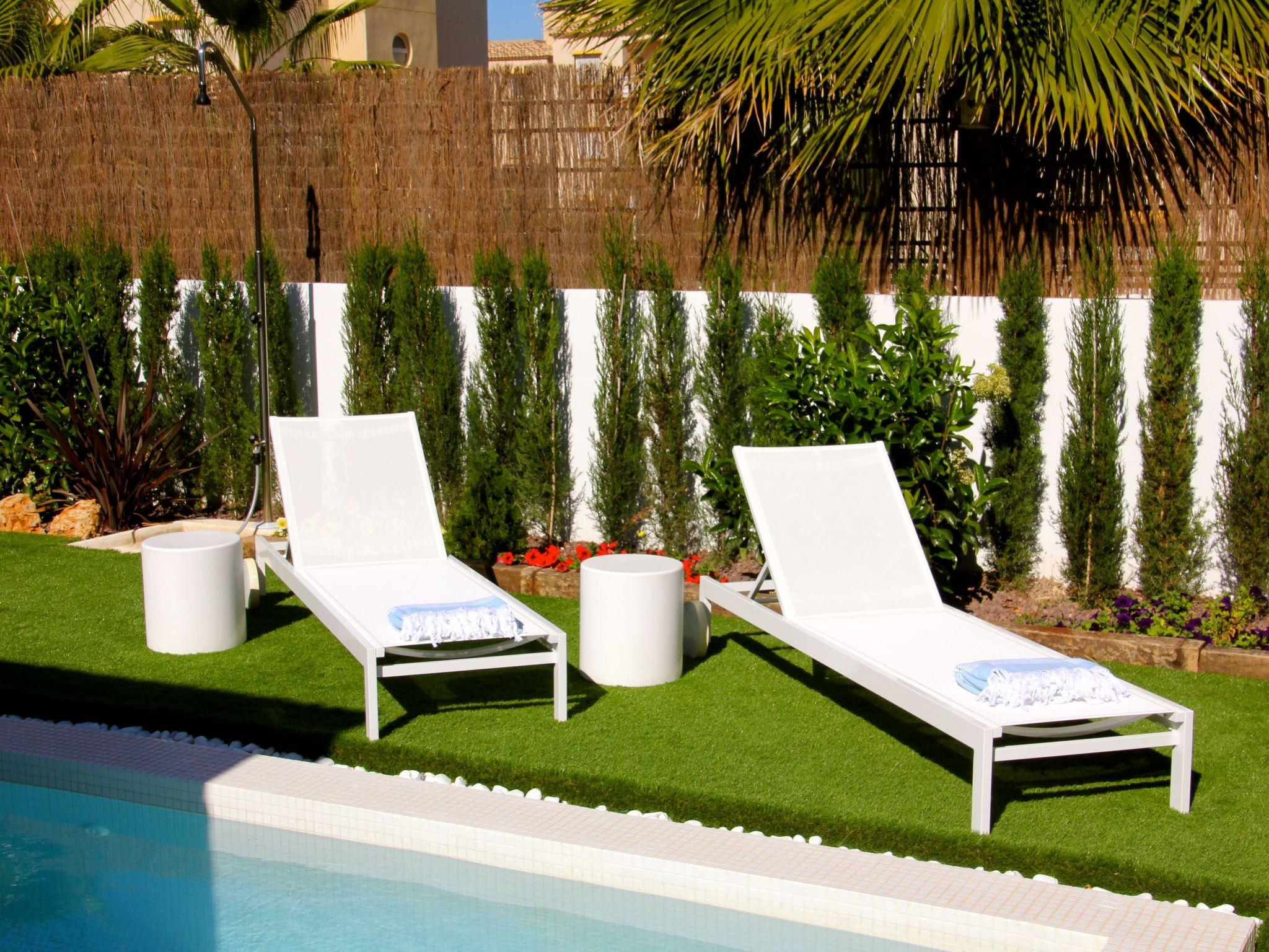 Die beiden Dachterrassen sind mit 4 Liegestühlen und einer Sitzecke mit Platz für 6 Personen ausgestattet. Eine kleine untere Terrasse ist mit einem Tisch mit 4 Stühlen ausgestattet. Die Hauptterrasse ist mit einem Eichentisch für 8 Personen mit Markise mit Blick auf den Pool und die Außendusche ausgestattet
