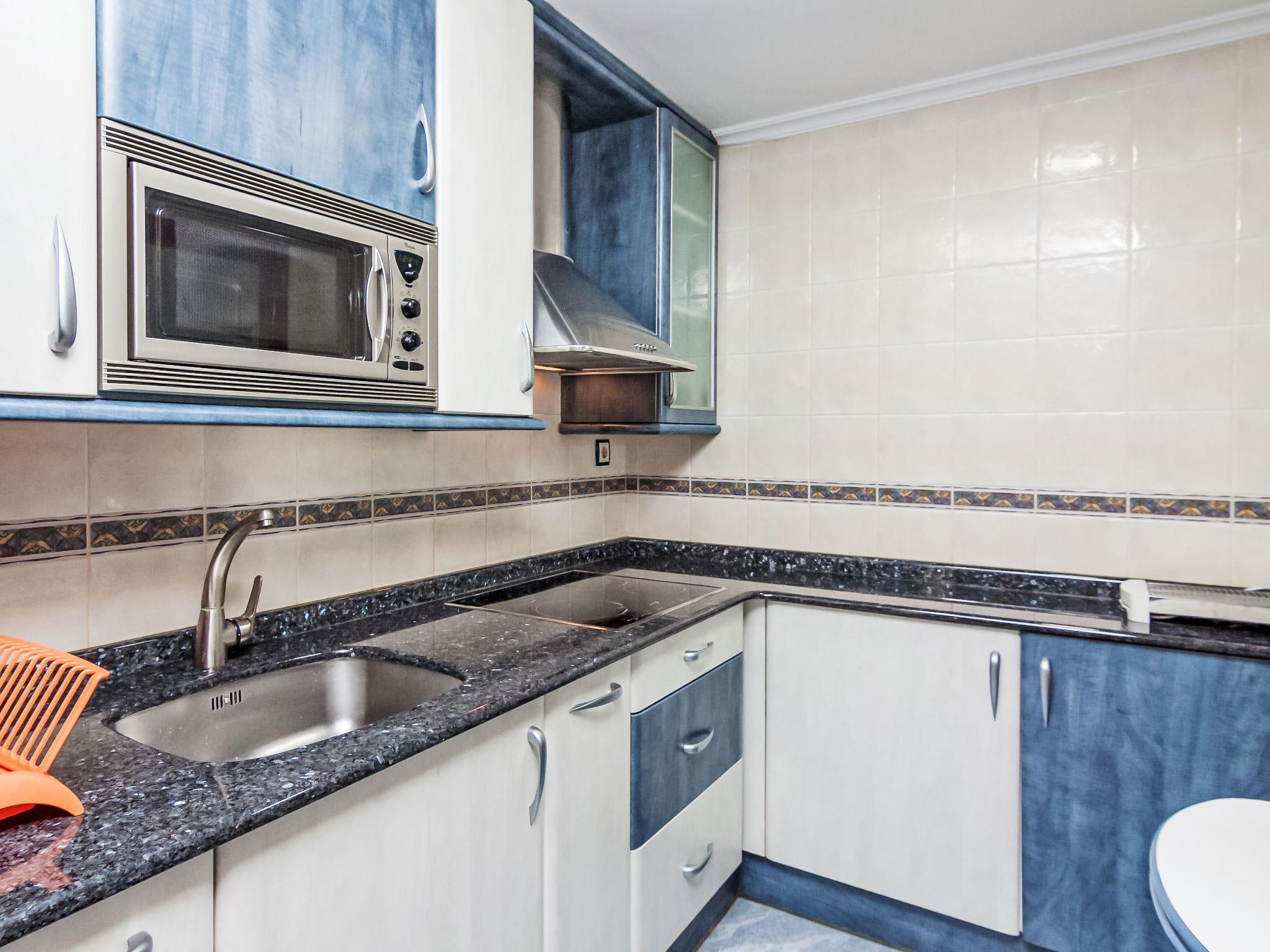 3-Zimmer-Wohnung 70 m2 im 3. Stock. Komfortabel eingerichtet: Wohn-/Esszimmer mit 1 Diwanbett (135 cm), Digital-TV. 1 Zimmer mit 2 Betten (90 cm, Länge 180 cm). 1 Zimmer mit 1 franz. Bett (135 cm). Küche (2 Glaskeramikplatten, 2 Induktionskochplatten, Mikrowelle, Tiefkühler). Bad/Bidet/WC. Heizung. Sicht auf das Meer und die Ortschaft. Zur Verfügung: Waschmaschine, Babybett. Geeignet für Familien. G-12207 // Reg. Nr.: ESFCTU000039002000213833000000000000000000000G-122074