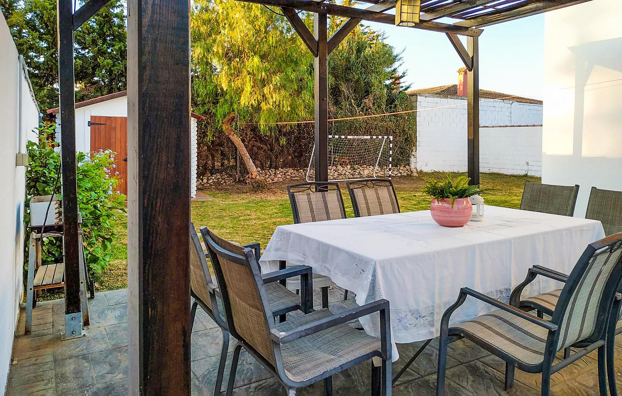 Verlegen Sie die Mahlzeiten ins Freie und verbringen Sie wunderbare Stunden auf der Terrasse. An heißen Tagen können Sie sihc im Aufstellpool erfrischen.