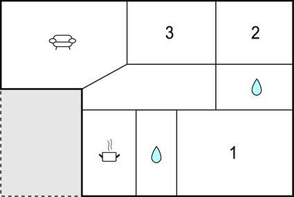 Badezimmer 8m2 (nr. 2) - WC. Warmes und kaltes Wasser. Dusche