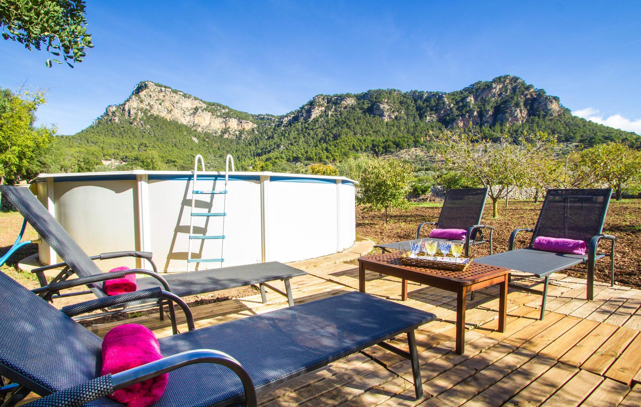 Wenn Frédéric Chopin noch am Leben wäre und einige Zeit auf diesem verträumten Anwesen verbringen würde, das seinen Namen trägt, würden ihm wahrscheinlich die ein oder andere Sonaten einfallen – unberührt wie der Blick auf die bewaldeten Hänge des Tramuntana-Gebirges, verspielt wie der Garten, der auch etwas zu bieten hat Den kleinen Gästen bieten sich zahlreiche Möglichkeiten für entspannte Freizeitbeschäftigungen und so anmutig wie das Natursteinhaus mitten in der Gartenoase, die Ihnen nachts Schutz bietet. Tage hingegen kann man bedenkenlos draußen an der frischen Luft verbringen; Der Einstieg in das runde Kunststoffbecken ist bequem und lädt zu einem erfrischenden Bad ein. Außerdem gibt es im Garten eine Pergola, neben der Sie den hauseigenen Grill aufstellen können, um abends herzhafte kulinarische Köstlichkeiten zuzubereiten. Darüber hinaus können Sie durch den Obstgarten spazieren – der Außenbereich des Anwesens ist so angelegt, dass Sie sich wie in der Nähe des Waldes fühlen und gleichzeitig genügend Sonne genießen können, um viel wertvolles Vitamin D zu produzieren .