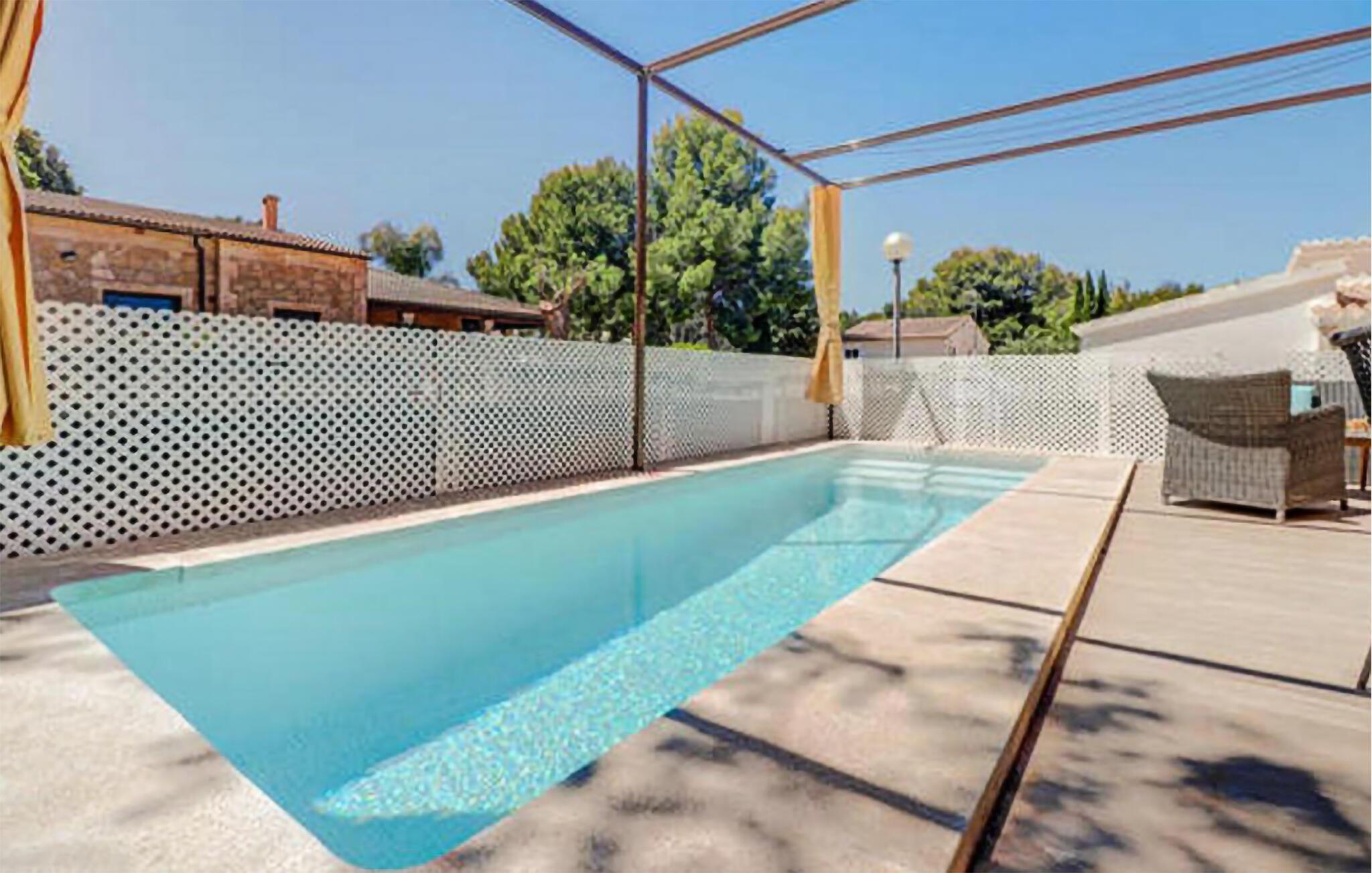 Der private Pool und die weitläufige Terrasse laden dazu ein, sonnige Tage im Freien zu verbringen und Ihren Kindern beim Plantschen im Garten zuzusehen. Nach einem Tag voller Erlebnisse können Sie hier die Abende bei einem Glas mallorquinischen Wein auf der Terrasse ausklingen lassen
