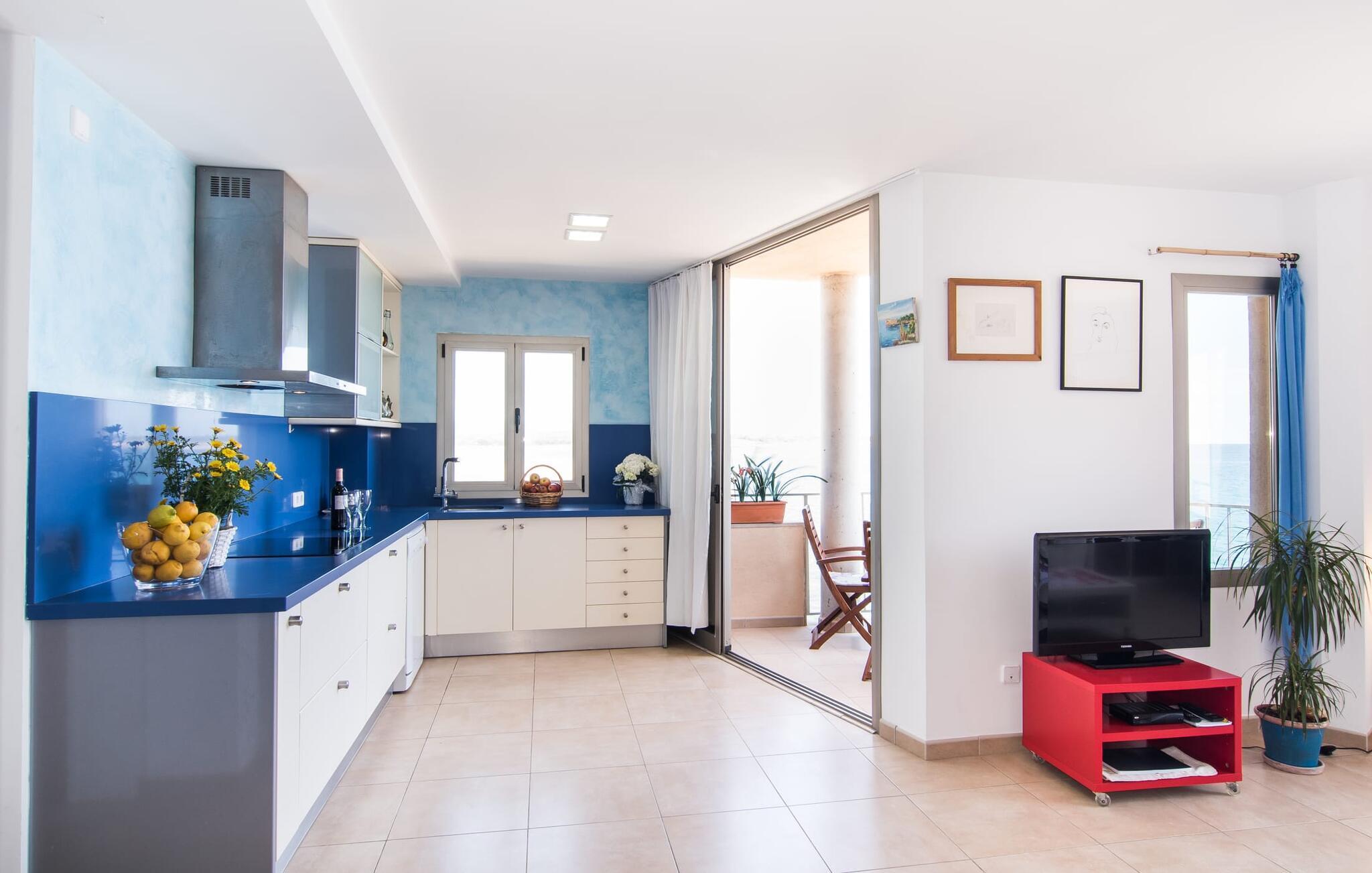 Das moderne Ferienhaus „Cielo Mar“ überzeugt mit angenehm maritimem Charme und einladender Fröhlichkeit, die sich besonders für eine Familie mit zwei Kindern eignet. Die Belegung ist jedoch völlig variabel, da Sie im Gästezimmer im Obergeschoss ein zusätzliches Bett reservieren können, das eine kostengünstige Möglichkeit zur Erweiterung Ihrer Gruppe darstellt, oder auch zu einem reduzierten Preis von einem Paar reserviert werden kann. Und das lässt sich auch das ganze Jahr über genießen, da die Unterkunft in ihrem zentralen Raum, nämlich dem wunderbar offenen Wohn-, Ess- und Küchenbereich, über eine Warm-/Kalt-Klimaanlage verfügt. Das bequeme Sofa vor dem LCD-Fernseher eignet sich hervorragend für einen entspannten Filmabend an kühleren Abenden. Weiß und Ultramarin sind die dominierenden Farben des hell eingerichteten und dekorierten Ess- und Küchenbereichs; Letzteres ist übrigens sehr praktisch, da es neben anderen Geräten auch mit einer Spülmaschine ausgestattet ist. Mit der Waschmaschine können Sie auch Ihre Urlaubsgarderobe schön sauber halten. Nach dem Kochen mit Blick auf das Meer können Sie auf den Balkon gehen, wo mindestens vier Personen Platz nehmen und gemeinsam ihre Mahlzeiten genießen können. Die Schlafzimmer befinden sich am Ende des Flurs, sodass Sie bei geöffnetem Fenster gut schlafen und das Meeresrauschen hören können – für manche Menschen ist es sogar beruhigender, als Schäfchen zu zählen. Der Stil der Wohnung ist durchweg fröhlich und hell. In so vielen kleinen Details spürt man sogar die Liebe, mit der dieser Ort für seine Gäste hergerichtet wurde, damit Sie sich rundum wohlfühlen können.