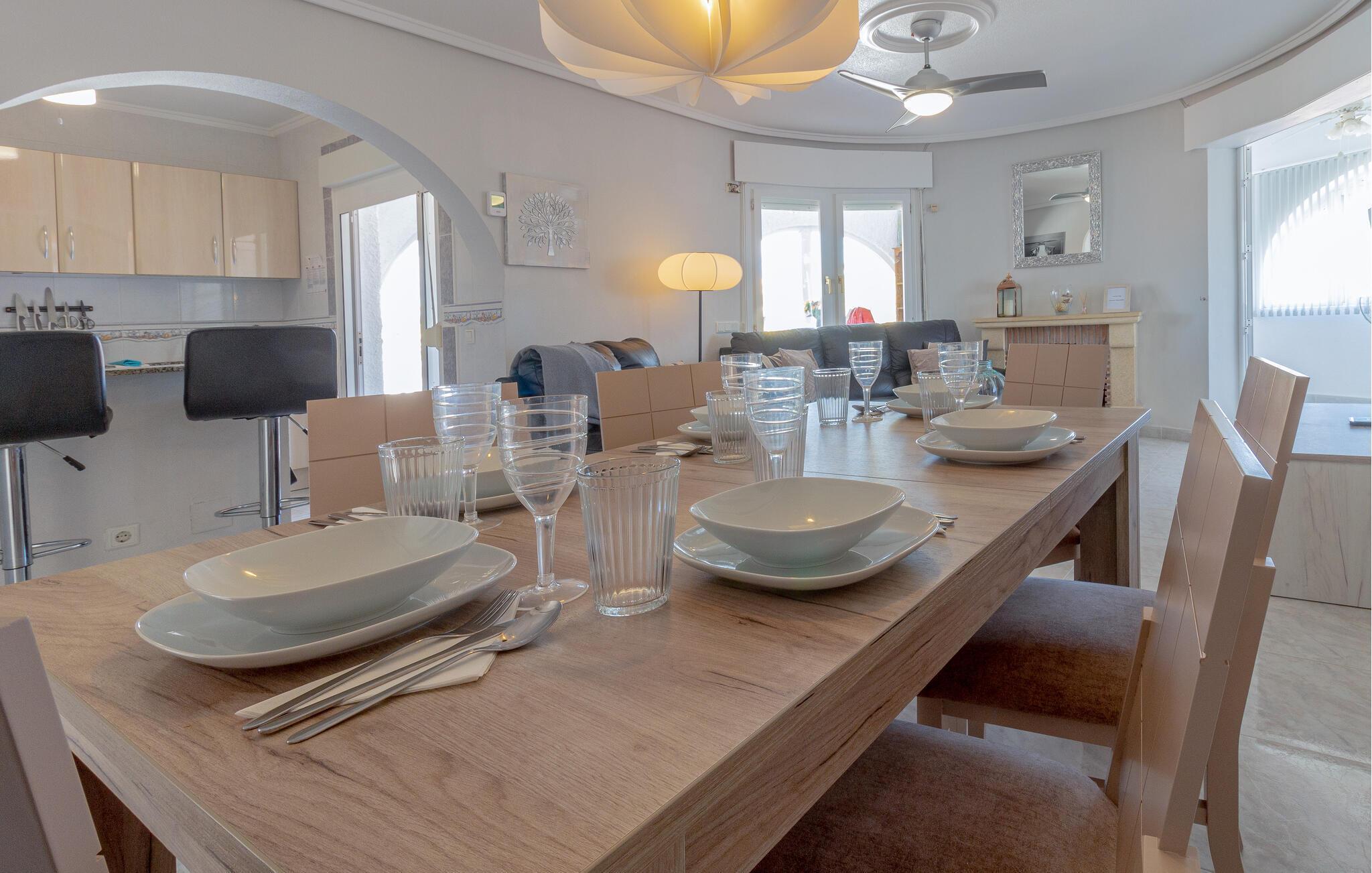 Nehmen Sie sich eine Auszeit vom Alltag und entspannen Sie sich hier gemeinsam mit Ihrer Familie. Das Haus ist schön gestaltet mit geschmackvollem Interieur und Kunst an den Wänden. Sie werden sich hier sofort wohlfühlen. Außerdem ist die Unterkunft ideal für einen komfortablen Sporturlaub, wenn Ihr Herz für Golf schlägt. Nach dem Golfspiel des Tages können Sie es sich auf einer der Terrassen bei kühlen Getränken gemütlich machen oder sich im Pool erfrischen. Es gibt einen Carport für 1 Auto.