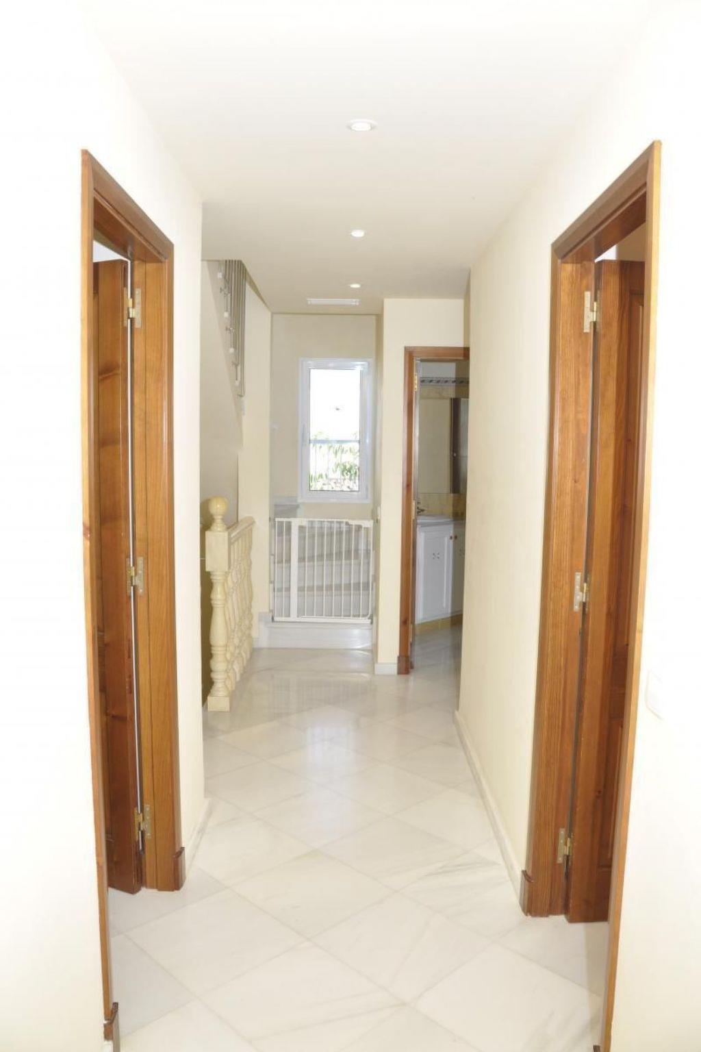 Die Verteilung des Hauses ist wie folgt: Betreten auf der rechten Seite finden wir die Küche-Esszimmer, groß und geräumig mit viel Licht und gut ausgestattet. Wenn man die Küche auf der linken Seite verlässt, befindet sich das Wohnzimmer mit dem Fernseher und genügend Platz, um einen angenehmen Abend zu verbringen. Der zentrale Korridor gibt Zugang zu den 4 Schlafzimmern, 3 davon sind Doppelzimmer mit Einzelbetten und das letzte ist das Hauptschlafzimmer. Eines der Bäder hat eine Dusche, das andere ist en-suite und gehört zum Hauptschlafzimmer. Über die Treppe gelangen wir schließlich in den ersten Stock, wo wir einen Entspannungsraum mit Zugang zu einer Außenterrasse finden, von der aus wir den Swimmingpool und den Garten sehen können.