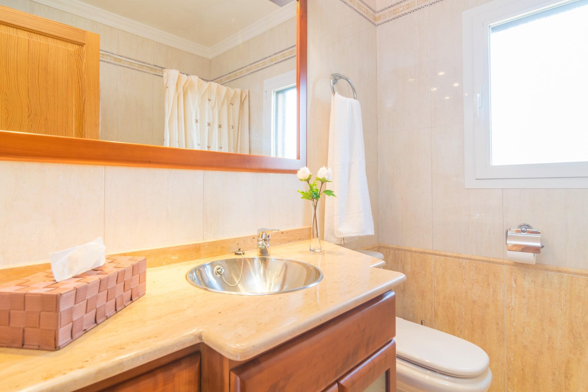 Dieses entzückende Reihenhaus über 3 Stockwerke verfügt über 2 Terrassen, eine an der Vorderseite des Hauses und eine andere ein wenig versteckt gelegene Terrasse, welche beide den Platz und das Ambiente bieten, um hier ausgiebig zu frühstücken, zu Mittag zu essen, sich in eine spannende Lektüre zu vertiefen oder gegen Abend hin sich ein herrliches Abendessen. Auf Grund der Nähe des Strands, sollten Sie vor allem viel Zeit am Meer und für ein ausgedehntes Sonnenbad am Strand einplanen. Nach dem Bad im Meer stehen Ihnen im Außenbereich Freiluftduschen zu Ihrer Verfügung. Das Grundstück ist eingezäunt. Im Inneren des Hauses erwartet Sie im Erdgeschoss ein schöner Wohn- und Essbereich, mit Fernsehgerät und Klimaanlage. Anschließend daran befindet sich die Küche, welche mit einem Gasherd, Ofen, Mikrowelle und einem Tisch mit Sesseln ausgestattet ist, kurz alles was man in einer Küche so braucht. Auf dieser Etage befindet sich zudem ein WC. Im ersten Stockwerk befindet sich ein Badezimmer mit Dusche, sowie drei der insgesamt vier Schlafzimmer. Zwei der Schlafzimmer sind mit einer Klimaanlage, sowie einem Doppelbett bzw. zwei Einzelbetten ausgestattet. Das andere Schlafzimmer verfügt ebenfalls über zwei separate Betten, sowie über einen Ventilator. Die oberste Etage beherbergt das vierte und letzte Schlafzimmer, welches mit einem Doppelbett, Badezimmer mit Badewanne en-suite, Zugang zu einer der Terrassen, sowie einen Ventilator verfügt. Alle Schlafräume bieten ausreichend Platz für ein Kinderbett und einen Hochstuhl. Die Waschküche befindet sich in einem Extraraum und ist mit einer Waschmaschine, Bügelbrett, sowie Bügeleisen ausgestattet. In der Colonia de Sant Jordi werden Sie all die Dienst- und Serviceleistungen finden, welche für einen unbeschwerten Urlaub notwendig sind. Bars, Restaurants, Supermärkte und vieles mehr. Von hier aus haben Sie die Möglichkeit verschiedenste Sandstrände in nächster Nähe zu erleben, so wie den traumhaften Strand Marqués oder den unvergleichlichen Strand Es Trenc. Nutzen Sie eines der Angebote für eine Bootsfahrt nach Cabrera oder lernen Sie die Salzseen kennen. Auch einen nächtlichen Besuch des Hafens sollten Sie sich nicht entgehen lassen, erwarten Sie dort ein traumhaftes Ambiente für einen Spaziergang und ein Abendessen unter Sternen. Eventuelle Nebenkosten müssen beim Anbieter nachgefragt werden. Haustiere sind verboten. Partys oder ähnliche Veranstaltungen sind nicht gestattet. Entfernungen Strand: 0.300 km - Es Port Flughafen: 45.6 km - Son Sant Joan Golfplatz: 32.9 km - Golf Son Antem Ortsmitte: 0.001 km - Colònia de Sant Jordi Bahnhof: 53.8 km - Palma Bushaltestelle: 0.210 km - Colònia de Sant Jordi Fähre: 54.4 km - Port de Palma Krankenhaus: 41.6 km - Hospital de Manacor Touristen Lizenz: ETVPL/12841Einheitsregister: ESFCTU00000700800103026500000000000000000ETVPL/128416Auf den Balearen gibt es eine Touristensteuer, die Ecotasa genannt wird. Diese Steuer muss vom Gast bezahlt werden. Der zu zahlende Betrag beträgt zwischen 0.55EURO pro Nacht und Gast in der Nebensaison und 2.2EURO pro Nacht und Gast in der Hochsaison. Ab dem 9. Tag reduziert sich die Steuer um die Hälfte. Personen unter 16 Jahren sind davon ausgenommen