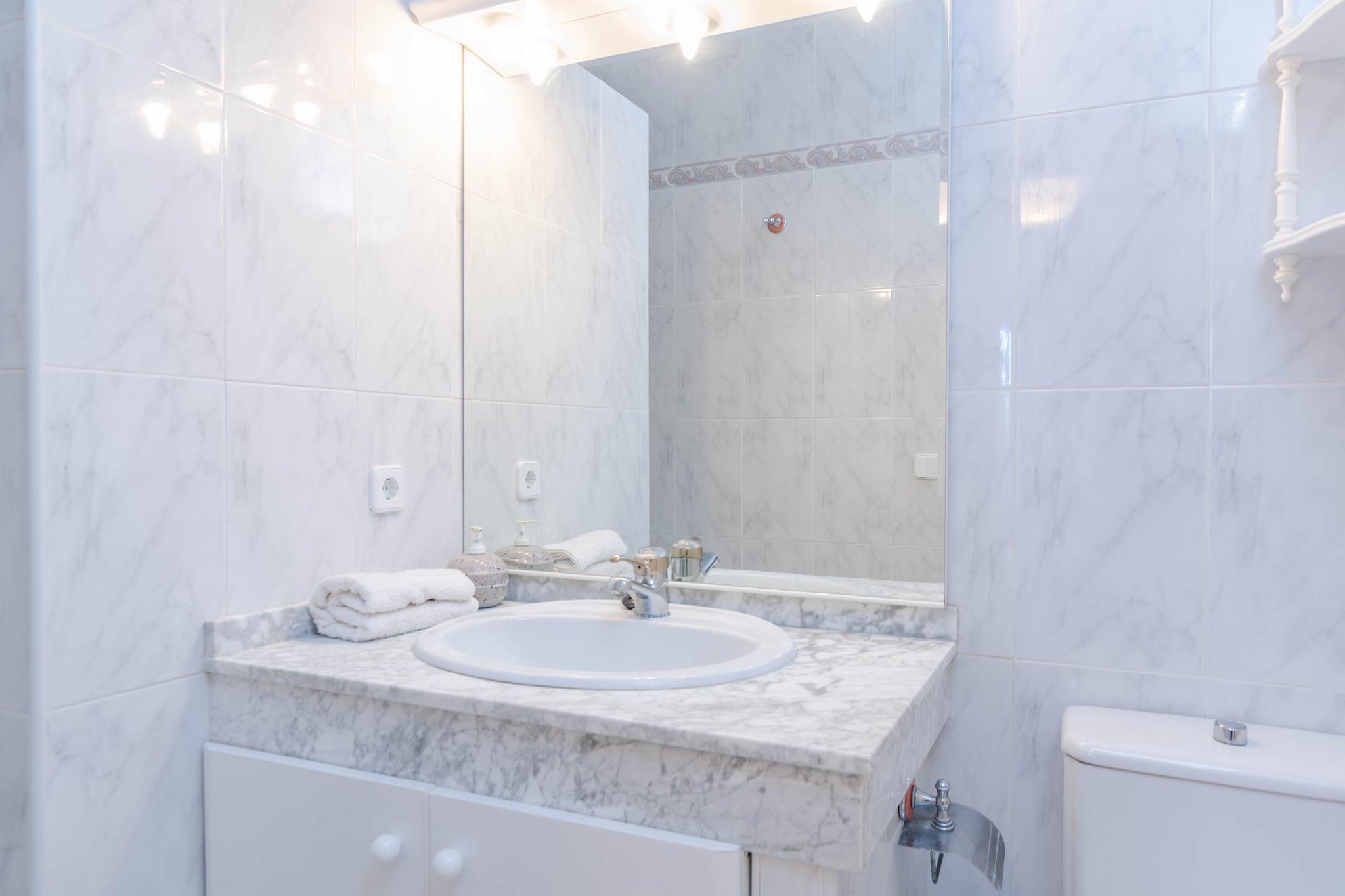 Dieses wunderbare Haus im mediterranen Stil verfügt über einen großen Salzpool von 8x3m und 0,4 bis 1,8m Tiefe, der zu einem erfrischenden Bad einlädt. Die Veranda mit Grill ist ideal für Familienmahlzeiten oder einen Aperitif, während sich der Rest der Familie auf den Liegestühlen sonnt. Die Terrasse wird zu einem Ort der Entspannung im Freien, wo Sie angenehme Momente verbringen können, z.B. beim Lesen eines Buches. Zu Ihrer Unterhaltung gibt es eine Tischtennisplatte. Das Grundstück ist eingezäunt und es gibt direkte Nachbarn. Das zweistöckige Haus besteht aus einem Wohnzimmer mit Satellitenfernsehen, das durch einen sehr traditionellen mallorquinischen Bogen von einem zweiten Wohn-Esszimmer getrennt ist. Die Küche mit Gasherd und elektrischem Backofen hat auch einen Tisch für Ihr Frühstück. In der Waschküche gibt es eine Waschmaschine, ein Bügeleisen und ein Bügelbrett. Ein Schlafzimmer mit Doppelbett und ein Badezimmer mit Dusche vervollständigen dieses Erdgeschoss. Im Obergeschoss befinden sich ein Badezimmer mit Badewanne und 4 weitere Schlafzimmer, zwei davon mit einem Doppelbett, eines mit einem Einzelbett und eines mit zwei Einzelbetten. Für ein Baby stellen wir Ihnen auf Wunsch ein Kinderbett und einen Hochstuhl zur Verfügung. Vier Ventilatoren, Klimaanlage in den 4 Schlafzimmern und bis zu sieben Heizkörper vervollständigen die Ausstattung. Die Umgebung dieses Hauses ist sehr ruhig, da das Dorf Colònia de Sant Pere nicht sehr touristisch ist. Diese Immobilie befindet sich in einer kleinen Urbanisation in der Nähe des Strandes und des Club Nautico des Dorfes. In der Umgebung (ca. 4 km entfernt) finden Sie wunderschöne Buchten wie die Cala Na Clara, die sich durch ihr kristallklares Wasser und ihre Ruhe auszeichnet. Sie können auch spazieren gehen oder eine Bootstour machen, da es in der Umgebung Orte gibt, die diese Dienstleistungen anbieten. Wenn Sie einen Strand mit feinem weißen Sand suchen, finden Sie nur 14 Autominuten entfernt Son Serra de Marina, der sich ebenfalls durch sein kristallklares Wasser und seinen breiten Strand auszeichnet. In diesem Strandbereich gibt es ein Restaurant, das frischen Fisch des Tages serviert. Wenn Sie einen kulturellen Besuch bevorzugen, können Sie in nur 7 Autominuten das Dorf Betlem erreichen, wo Sie die Einsiedelei besuchen können, und jeden Mittwoch findet in Artá ein Markt statt, wo es auch Supermärkte gibt. Eventuelle Nebenkosten müssen beim Anbieter nachgefragt werden. Haustiere sind verboten. Partys oder ähnliche Veranstaltungen sind nicht gestattet. Entfernungen Strand: 0.8 km - Colonia de San Pere Flughafen: 65.7 km - Son Sant Joan Golfplatz: 23.0 km - Golf Reserva Rotana Ortsmitte: 0.5 km - Colonia de San Pere Bahnhof: 23.6 km - Estació de Manacor Bushaltestelle: 0.8 km - Plaça Bassa d'En Fasol, Colonia de San Pere Fähre: 31.7 km - Port d'Alcúdia Krankenhaus: 23.6 km - Hospital de Manacor Touristen Lizenz: ETV/8934Einheitsregister: ESFCTU00000704000131535500000000000000000000ETV/89346Auf den Balearen gibt es eine Touristensteuer, die Ecotasa genannt wird. Diese Steuer muss vom Gast bezahlt werden. Der zu zahlende Betrag beträgt zwischen 0.55EURO pro Nacht und Gast in der Nebensaison und 2.2EURO pro Nacht und Gast in der Hochsaison. Ab dem 9. Tag reduziert sich die Steuer um die Hälfte. Personen unter 16 Jahren sind davon ausgenommen Klimaanlage (April - Dezember): 15 EUR/Nacht (optional)