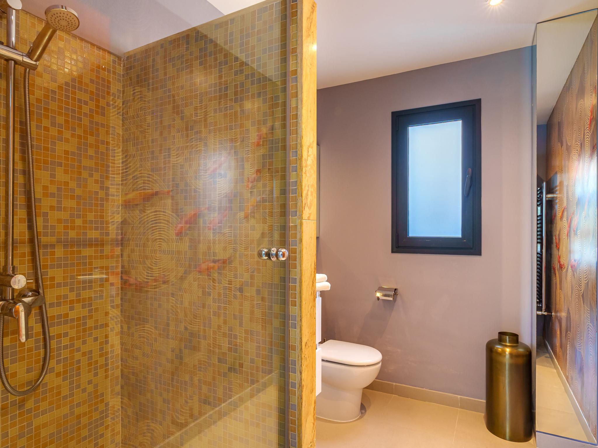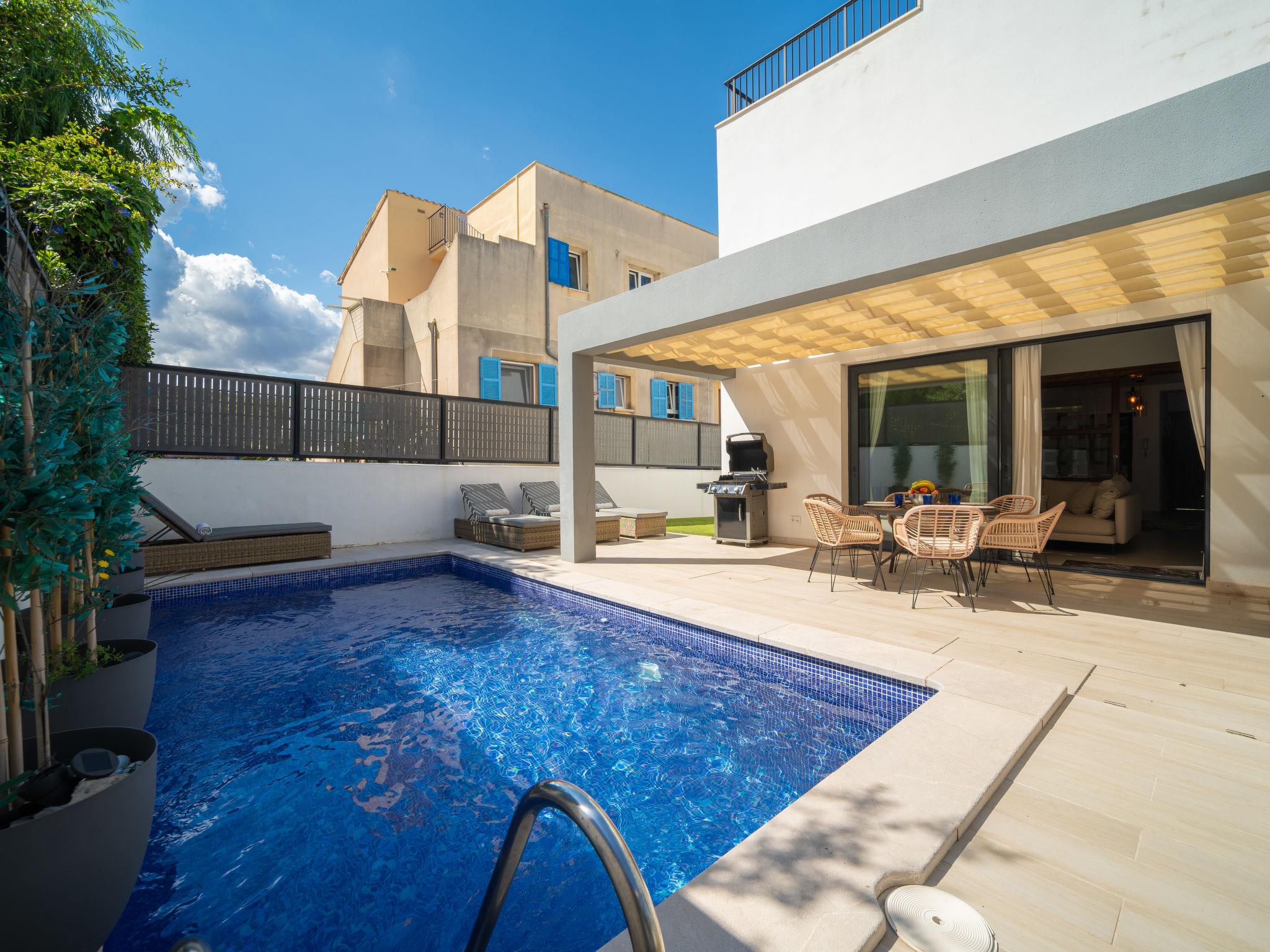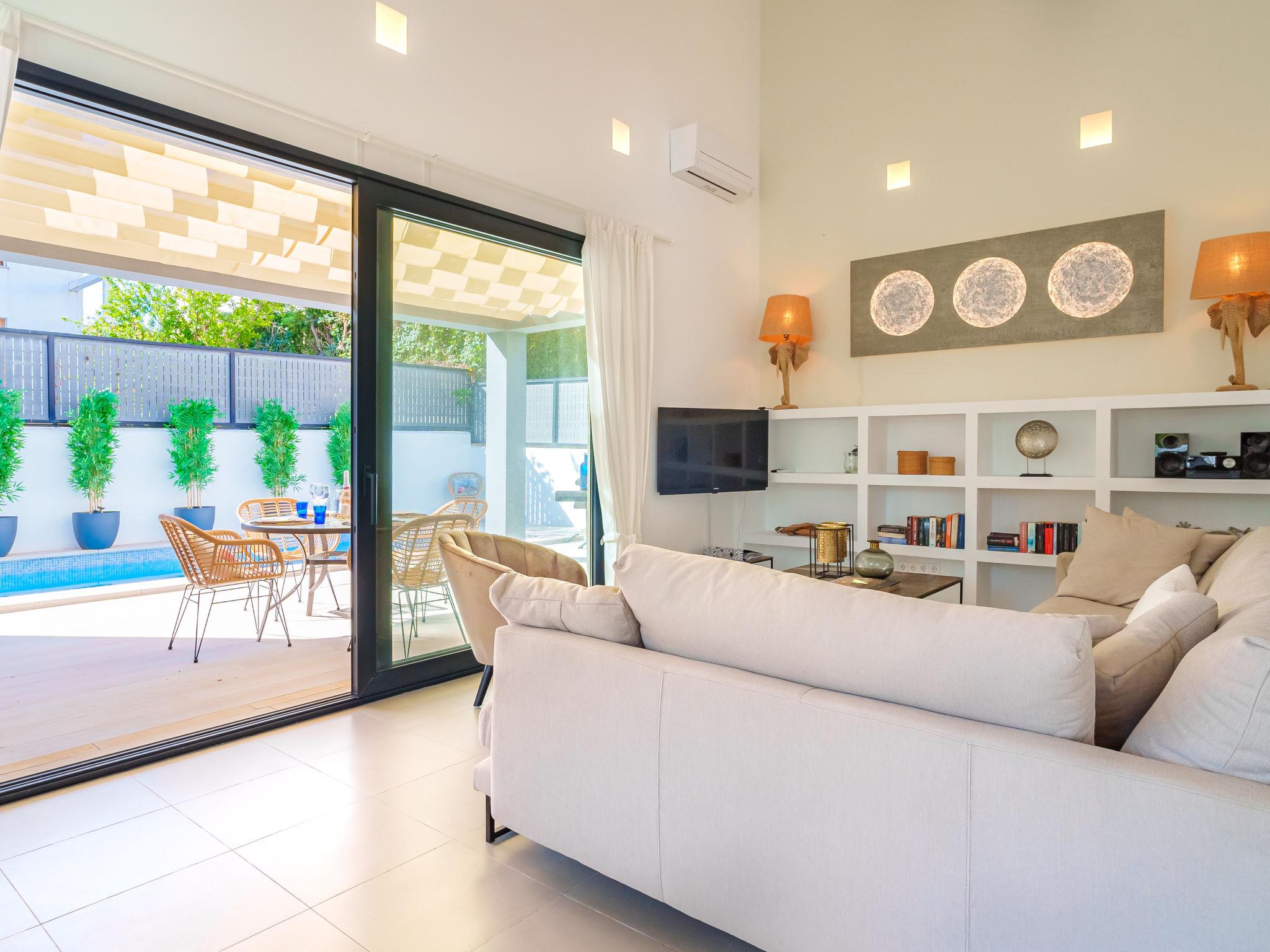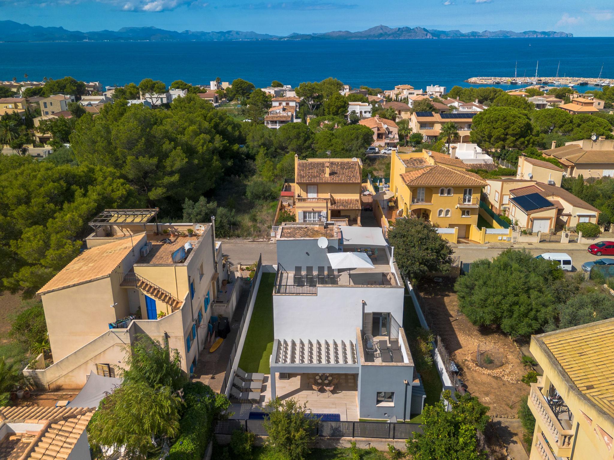 Colonia de Sant Pere 13 km von Artà: Diese außergewöhnliche moderne Ferienoase befindet sich in dem idyllischen Fischerort Colonia St. Pere/Mont Farrutx. Hier, in diesem wundervollen Nord-Osten der Insel Mallorcas, möchten wir Ihnen, liebe Gäste, einen unvergesslichen Urlaub ermöglichen. Genießen Sie Ihre kostbare Zeit zu zweit, mit Ihrer Familie oder mit Freunden in der Can Aruna. Das komplett renovierte moderne Ferienhaus, gelegen in einer Seitenstraße der Siedlung Farrutx, bietet seinen Gästen jegliche Annehmlichkeiten für einen entspannten Urlaub. Ein nach Hause kommen, ein sich wohlfühlen, es sich gut gehen lassen, unter dieser Maxime, stellt sich Ihre Urlaubs-Genuss-Zeit, Ihre persönliche Quality Time, mit der Ankunft in der Can Aruna, ein. Lassen Sie sich auf diesen einmaligen Ausblick von der Dachterrasse, der sich über den Ort, den Mont Farrutx, der Bucht von Alcudia bis hin zum Cap Formentor erstreckt, ein. Genießen Sie Ihren Sundowner auf der Dachterrasse oder verweilen Sie auf der überdachten Loungeterrasse. Nach dem Frühstück auf der geschützten Poolterrasse, lädt der Pool zur ersten Erfrischung des Tages ein. Auch die großzügig geschnittenen Terrassen an den Schlafzimmern in der ersten Etage bieten sich als privaten Rückzugsort einfach wunderbar an. Sehr grosse, moderne, luxuriöse Villa "Can Aruna", auf 2 Stockwerken, renoviert im Jahre 2023. Im Ort, 500 m vom Zentrum von Colonia Sant Pere, ruhige, sonnige Lage im Villenviertel, 2 km vom Waldrand, 500 m vom Meer, 800 m vom Strand. Zur Alleinbenutzung: schöner Garten mit Pflanzen, Hof, Schwimmbad eckig (6 x 4 m, 120 - 150 cm tief, saisonale Verfügbarkeit: 01.Jan. - 31.Dez.). Aussendusche, Sitzplatz, Laube, Pergola, Gartenmöbel, Grill, Poolpflege durch den Besitzer/Gärtner. Im Hause: Internetzugang, Wireless LAN, Klimaanlage, Alarmanlage, Waschmaschine. Parkplatz beim Haus auf dem Grundstück. Einkaufsgeschäft 500 m, Lebensmittelgeschäft 400 m, Supermarkt 700 m, Restaurant 550 m, Bar 550 m, Bäckerei 600 m, Café 550 m, Biergarten 600 m, Zentrum zu Fuss in 5 Minuten erreichbar, Bushaltestelle "Sa Colonia" 500 m, Sandstrand "FFK Strand Sa Canova" 2.5 km, Steinstrand "Caló des Parral" 600 m, Felsstrand "Colonia Sant Pere" 500 m, Tauchzentrum 700 m. Sporthafen 550 m, Golfplatz (18 Loch) 17 km, Surfschule 600 m, Segelschule, Wanderwege ab Haus 2 km, Radweg 700 m. Nahe gelegene Sehenswürdigkeiten: Artá, Betlem, Can Picafort, Alcúdia, Cala Ratjada, Manacor. Wandergebiete: Ermita de Betlem 3 km, Finca Son Real 10 km, Albufera de Alcúdia 17 km. Bitte beachten: Fahrzeug empfohlen. Geeignet für Senioren. Objekt geeignet für 6 Erwachsene. Der Besitzer akzeptiert keine Gruppen. Der Besitzer akzeptiert keine Jugendgruppen. Flugplatz 78 km vom Haus.