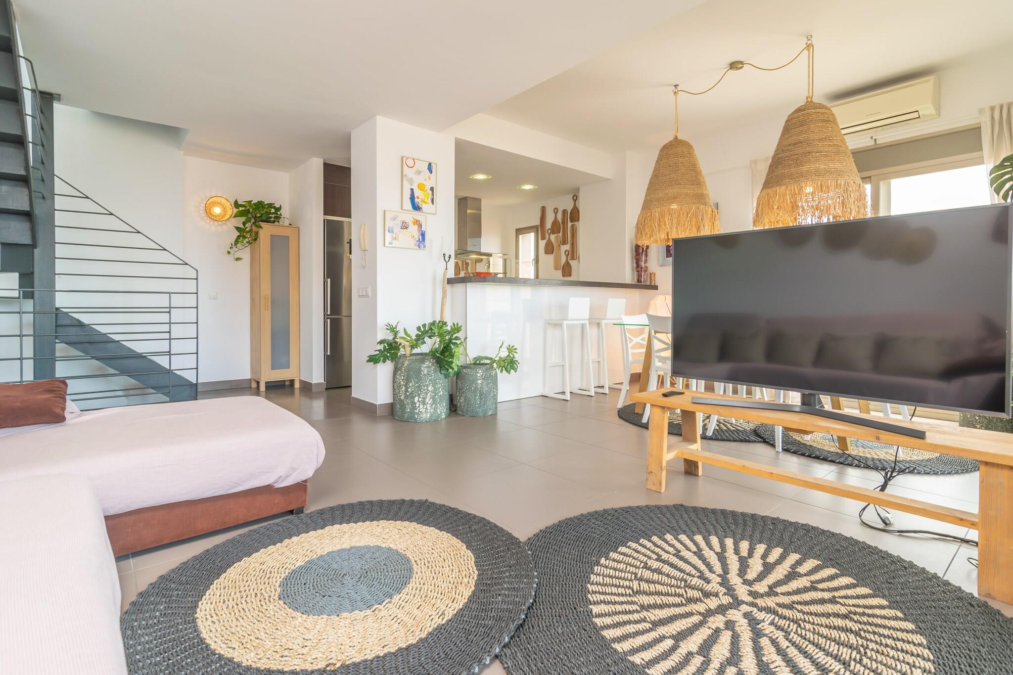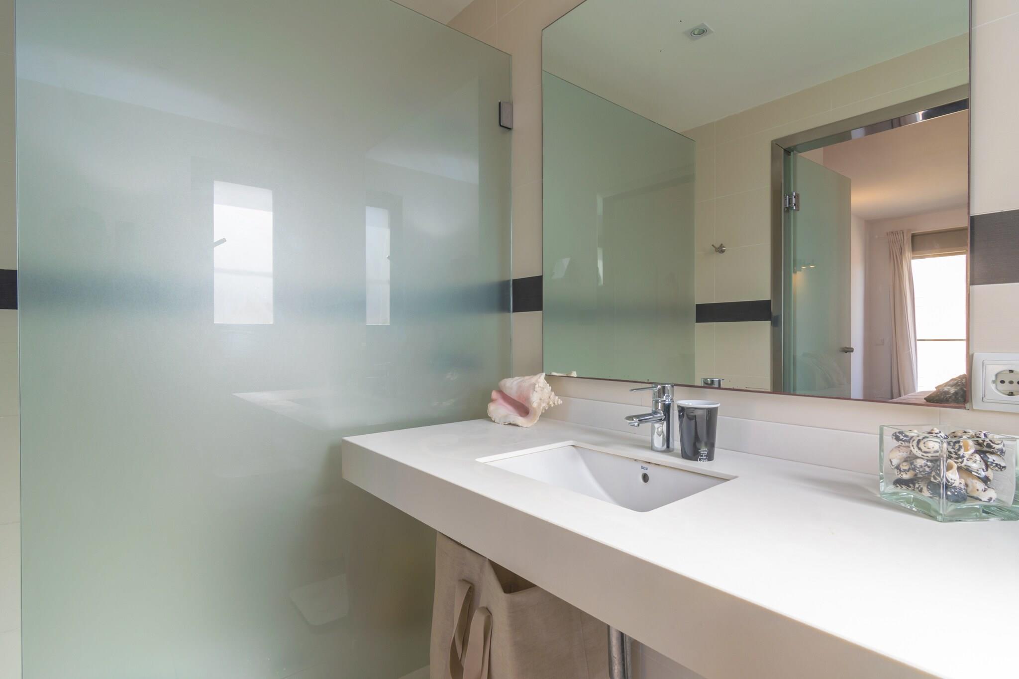 Das schöne Haus mit 3 Wohneinheiten hat eine voll möbliere Terrasse, auf der Sie Ihre Mahlzeiten an der frischen Luft genießen können. Dafür steht ein grosser Esstisch bereit. Für den Kaffee am Nachmittag oder das Glas Wein am Abend werden Sie sicher die Sofalandschaft bevorzugen, perfekt für einen Moment der Entspannung, mit Blick auf das Meer. Der private Eingang zur Wohnung befindet sich im Erdgeschoss und führt über eine Treppe in die erste Etage, wo Sie ein freundlicher Wohn - Essbereich mit offener Küche empfängt. Der Raum ist modern möbliert und klimatisiert. Relaxen Sie einen Augenblick auf dem Sofa bevor Sie gemeinsam auf dem Cerankochfeld in der Küche eins Ihrer Lieblingsgerichte zubereiten. In der Küche stehen dafür alle wichtigen Geräte und Utensilien bereit. Praktisch für ein schnelles Frühstück oder einen Snack am Nachmittag ist der Küchentresen, der diesem Bereich vom Esstisch trennt. Auf der gleichen Ebene gibt es ein Bad mit Dusche, die den Boden und zwei Schlafzimmer mit Kleiderschrank und Klimaanlage, beide mit Doppelbett dient. Einer von ihnen hat auch ein eigenes Bad mit Dusche. In der oberen Etage gibt es ein weiteres Schlafzimmer mit 1 Einzelbett und Zugang zu einer Terrasse. Der Blick von hier oben ist atemberaubend, an klaren Tagen blickt man bis zur Insel Cabrera! Hier befindet sich die Waschmaschine, Bügelbrett und Bügeleisen. Das Wohngebiet Colonia de Sant Jordi liegt an der Küste, in den Restaurants der Umgebung wird ausgezeichneter, frischer Fisch angeboten. Es gibt ein Vielzahl an Unterhaltungsmöglichkeiten und auch Dienstleistungen sind zu finden. Eine Art den Tag zu verbringen bietet sicher der ca. 700m entfernte Strand der Colonia aber auch andere Strände wie zum Beispiel Es Trenc (in 6km) sind mit dem Auto schnell zu erreichen. Bei einem Bootsausflug zur Insel Cabrera wird die ganze Familie Spaß haben oder wie wäre es andere authentische Dörfer der Küste mit dem Auto zu erkunden? Die Wohngemeinschaft gestattet es nicht, Handtücher o.ä. über die Terrassenballustrade zu hängen. Eventuelle Nebenkosten müssen beim Anbieter nachgefragt werden. Haustiere sind verboten. Partys oder ähnliche Veranstaltungen sind nicht gestattet. Entfernungen Strand: 0.7 km - Colònia de Sant Jordi Flughafen: 46.5 km - Son Sant Joan Golfplatz: 43.6 km - Golf Maioris Ortsmitte: 0.01 km - Colònia de Sant Jordi Bahnhof: 52.7 km - Palma Bushaltestelle: 0.2 km - Colònia de Sant Jordi Fähre: 54 km - Palma Krankenhaus: 42.5 km - Hospital de Manacor Touristen Lizenz: ETVPL/14301Einheitsregister: ESFCTU00000700800117120300000000000000000ETVPL/143011