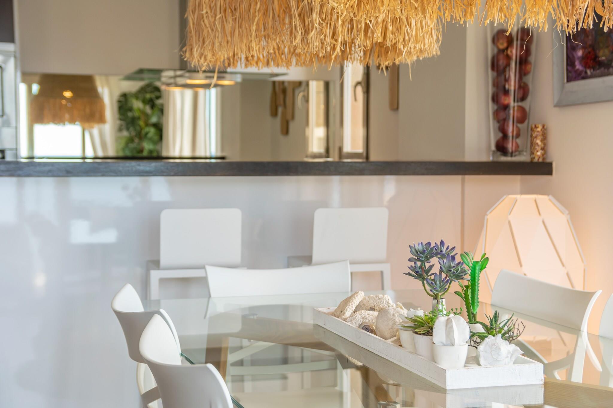 Küche(Kochherd, Kaffeemaschine, Backofen), Schlafzimmer(Doppelbett), Schlafzimmer(Doppelbett), Schlafzimmer(Doppelunterschiebebett), Badezimmer, Badezimmer, Mikrowelle, Spülmaschine, Kühl-/Gefrierkombination, Dusche, Dusche, Waschbecken, Waschbecken, Toilette, Toilette, Klimaanlage, Klimaanlage, Kinderbett, Hochstuhl
