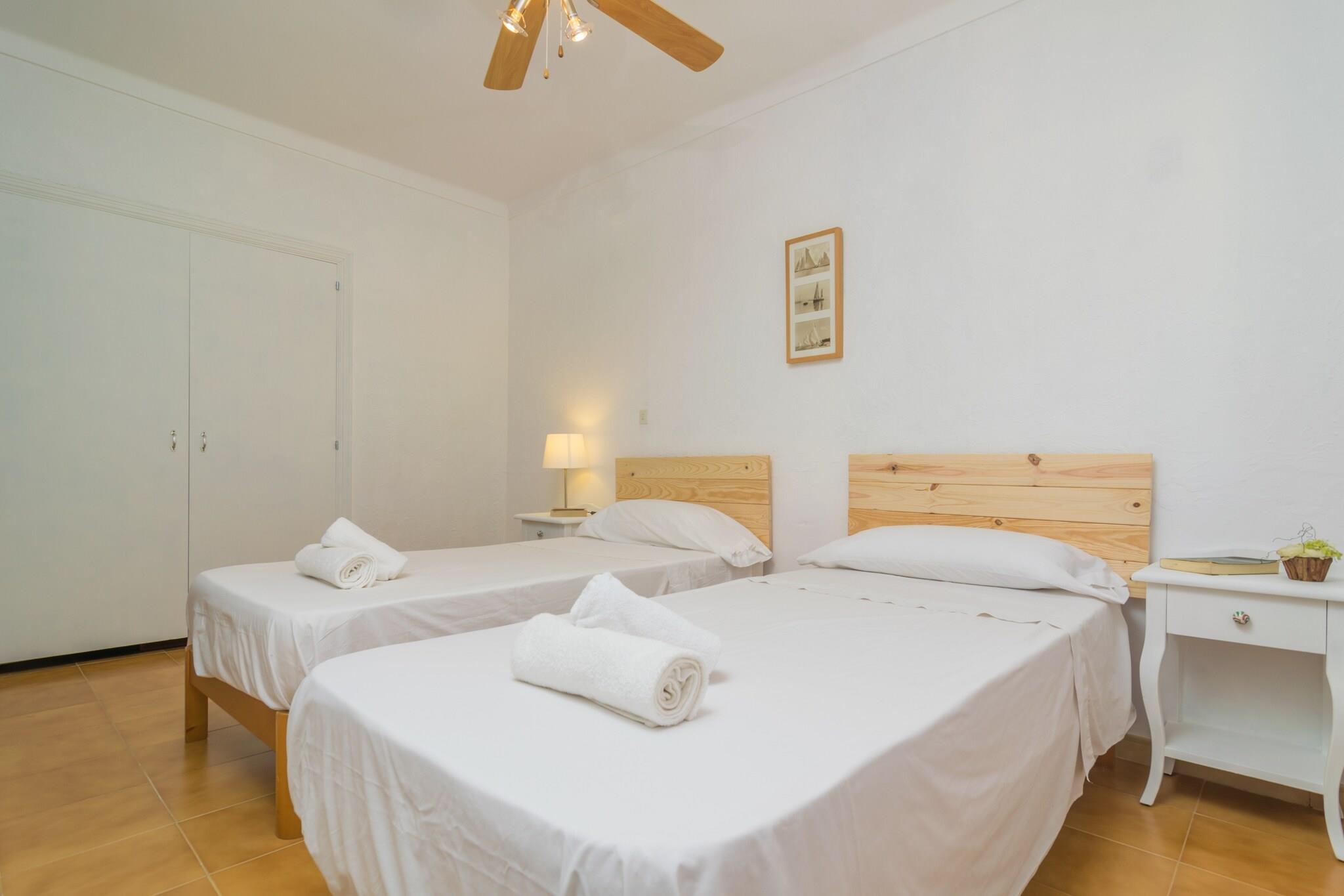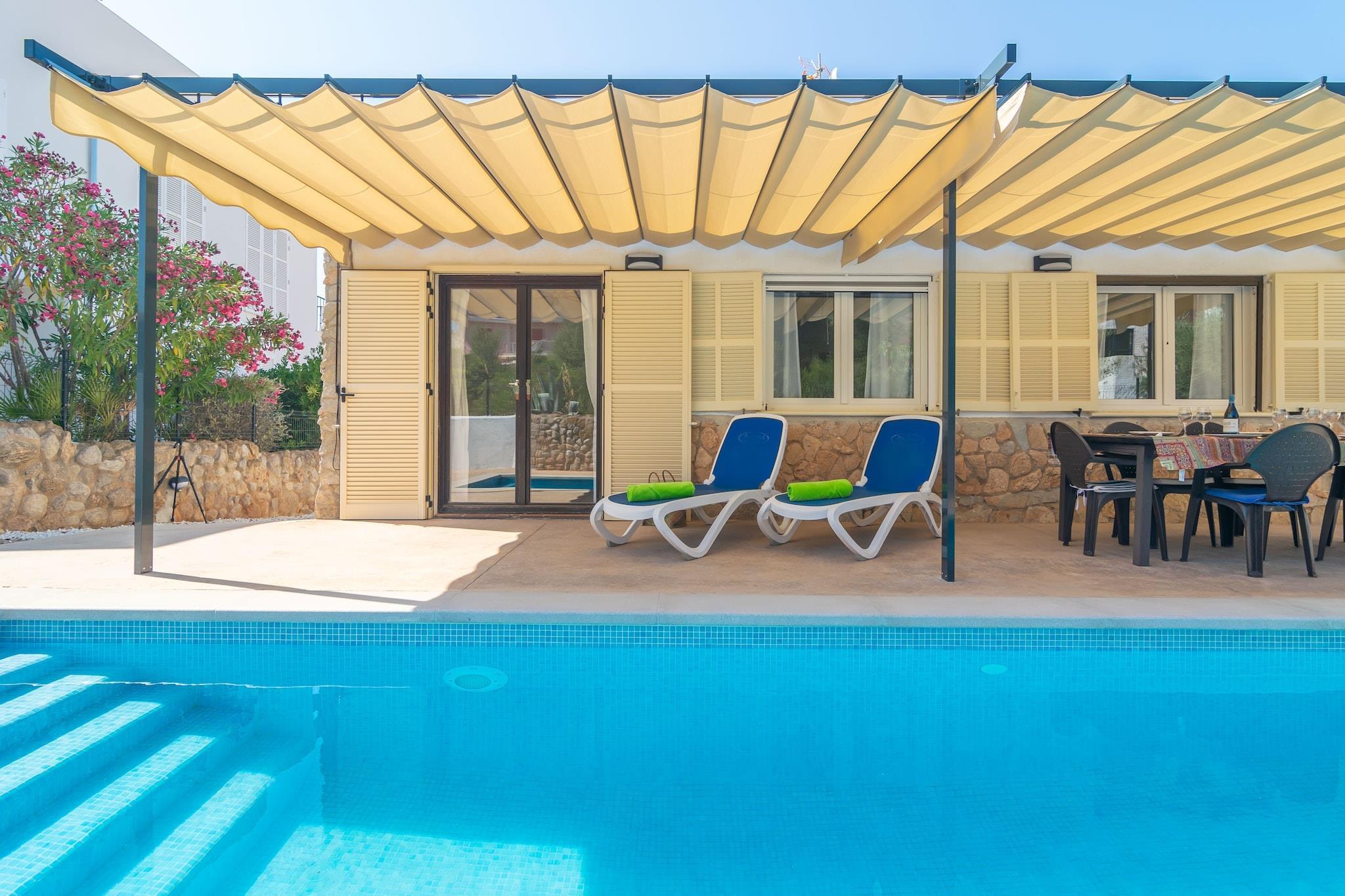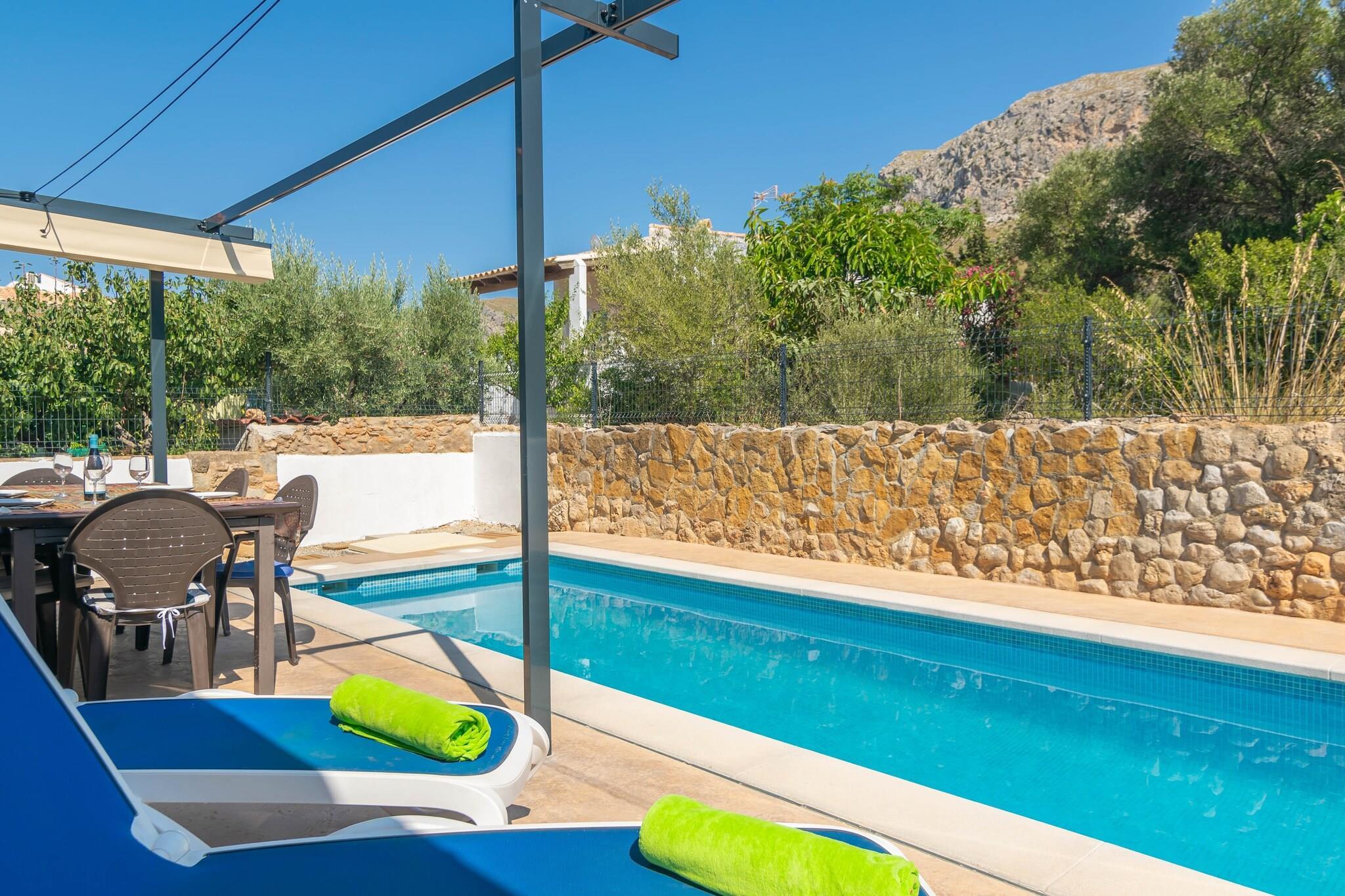 Umgeben von Bäumen und Bergen ist das Äußere dieses schönen Hauses ideal, um Zeit im Freien zu verbringen. Mehrere Terrassen und eine große Pergola laden zum Frühstücken, Sonnenbaden auf den 2 Liegen, zum Lesen bei einem Kaffee oder einem Glas Wein und sogar zum Blick aufs Meer ein. Aber das Beste ist, sich im fantastischen privaten Salzpool abzukühlen, der 9 x 2,5 Meter misst und eine Tiefe von 1,4 bis 1,5 Metern hat. Im einstöckigen Gebäude empfängt Sie ein charmanter Wohn - Essbereich mit Sat TV, Kamin und Klimaanlage. In der geräumigen Küche kochen Sie auf einem Cerankochfeld und haben dafür alle wichtigen Geräte und Utensilien die Sie brauchen. Es gibt 2 Duschbäder und 2 Schlafzimmer mit Klimaanlage und Deckenventilator. Eins der Zimmer hat ein Doppelbett und direkten Ausgang auf die Terrasse, während das andere mit 2 Einzelbetten versehen ist. Eine Waschmaschine, Bügelbrett, Bügeleisen, sowie auf Anfrage ein Babybett und Hochstuhl komplettieren die Ausstattung. Wenn Sie die Küste mögen haben Sie hier Ihr ideales Urlaubsdomizil gefunden. Das Haus liegt nur ca. 600m vom Naturstrand in Colonia de Sant Pere entfernt. Im authentischen, ehemaligen Fischerdorf finden Sie alle Dienstleistungen, die Sie für einen unabhängigen Urlaub benötigen. Bars, Restaurants und einen Lebensmittelladen können Sie zu Fuss erreichen. Der Pool ist vom 15. Dezember bis 15. Januar nicht verfügbar. Eventuelle Nebenkosten müssen beim Anbieter nachgefragt werden. Haustiere sind verboten. Partys oder ähnliche Veranstaltungen sind nicht gestattet. Entfernungen Strand: 0.60 km - Colònia de Sant Pere Flughafen: 67.6 km - Son Sant Joan Golfplatz: 21.6 km - Golf Canyamel Ortsmitte: 0.01 km - Colònia de Sant Pere Bahnhof: 22.5 km - Manacor Bushaltestelle: 0.18 km - Colònia de Sant Pere Fähre: 30.5 km - Port d'Alcúdia Krankenhaus: 21.8 km - Hospital de Manacor Touristen Lizenz: ETV/14026Einheitsregister: ESFCTU0000070230002589150000000000000000000ETV/140267