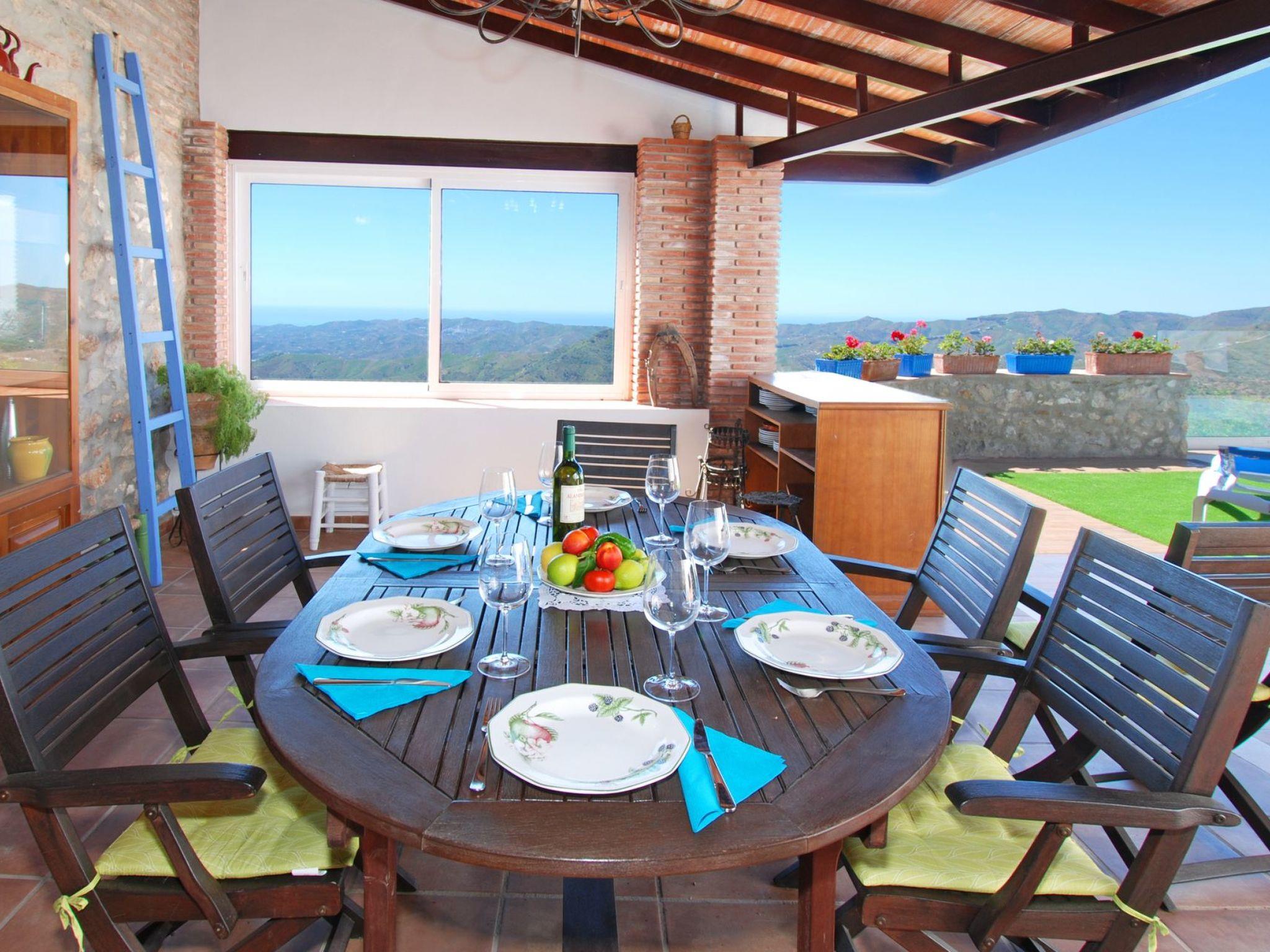 CASA DEL CASTILLO ist ein unglaubliches Ferienhaus mit wundervollem und einzigartigem Ausblick. Die Eigentümer restaurierten das alte Familienhaus über ein Jahr lang mit schönen und ursprünglichen Details, kombiniert mit moderner Dekoration. Sie schufen einen stilvollen Außenbereich mit einem atemberaubenden Swimmingpool und einer teilweise überdachten, großzügigen Terrasse mit Sommerküche, Lounge-Ecke und Essbereich, beide mit Blick auf die beeindruckende Umgebung bis hin zum Mittelmeer durch Glaswände. Wenn man das Haus betritt, kommt man in ein geräumiges Wohnzimmer/Salon mit gemütlichen Ecken und einem offenen Kamin. Das Erdgeschoss strahlt Raum und Gemütlichkeit aus. Es wurde beschlossen, die meisten Innenwände wegzulassen und dennoch hat jedes Zimmer seinen eigenen privaten Raum. Es gibt auch eine gut ausgestattete Küche mit Spülmaschine, Waschmaschine, Induktionsherd, Backofen, Mikrowelle und Kühl-/Gefrierschrank. Die großen Fenster führen auf den beeindruckenden Poolbereich. Für den Komfort unserer Gäste gibt es im Erdgeschoss auch einen separaten Toilettenraum. Im ersten Stock gibt es einen Chill-out-Salon, drei Schlafzimmer (das Hauptschlafzimmer mit eigenem Bad und alle drei mit Zugang zu einem Balkon) und ein weiteres separates Bad, Klimaanlage in allen drei Schlafzimmern und kostenloses High-Speed-Internet im ganzen Haus.