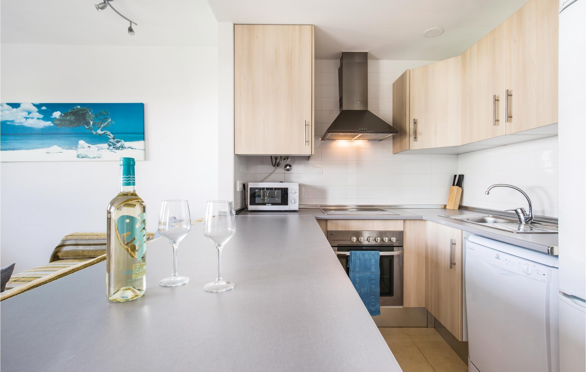 Die Küchenzeile verfügt über heißes Wasser