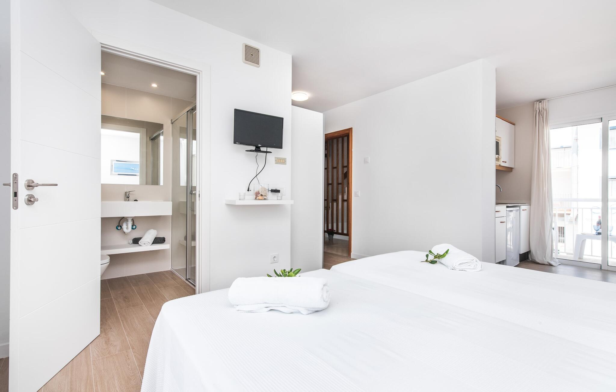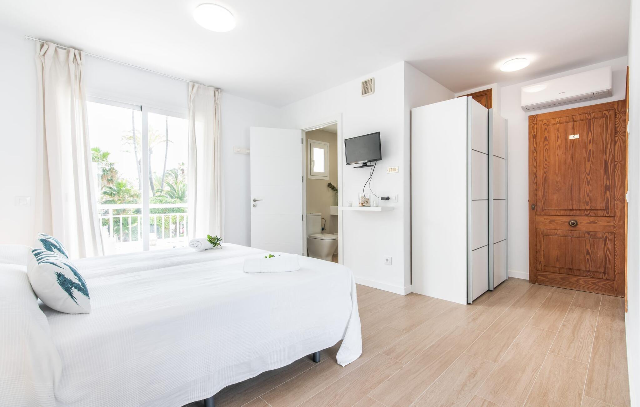 Zwei Freunde oder ein Paar, die nah am Strand sein und alle Annehmlichkeiten fußläufig erreichen möchten, finden in dieser schönen Ferienwohnung auf Mallorca einen komfortablen Zufluchtsort. Vom kleinen, nach Osten ausgerichteten Balkon, auf dem Sie zu zweit bei Sonnenaufgang herrlich frühstücken können, haben Sie einen Blick auf den nur wenige Schritte entfernten Strand, das türkisfarbene Meer und die Victoria-Halbinsel im Hintergrund. So liegt Ihnen die Meerseite fast direkt zu Füßen.