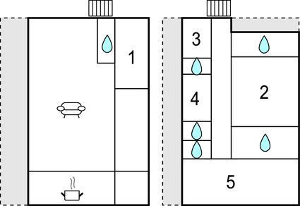 Badezimmer 6m2 (nr. 1) - WC. Warmes und kaltes Wasser. Dusche